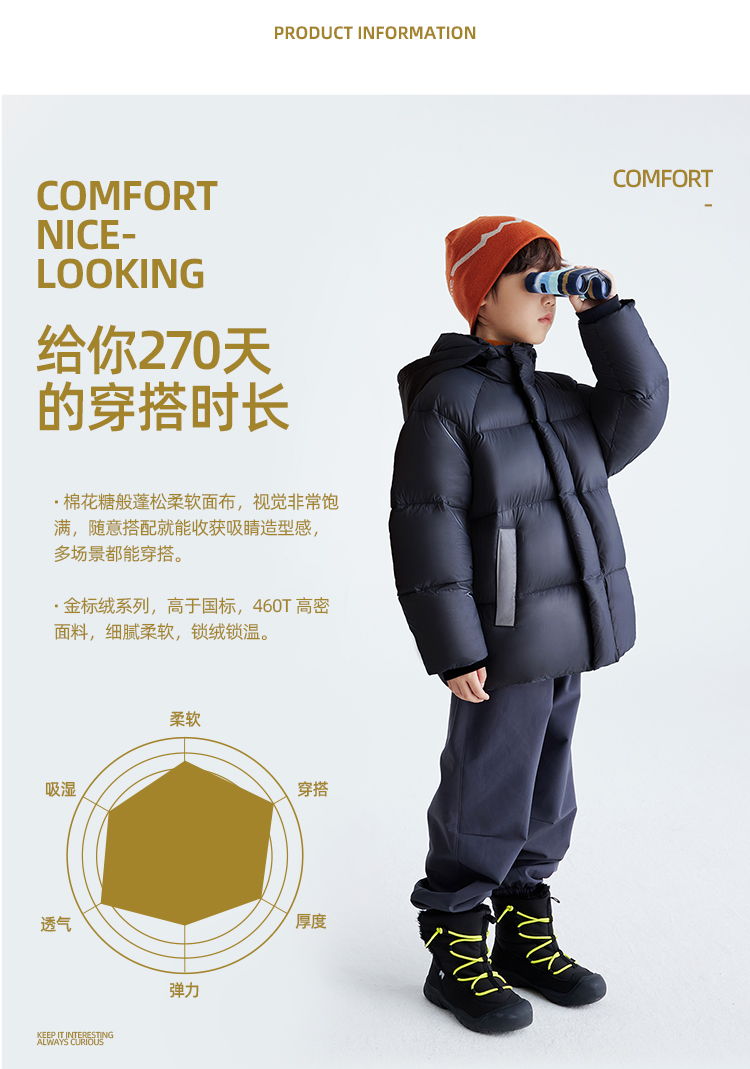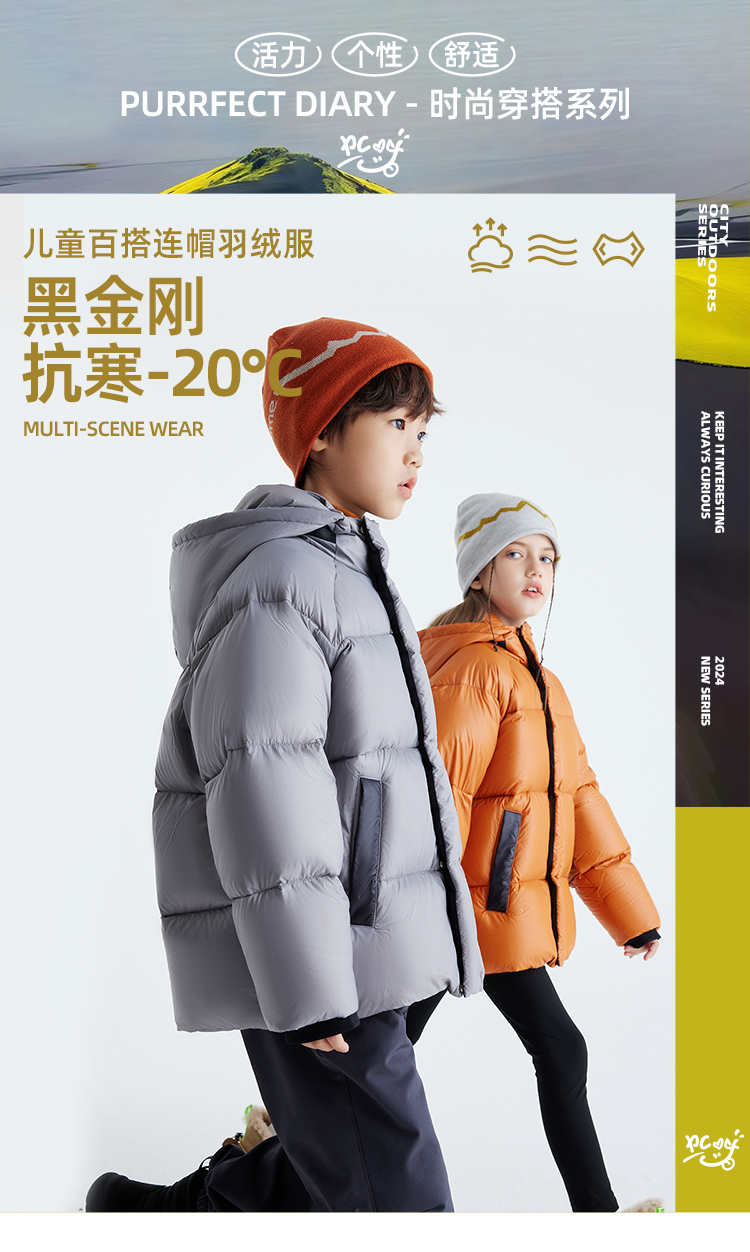 【黑金刚 金标抗寒系列】儿童百搭中长款羽绒服 PDWT2428