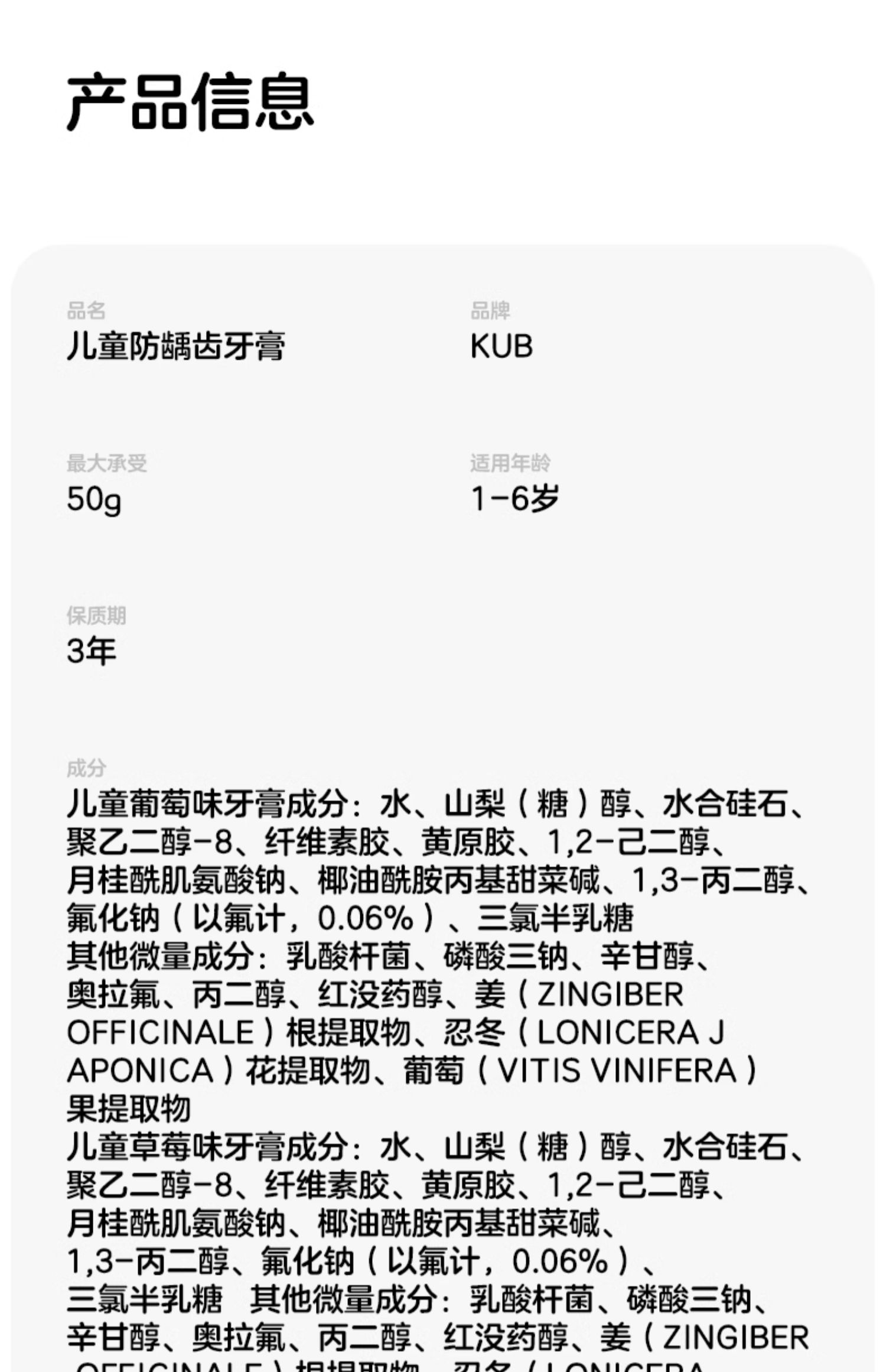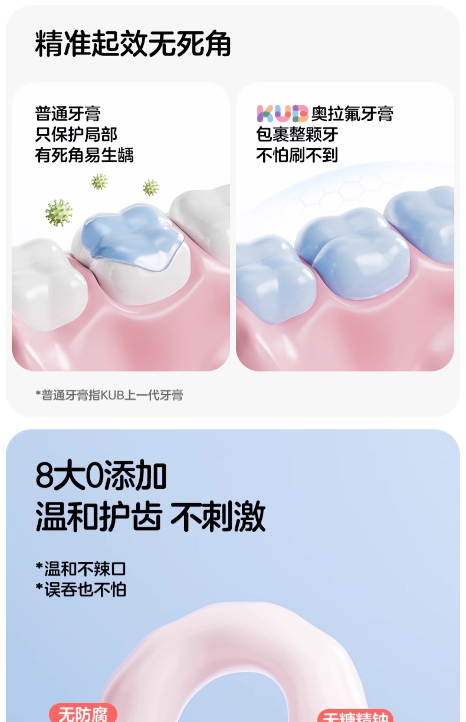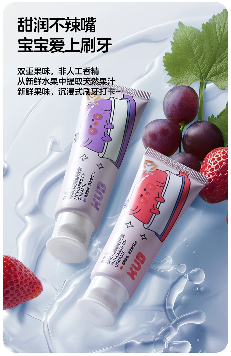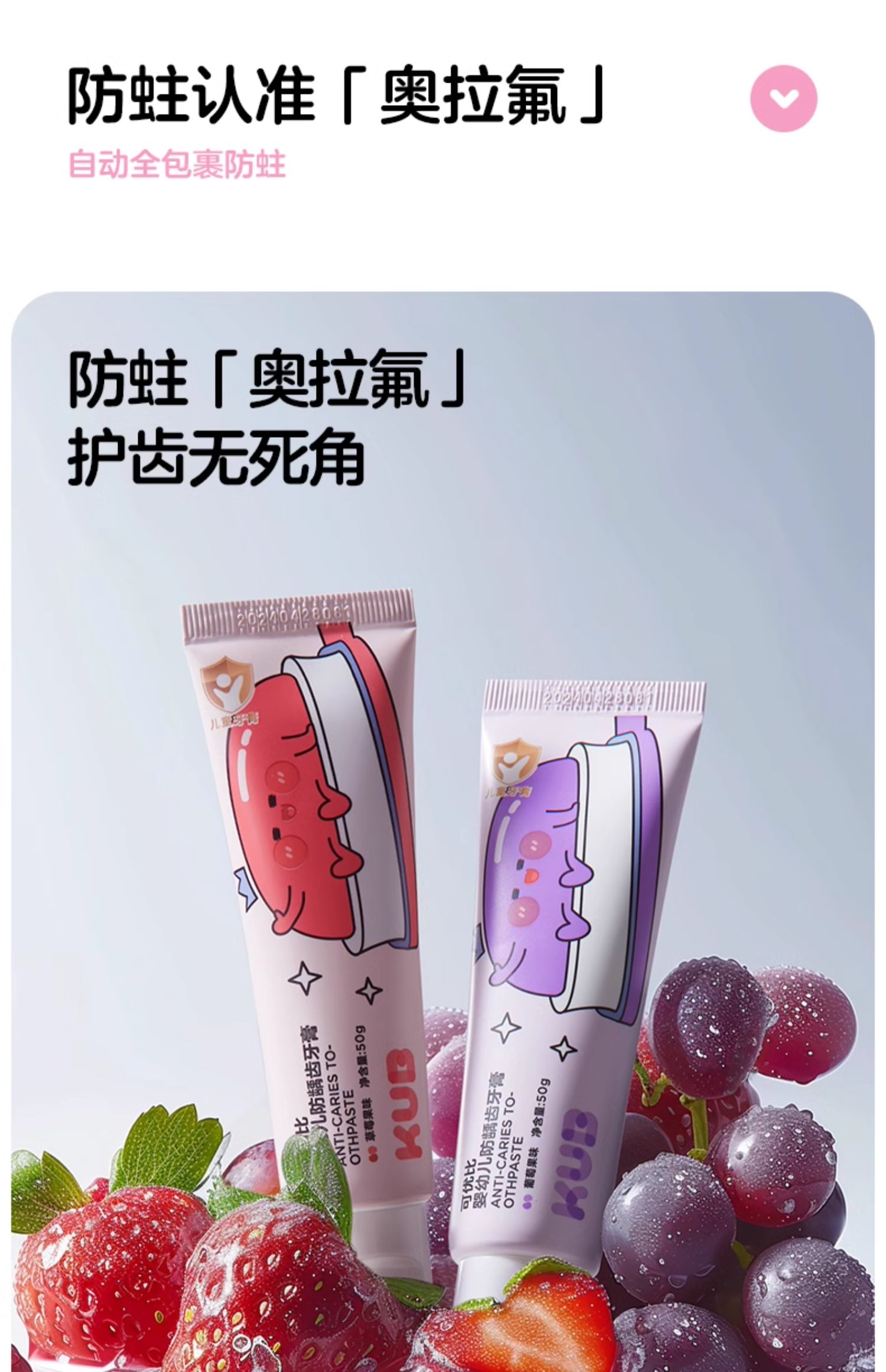 KUB可优比儿童牙膏婴幼儿宝宝1-6一12岁以上安全微氟防蛀牙防龋齿