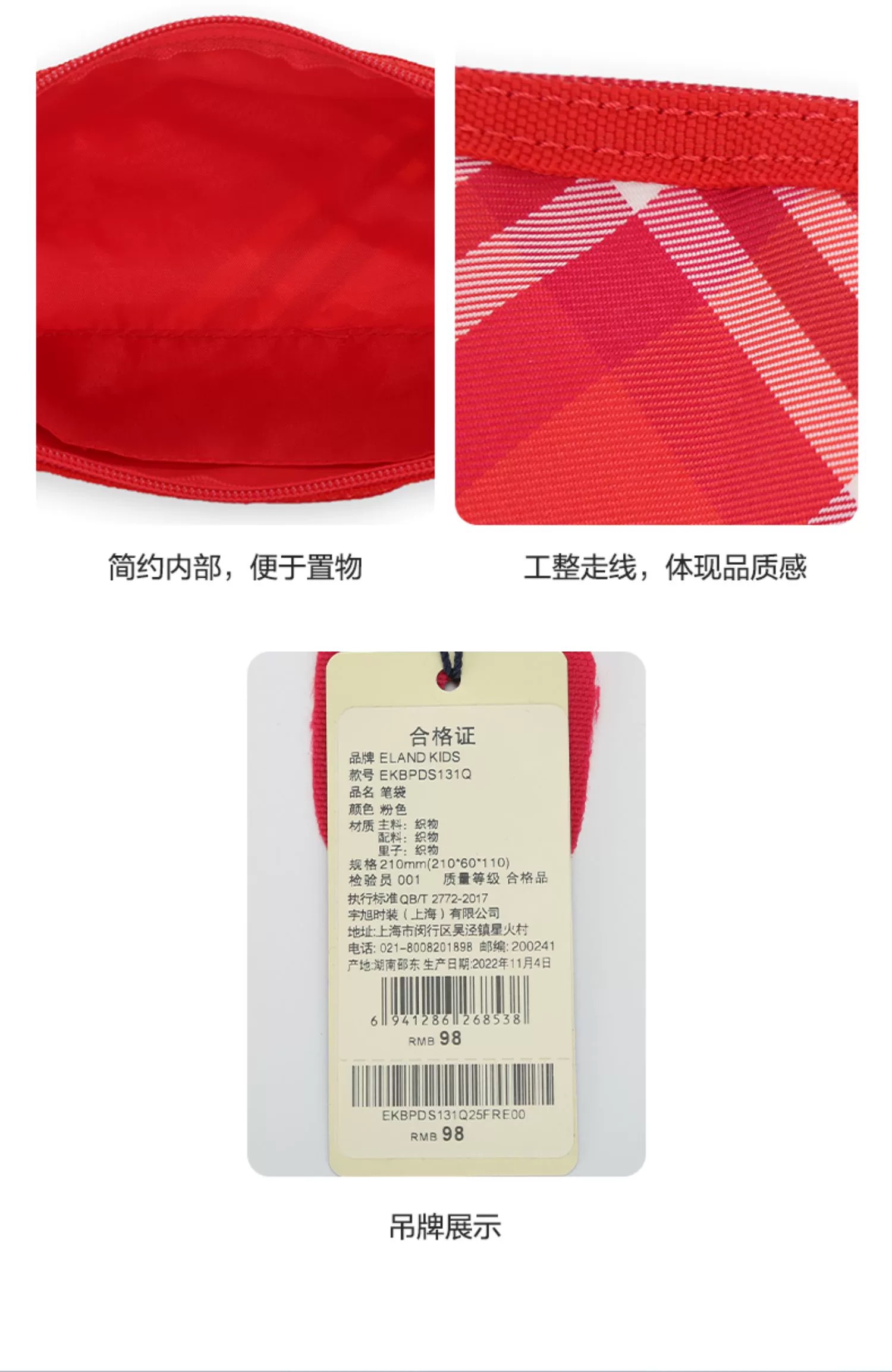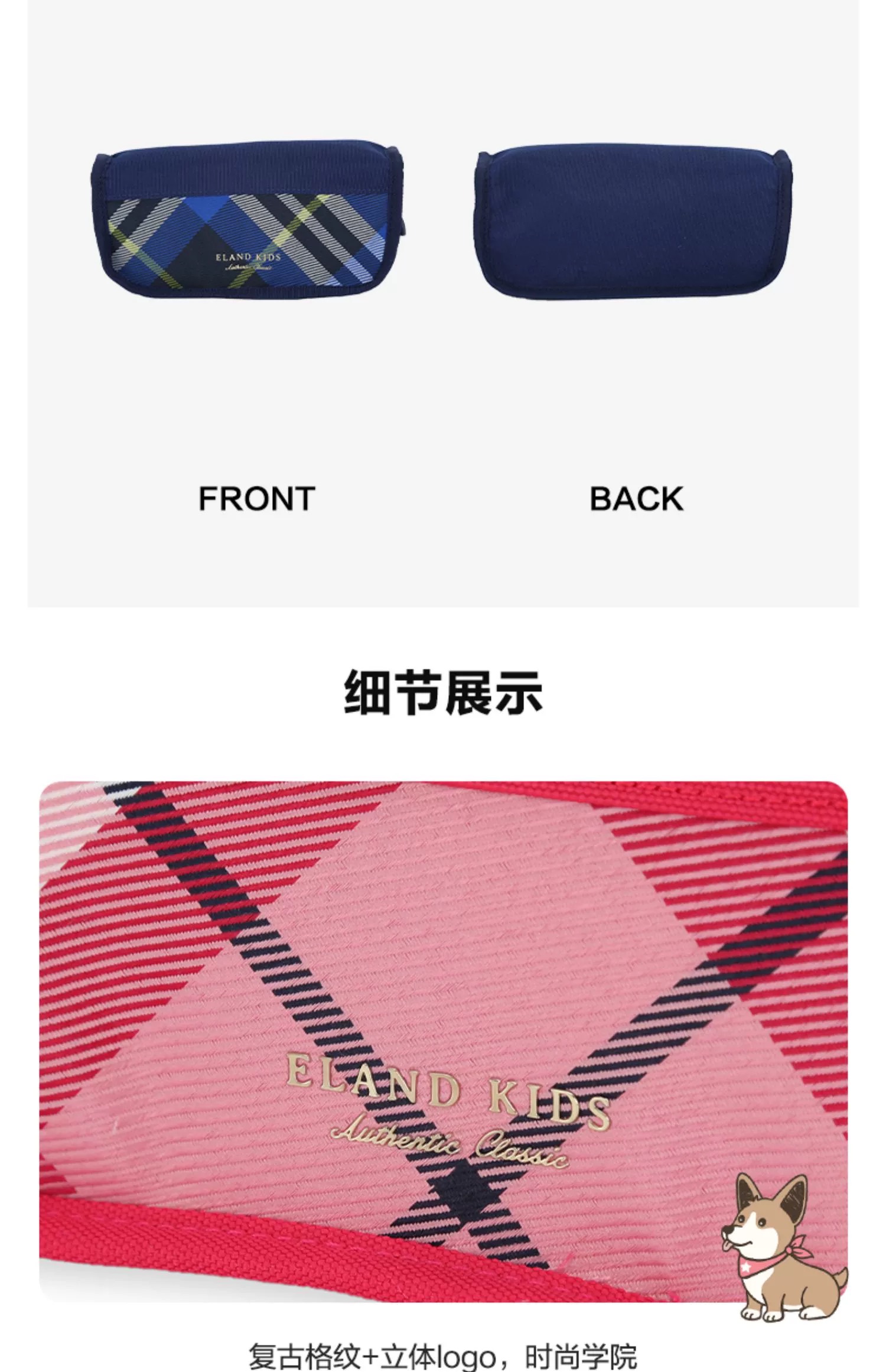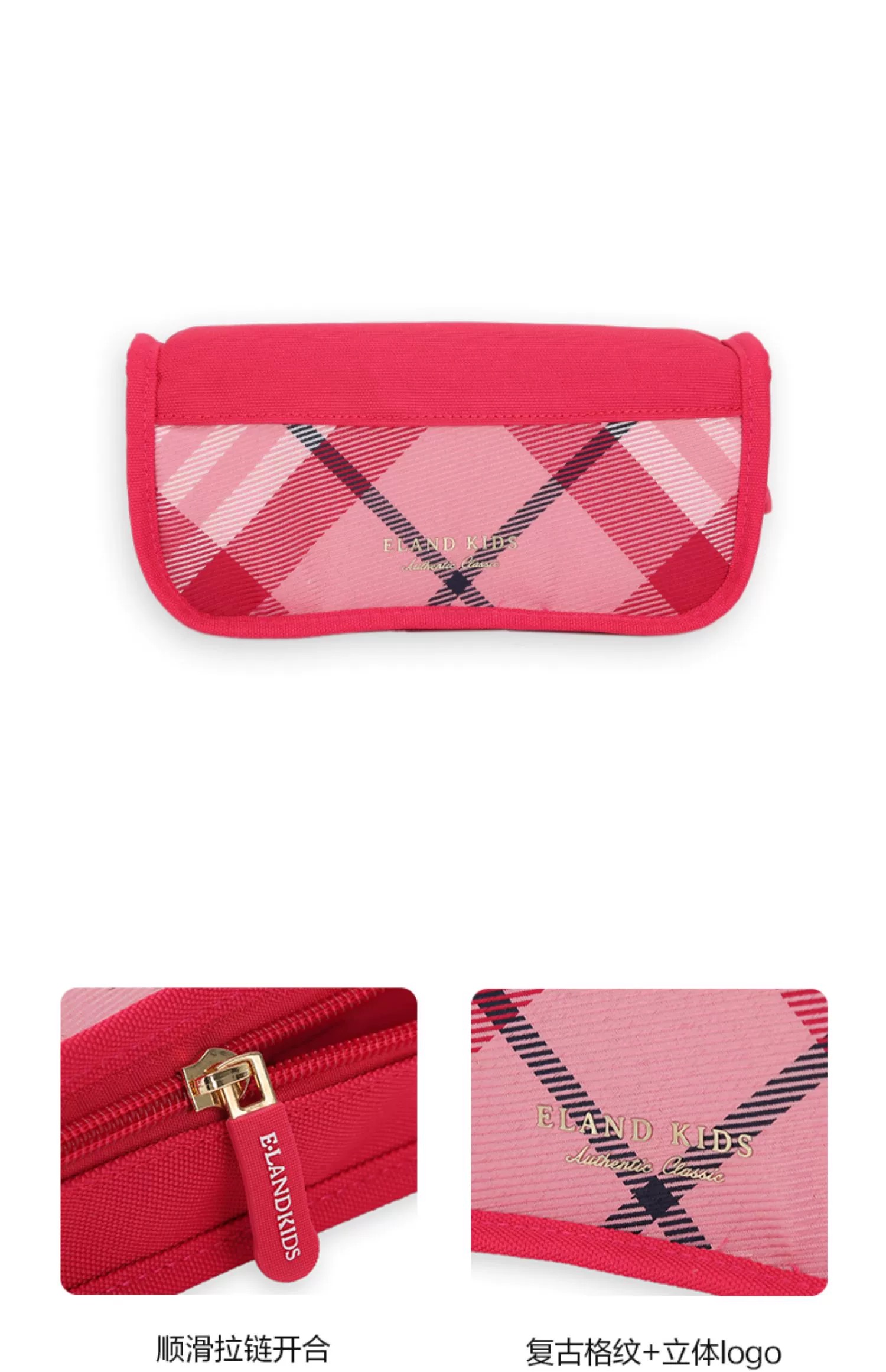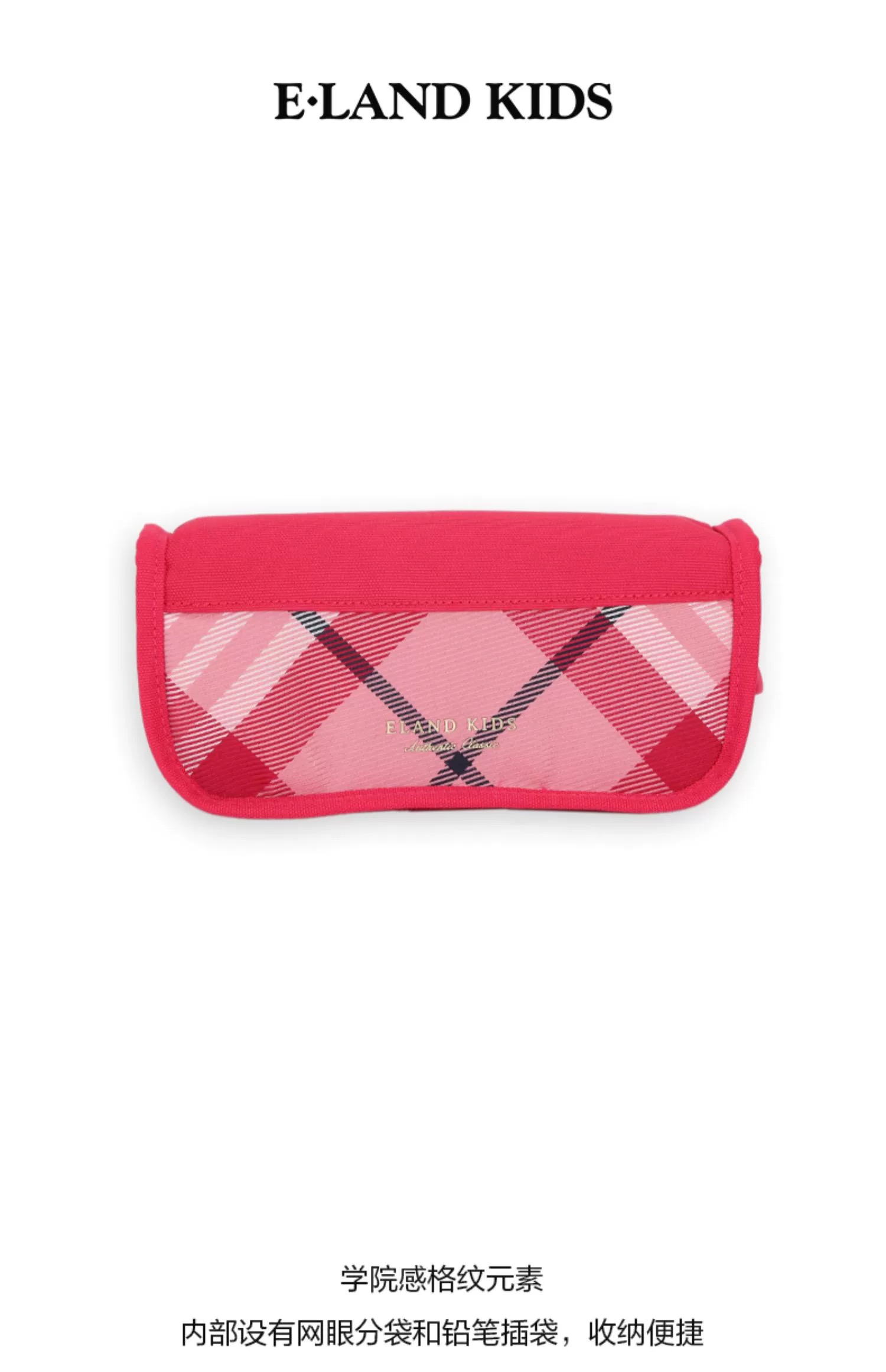 开学装备【E.LAND KIDS】B8F 衣恋童装2023春夏新品男女童复古格纹铅笔文具袋笔袋EKBPDS131Q