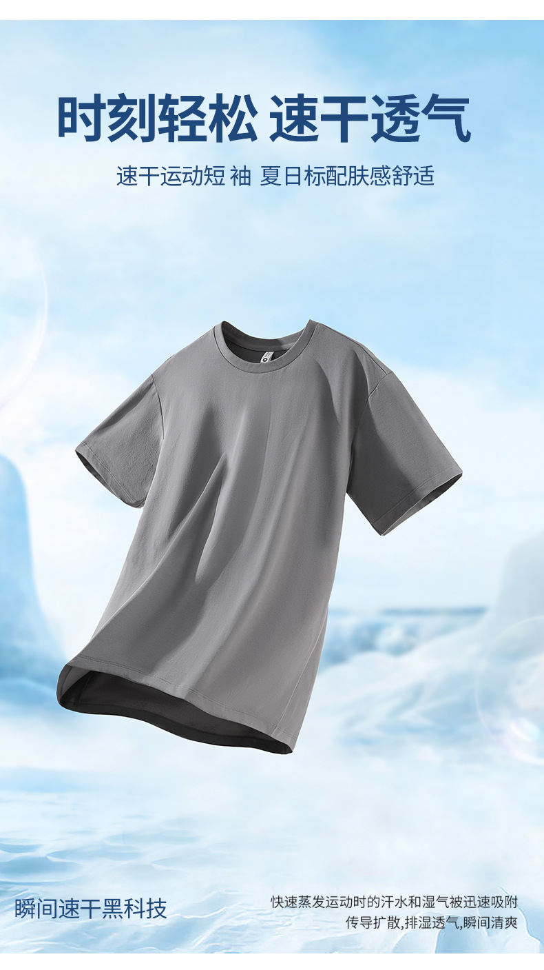 【透气速干!柔软亲肤】夏季新迪桑棉速干T恤休闲纯色凉感透气短袖宽松圆领男女同款半袖。xb