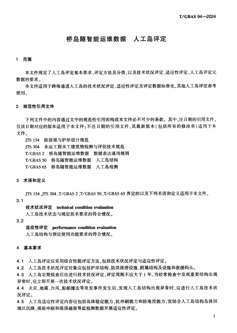 书名:桥岛隧智能运维数据 人工岛评定T/GBAS 94—2024