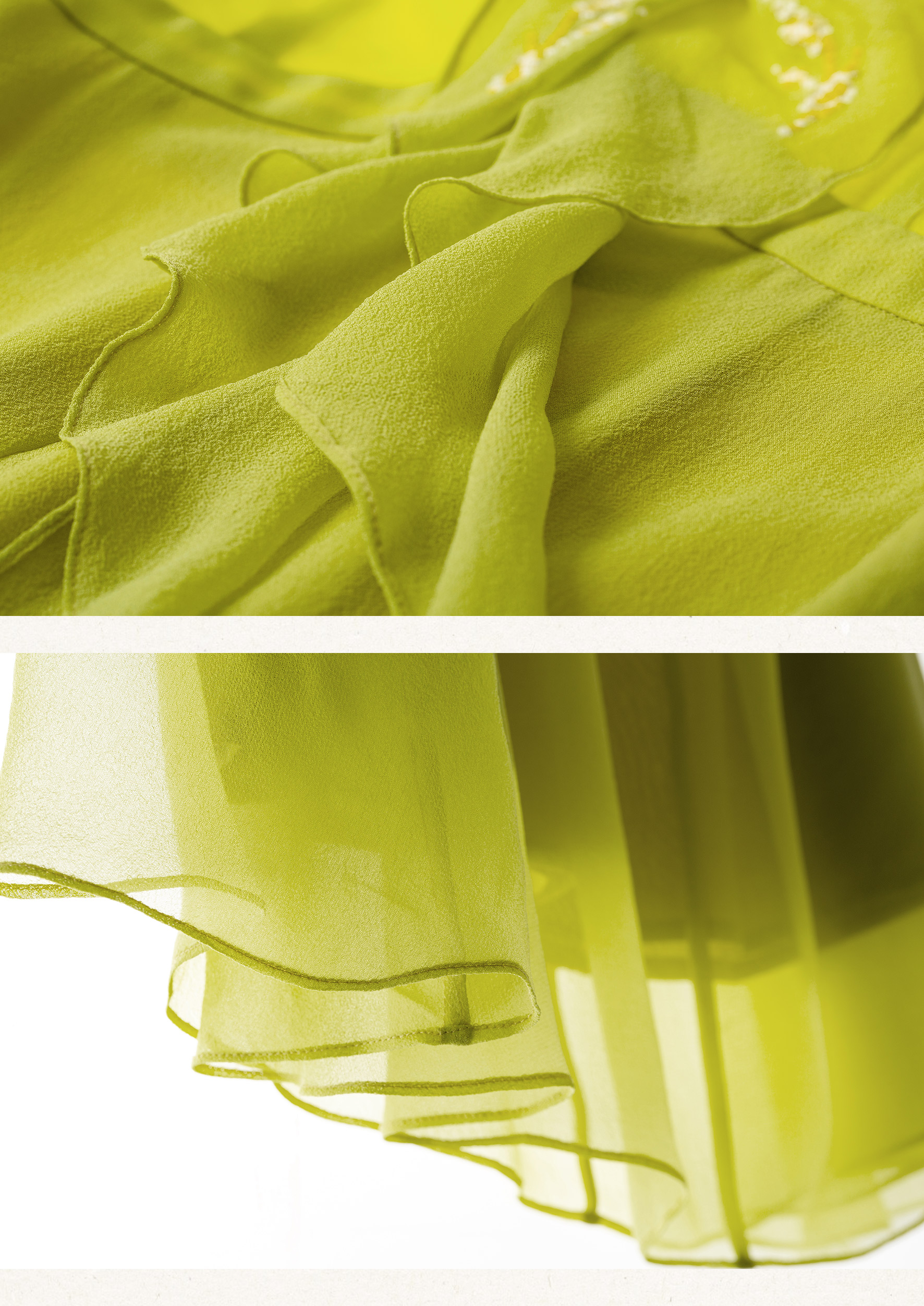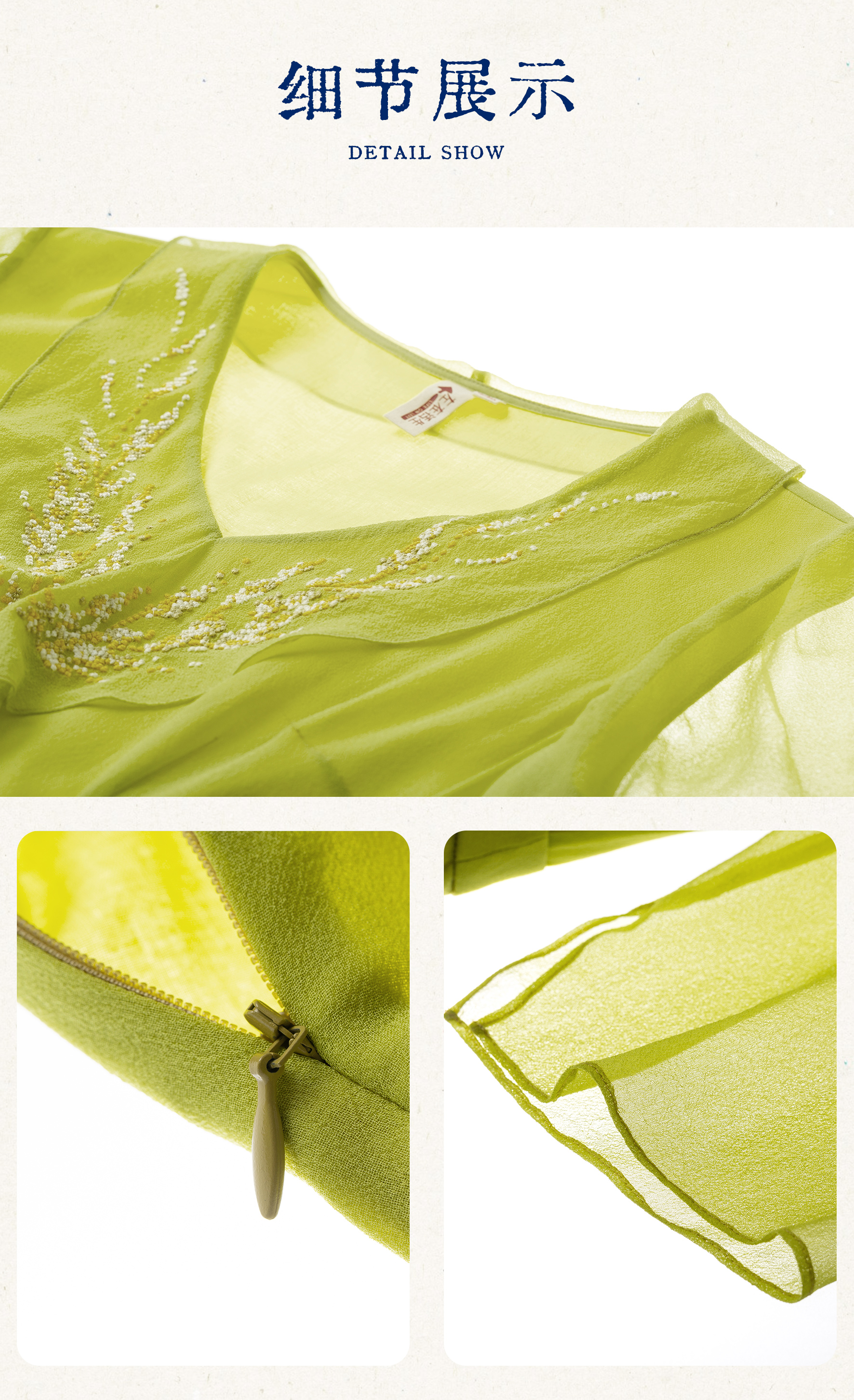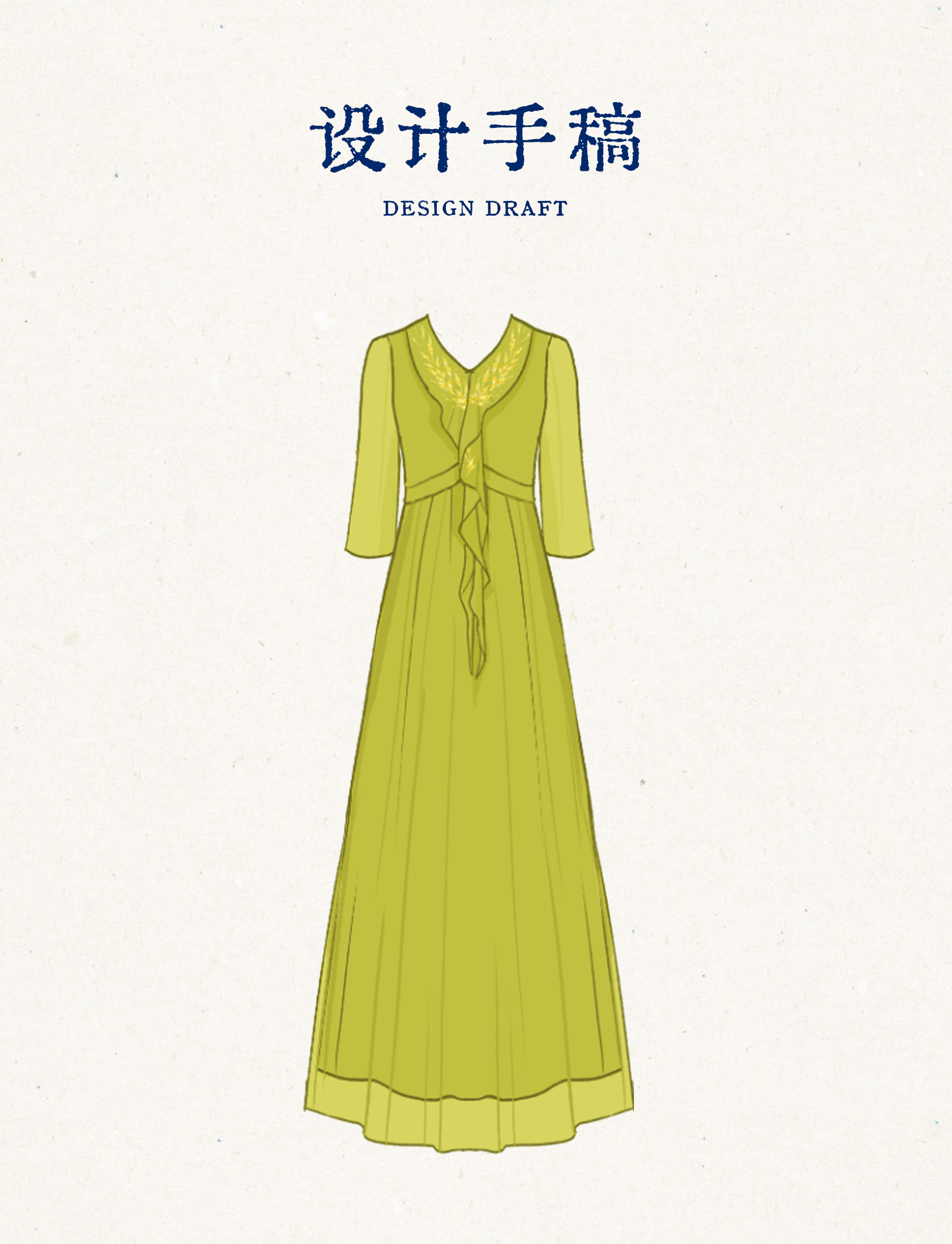 【林栖设计小店】【林栖推荐】(现货)麦穗绣花绿色真丝连衣裙女2025早秋100%桑蚕丝连衣裙N1953320