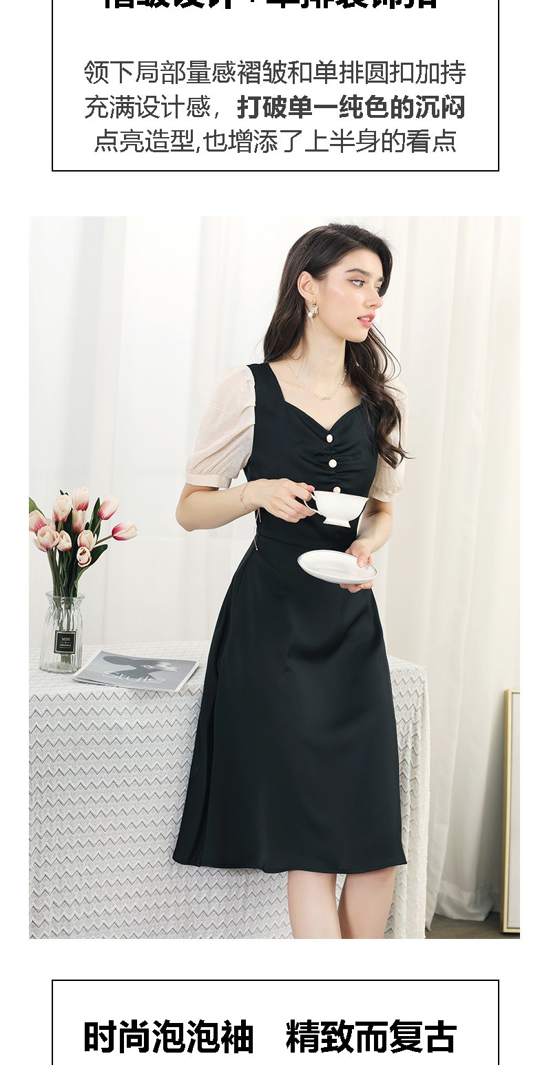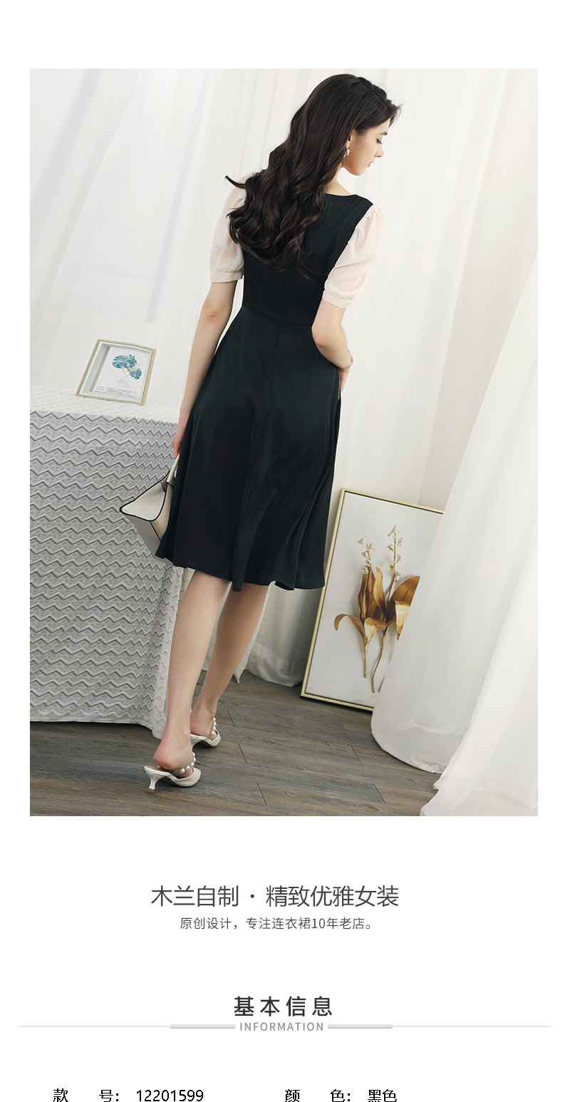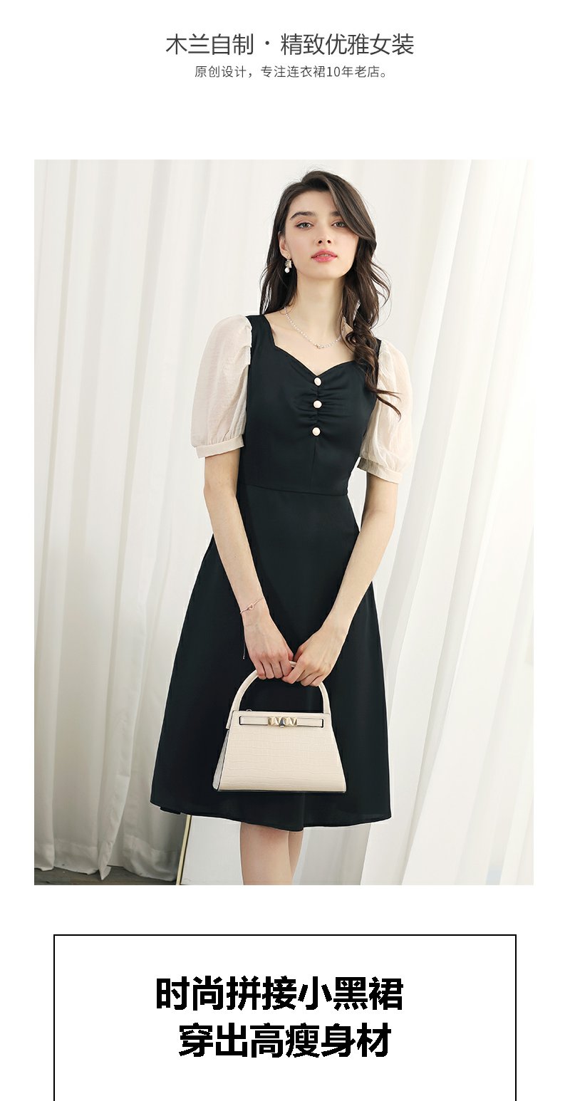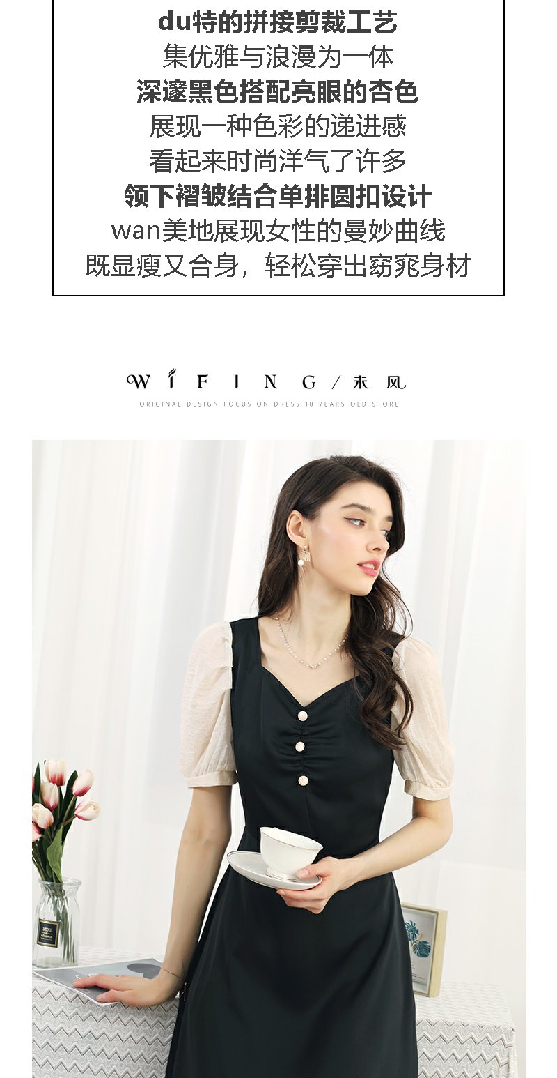 未风黑色拼接连衣裙女夏2024夏季新款女装气质假两件修身显瘦裙子