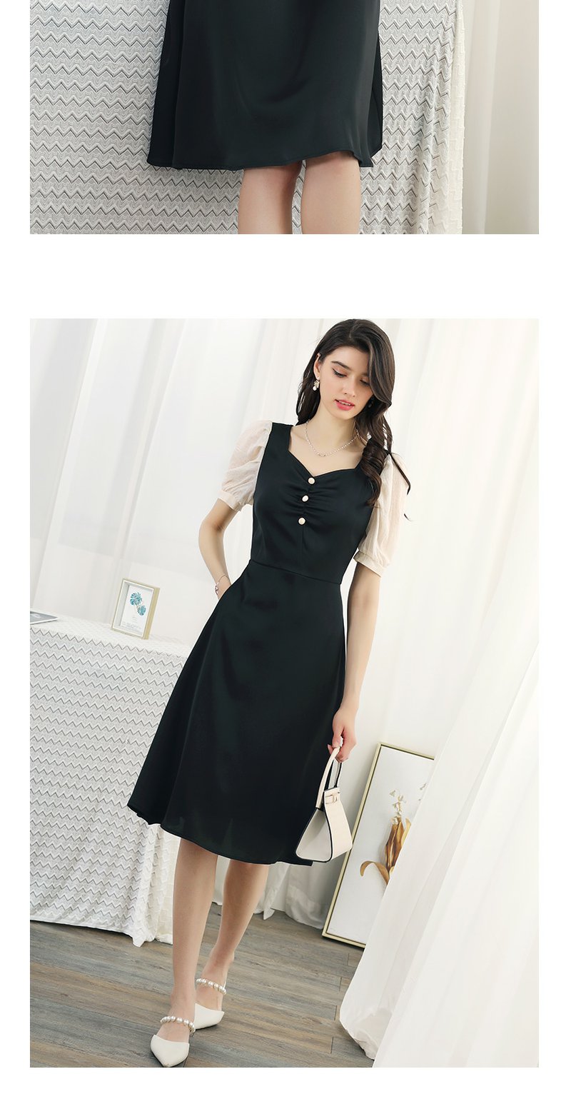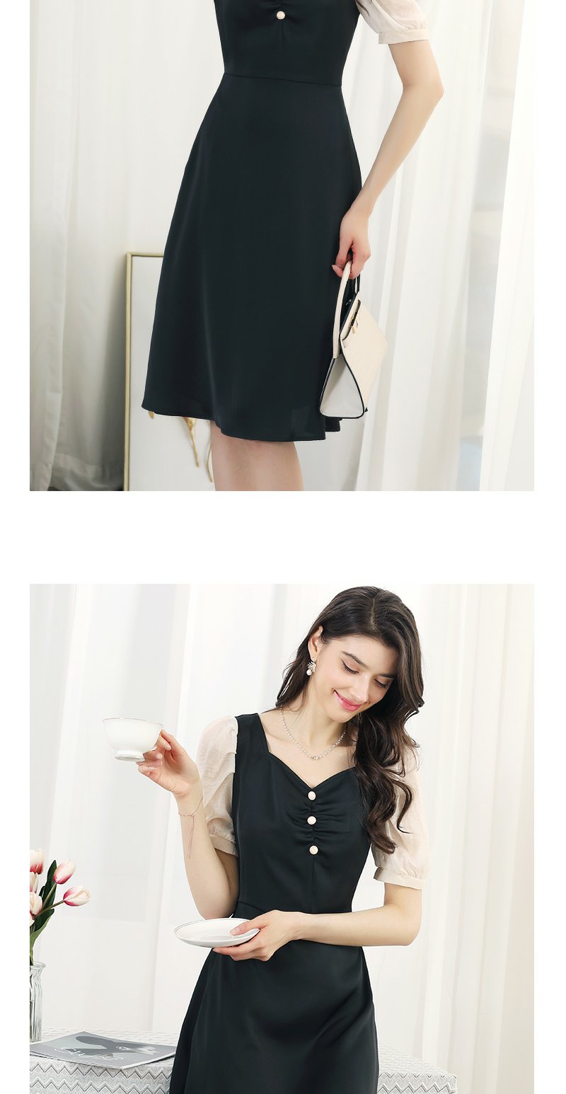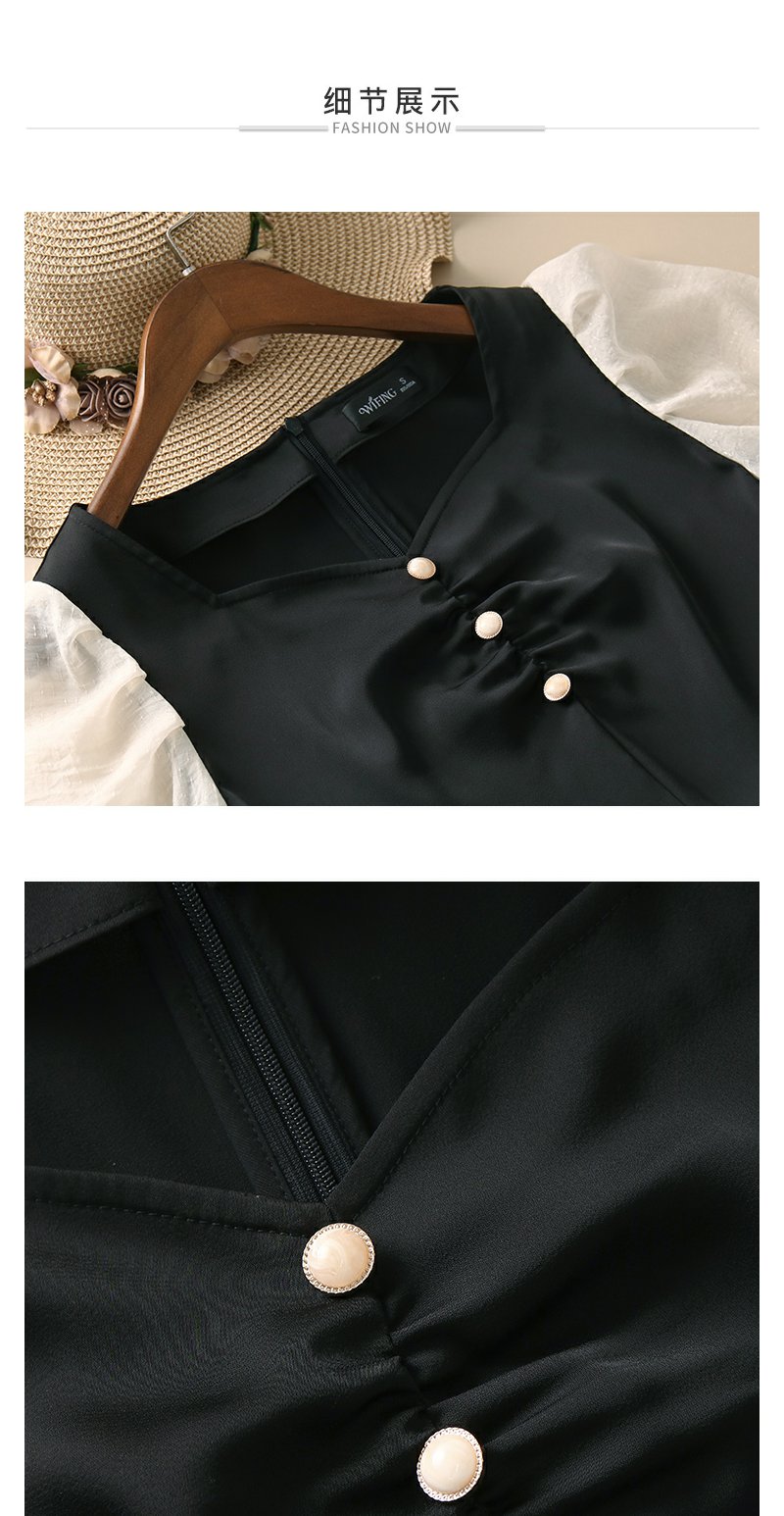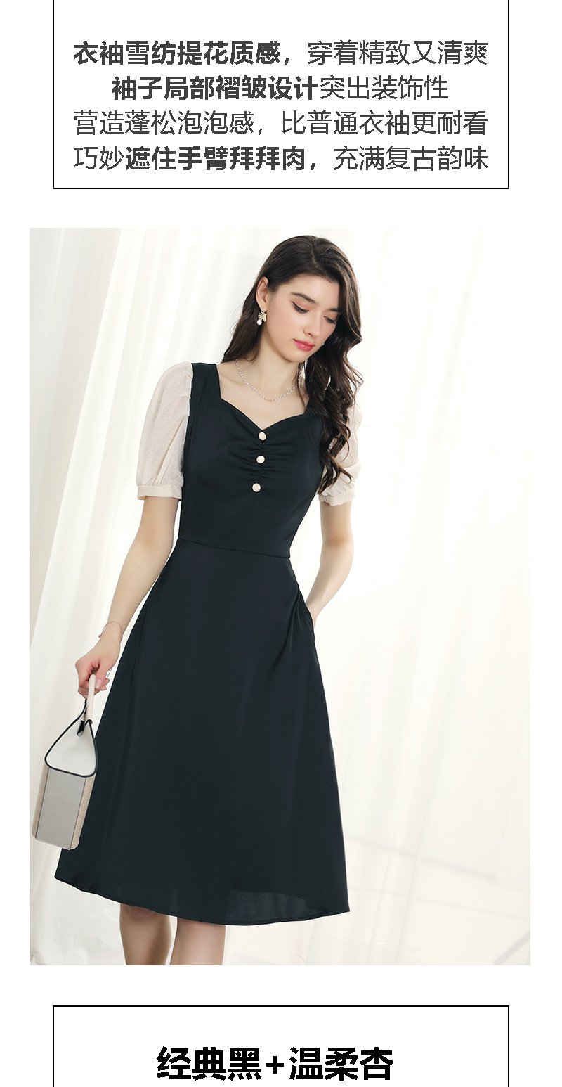 未风黑色拼接连衣裙女夏2024夏季新款女装气质假两件修身显瘦裙子