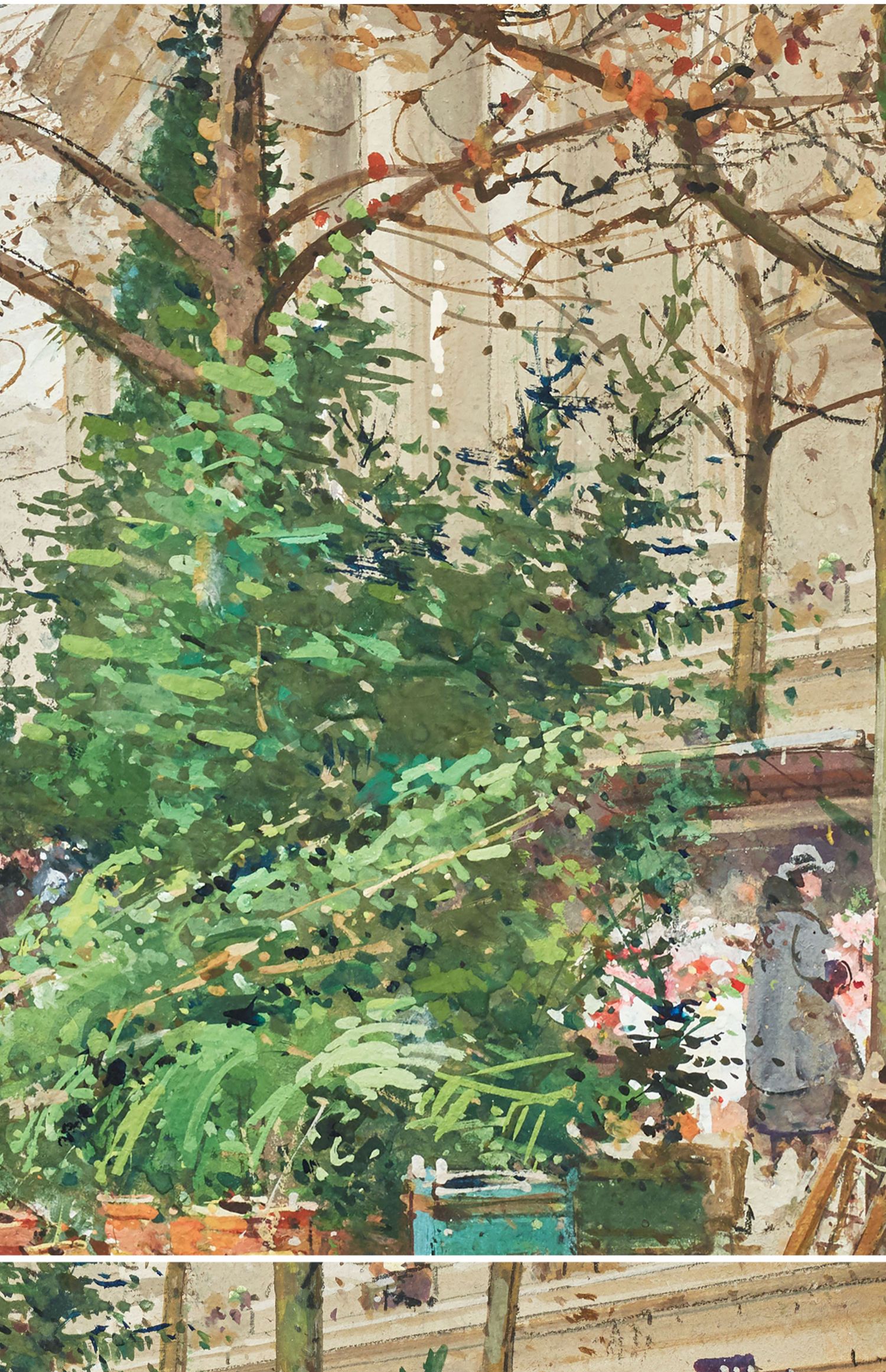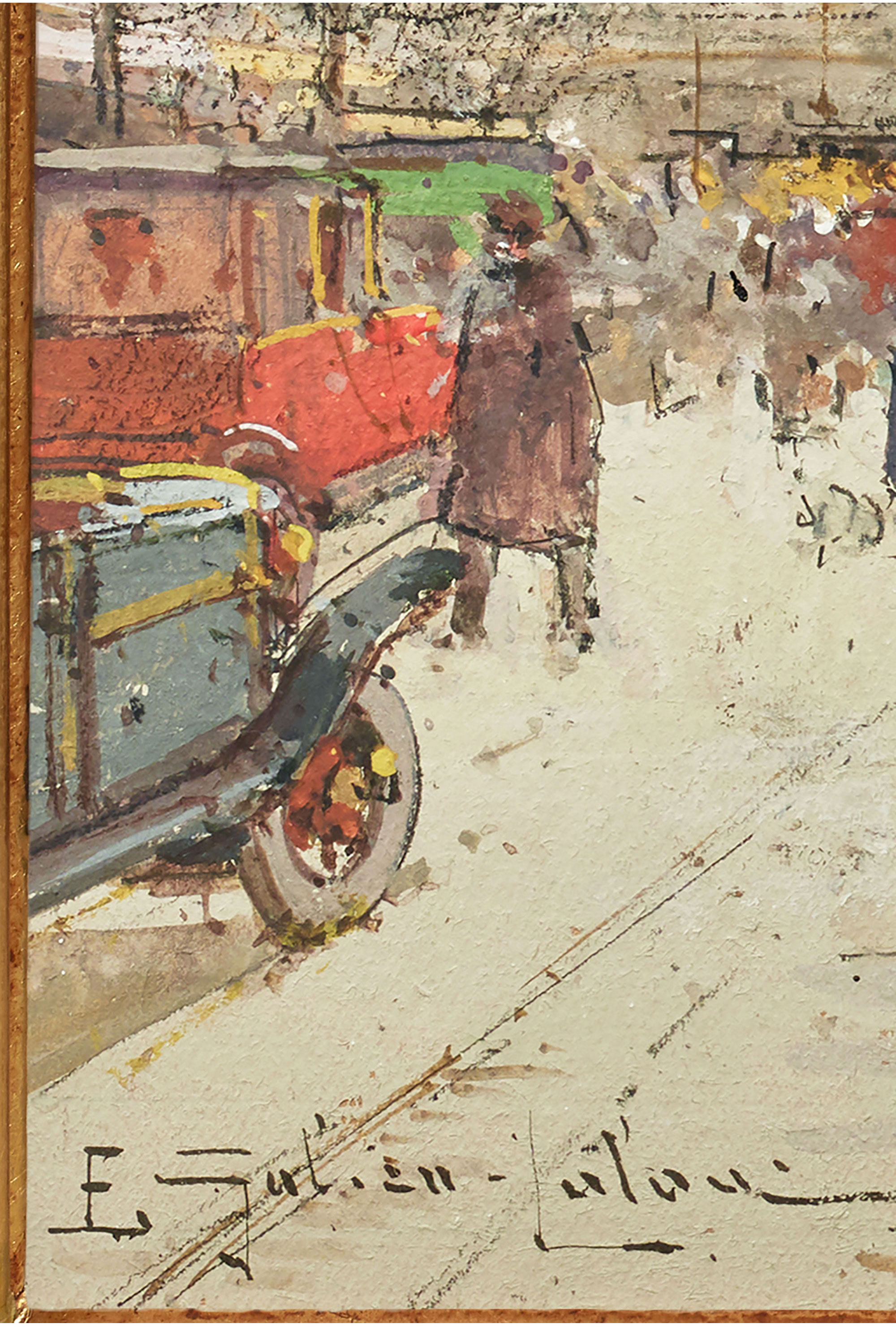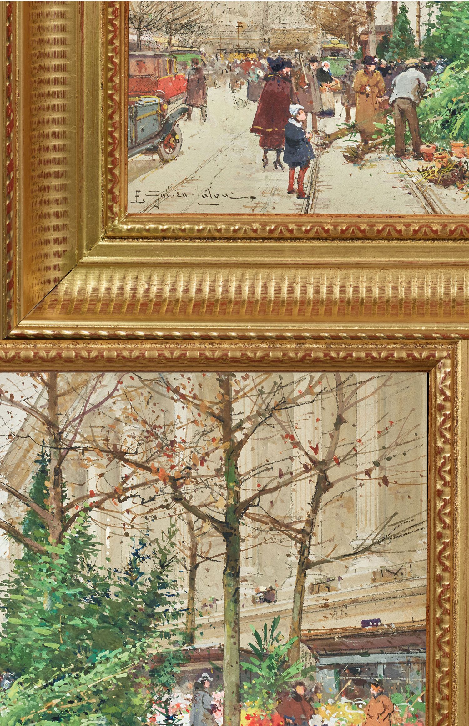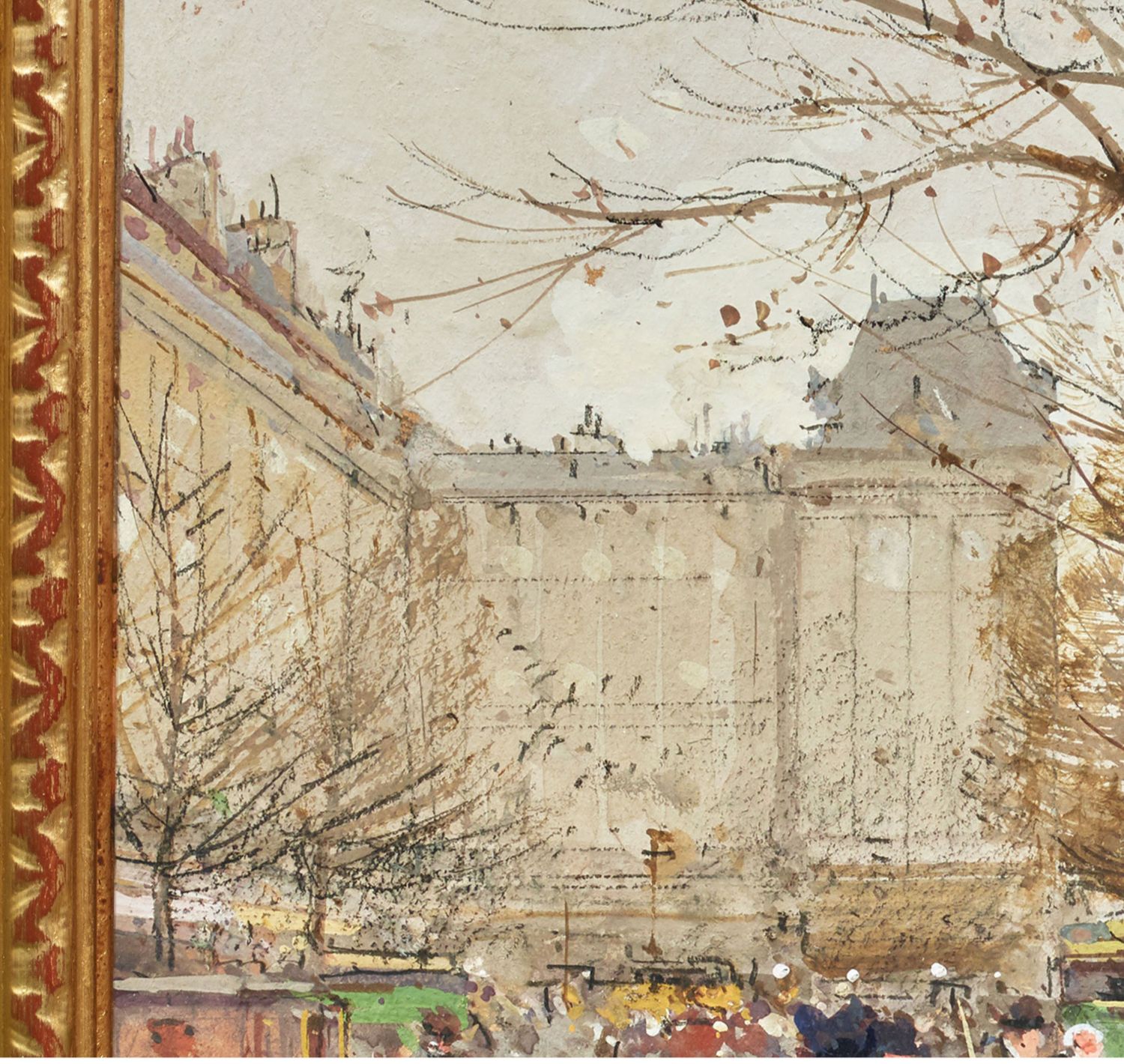 独角鹿西洋古董法国艺术家签名水粉画《圣诞前的巴黎花卉市场》