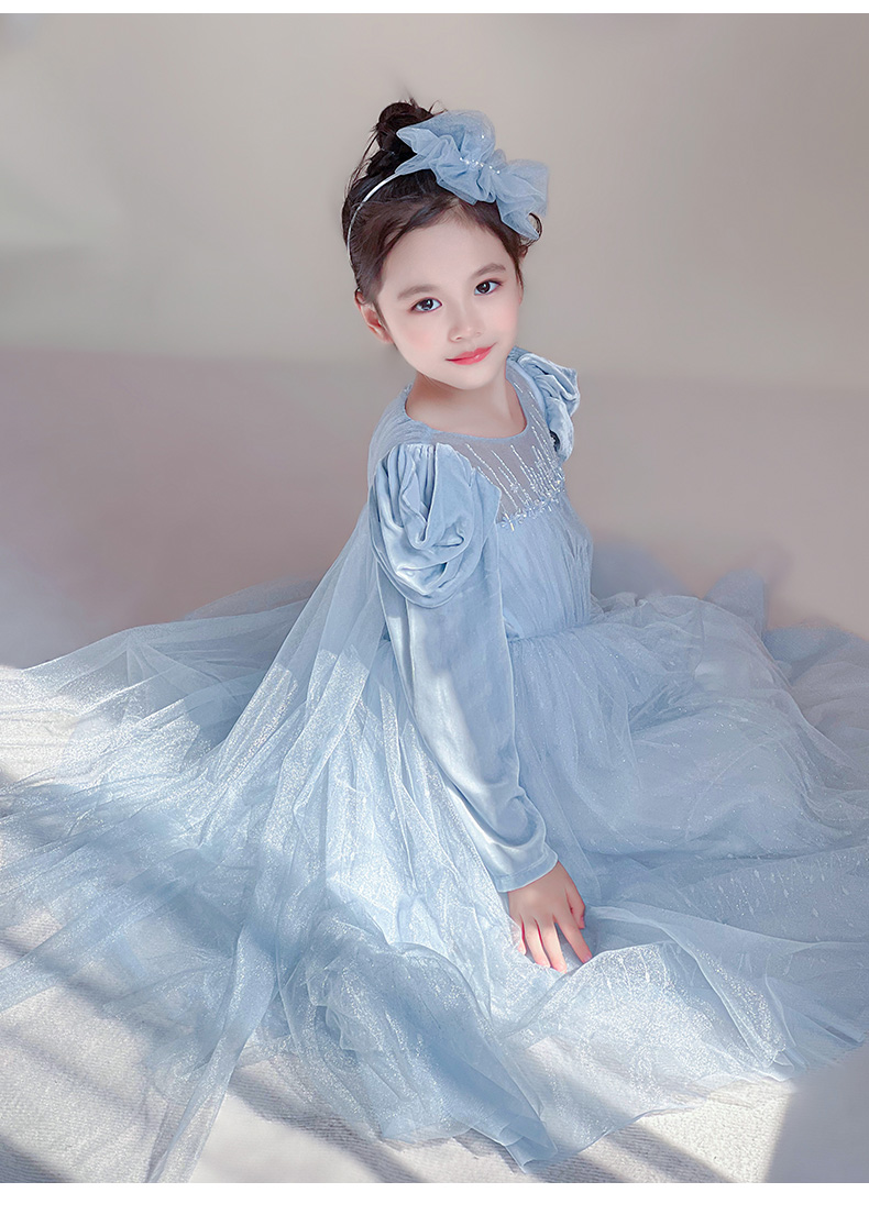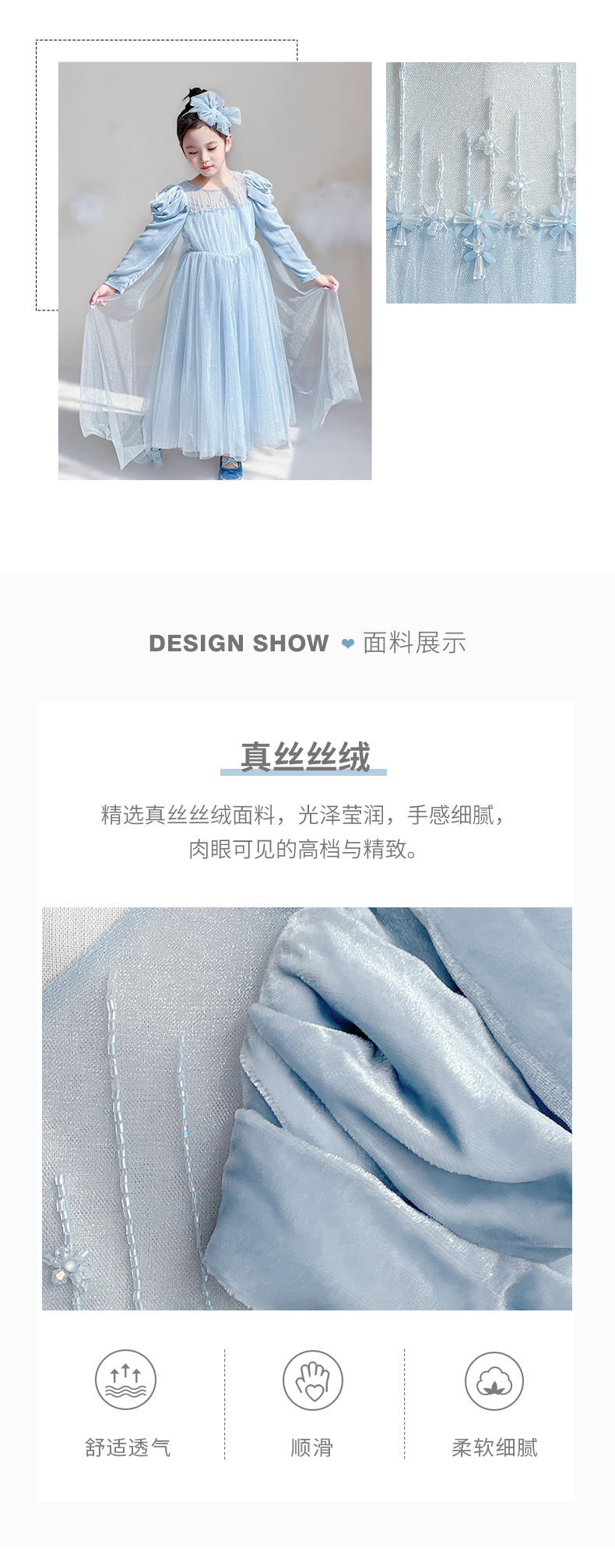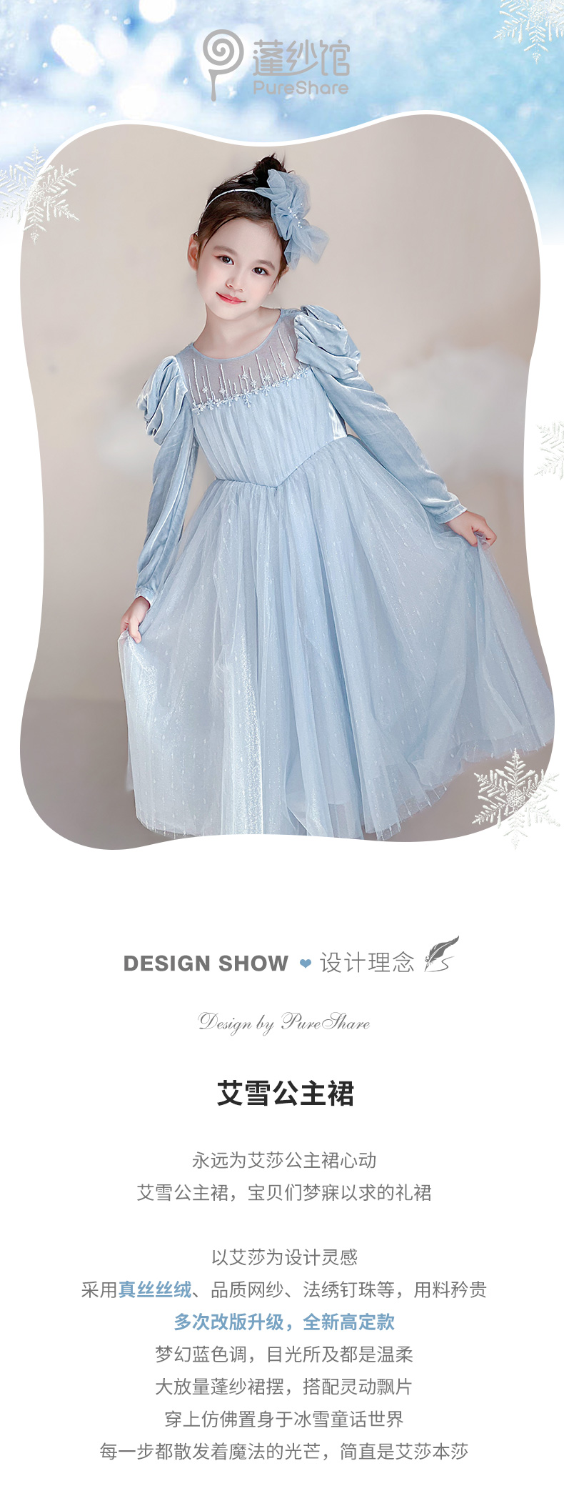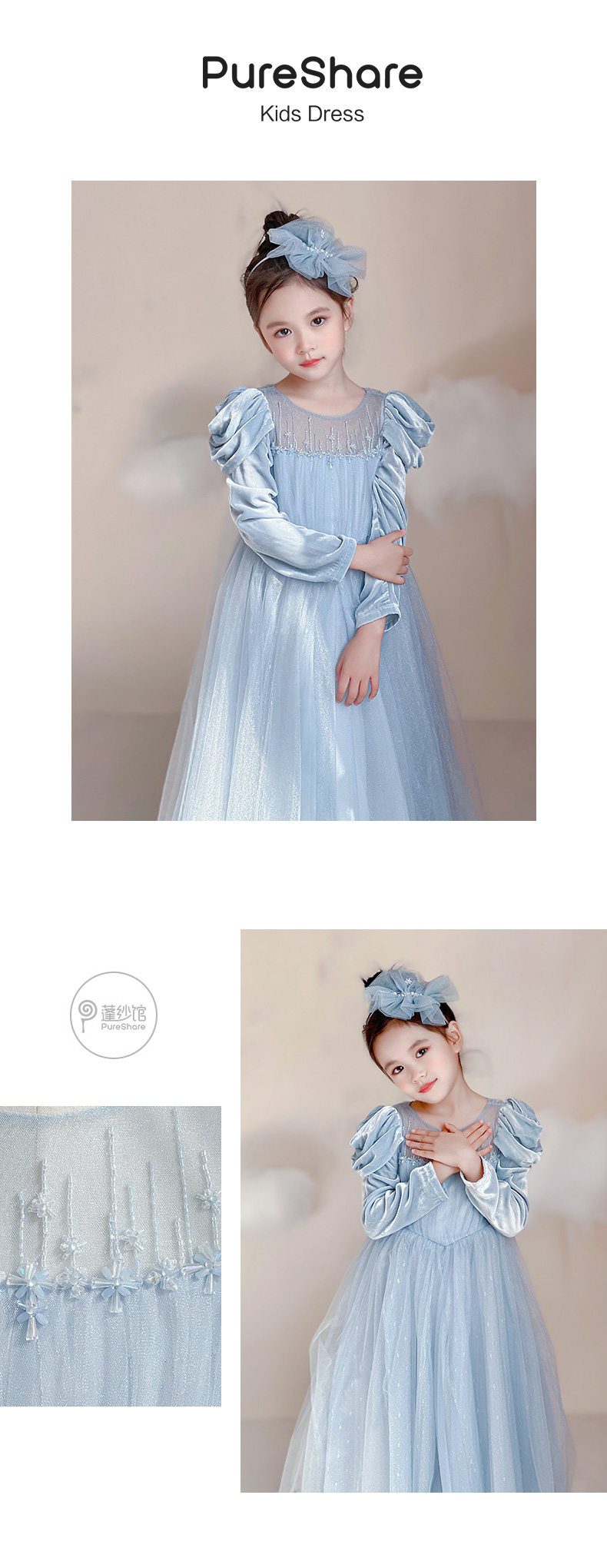 非质量问题不退换哦~pureshare 女童连衣裙秋装新款洋气气质丝绒礼服裙演出生日-公主音乐盒