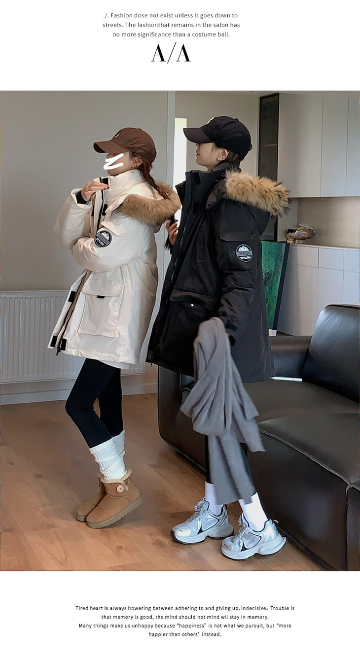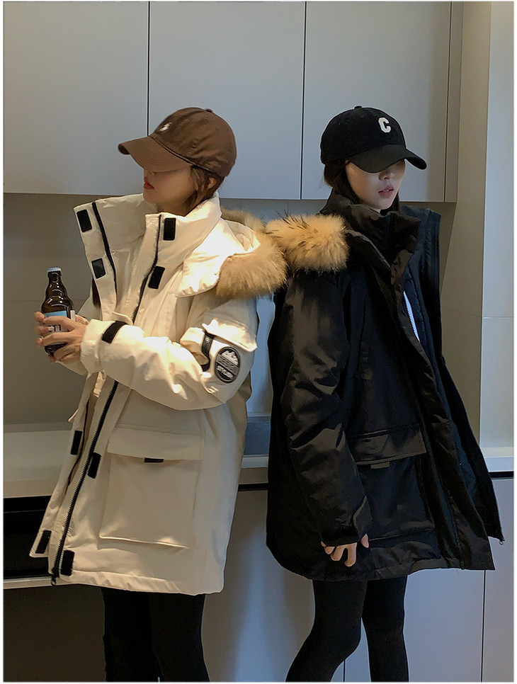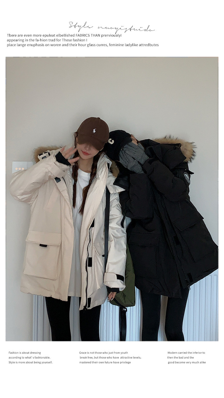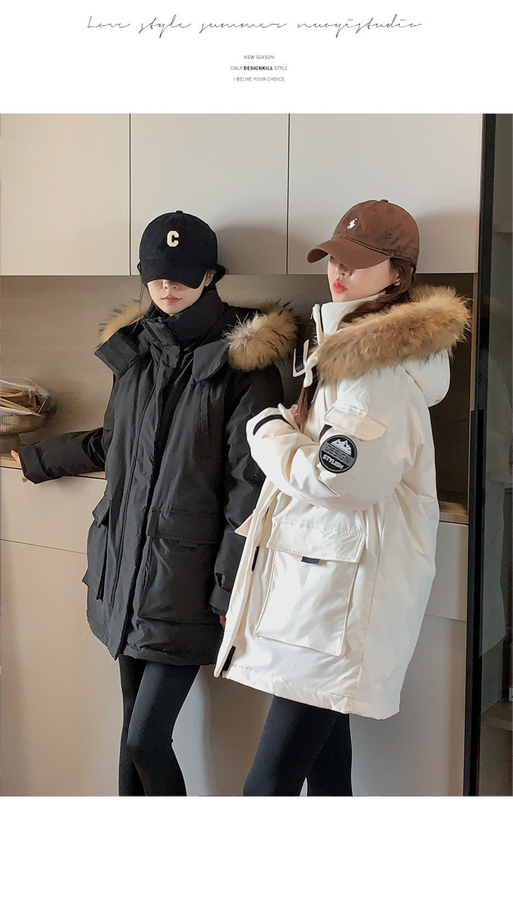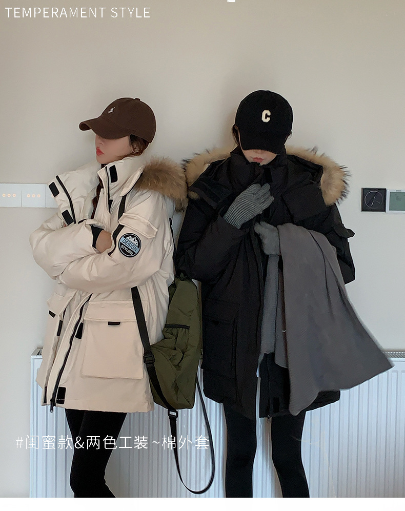 【女冬季加厚美式高级感棉衣中长款保暖外套】大毛领工装派克羽绒棉服