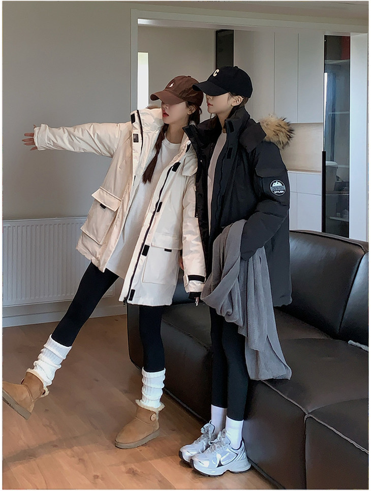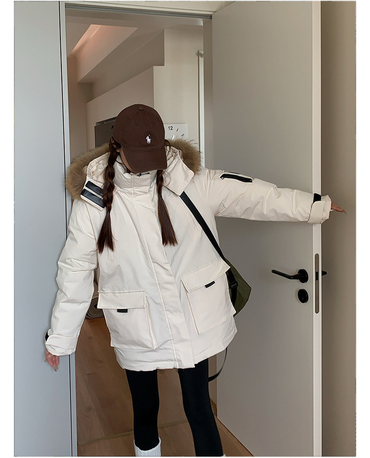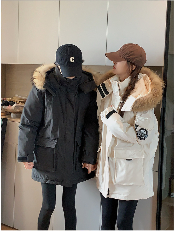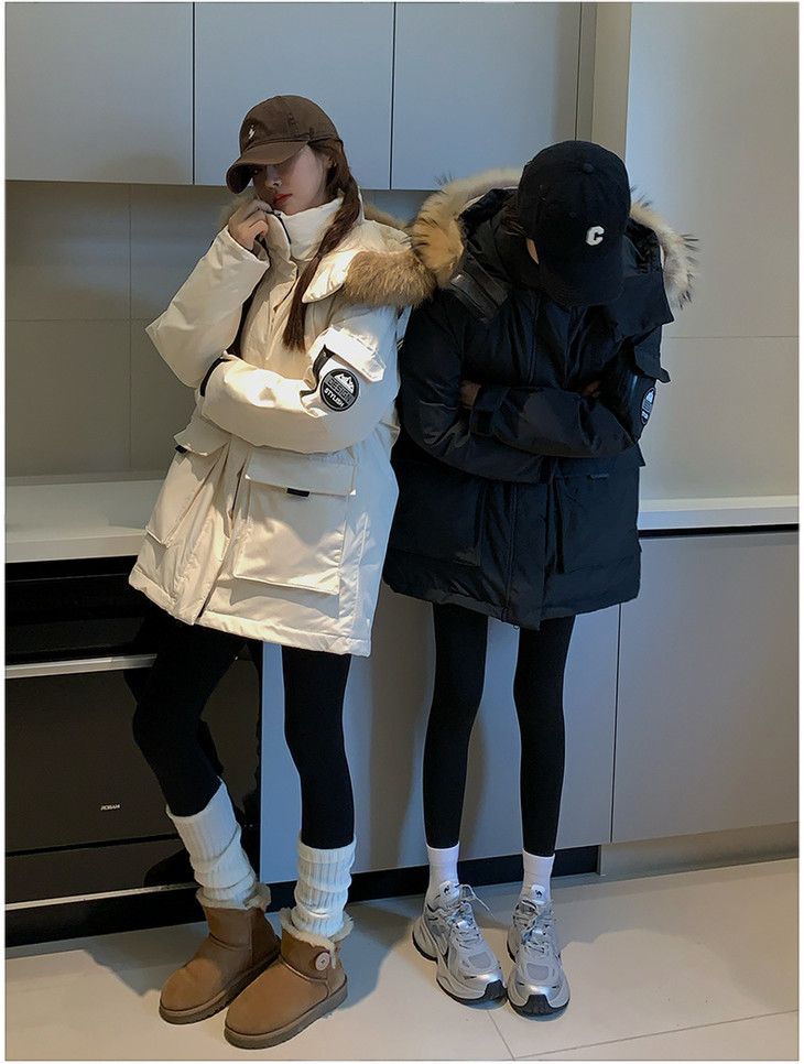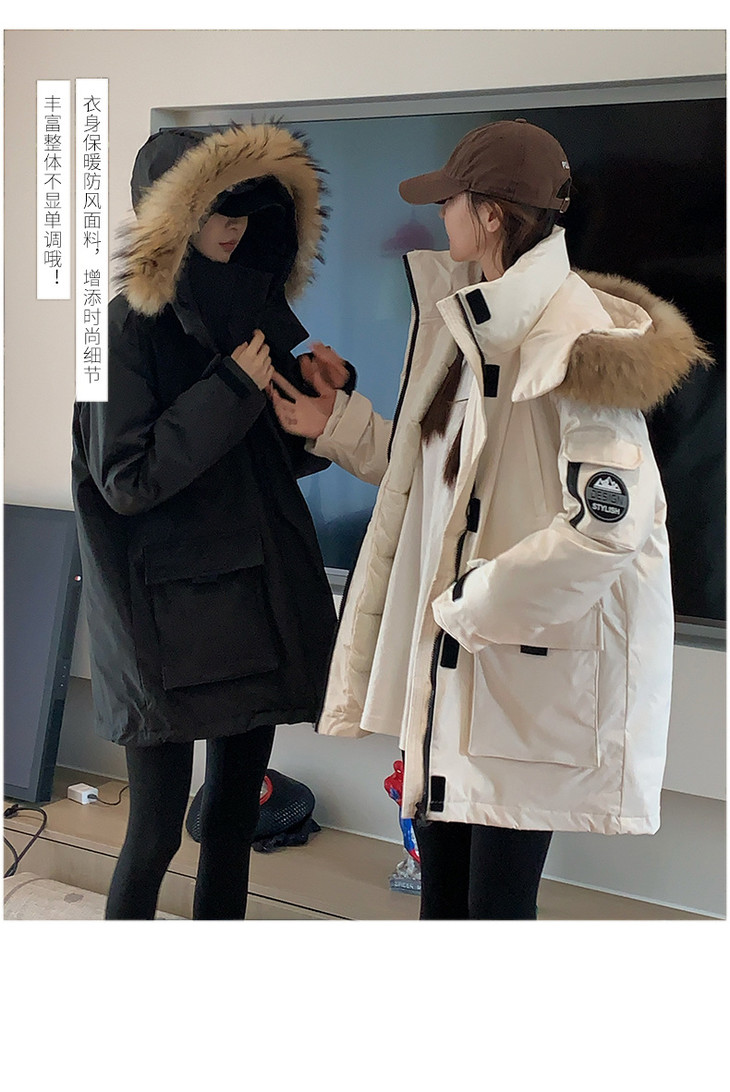 【女冬季加厚美式高级感棉衣中长款保暖外套】大毛领工装派克羽绒棉服
