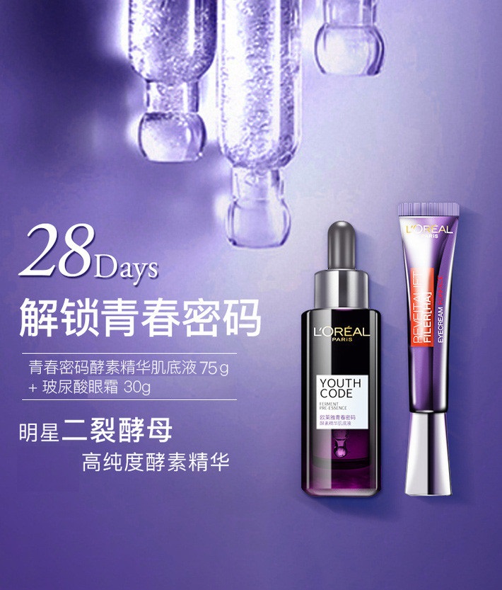 法国LOREAL欧莱雅青春密码酵素精华肌底液 75ml+紫熨斗眼霜30g组合