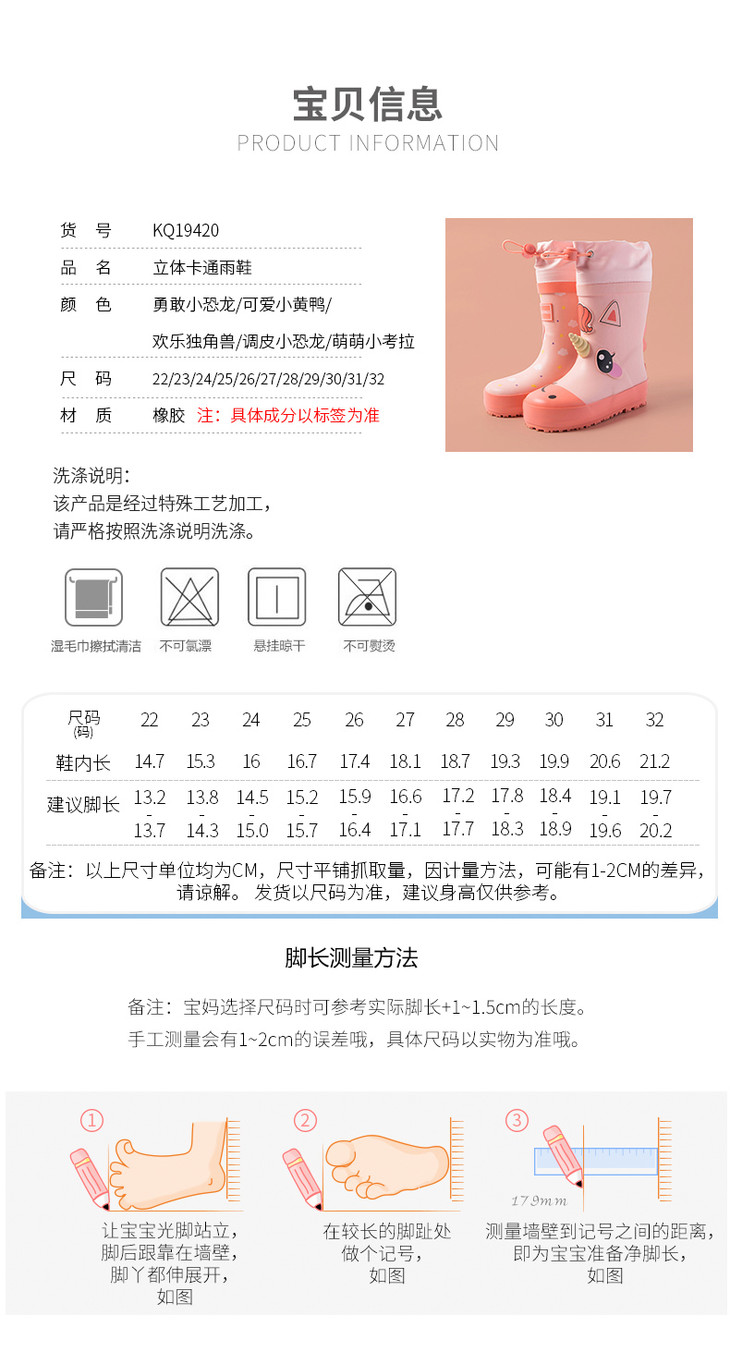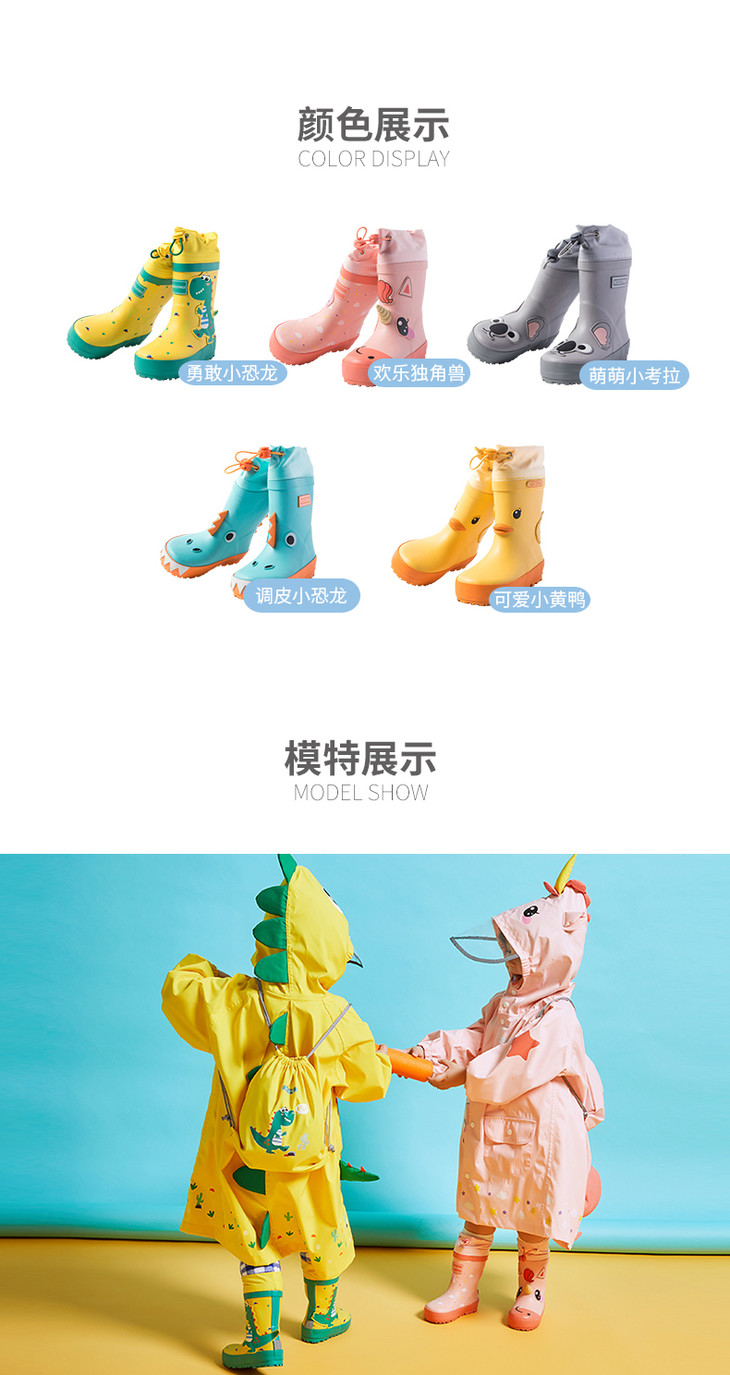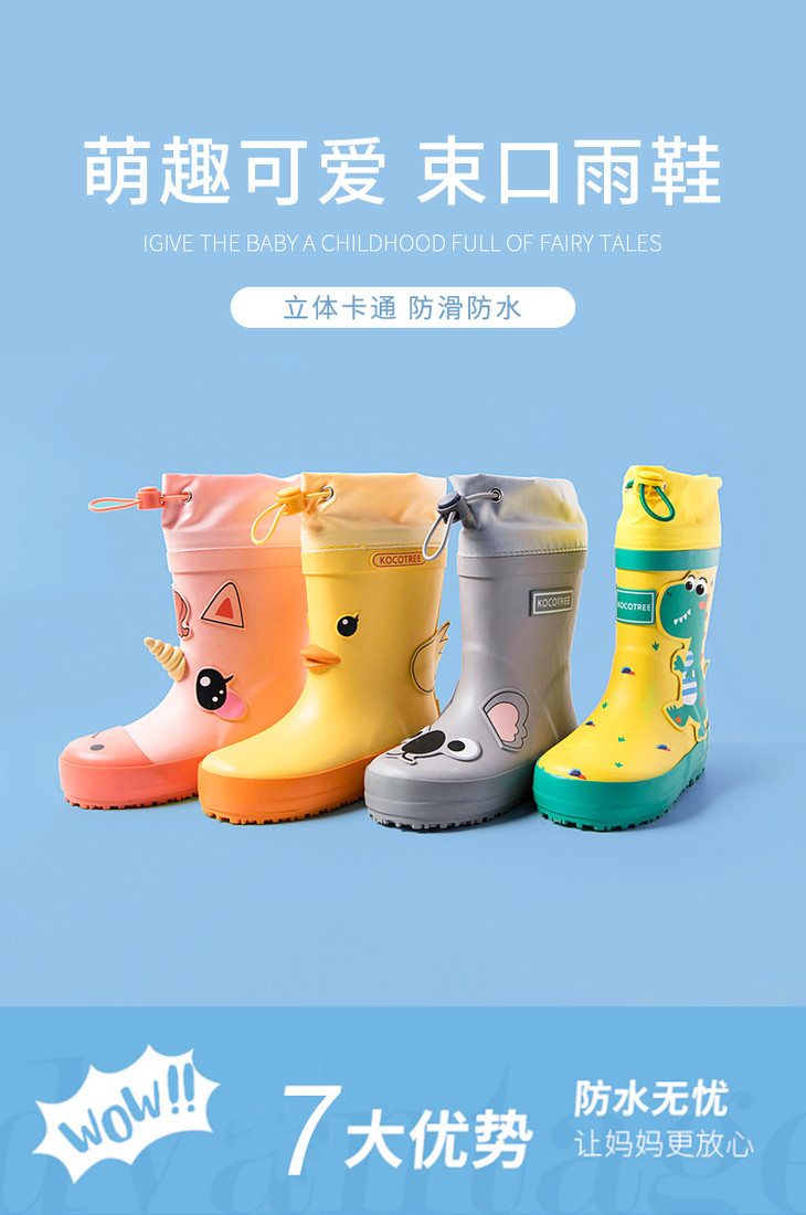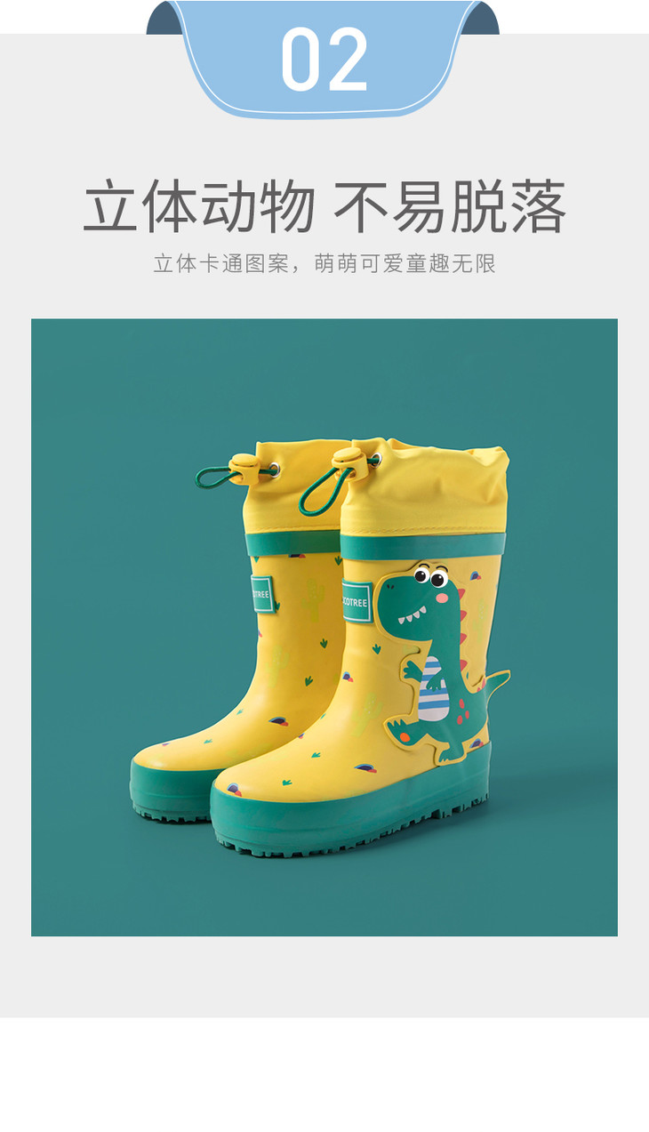 【可爱环保,防滑耐磨】KK树儿童雨鞋Kocotree雨靴男童恐龙女童立体造型水鞋宝宝幼儿园防滑胶鞋男女孩宝宝中小学生小童公主小孩雨靴