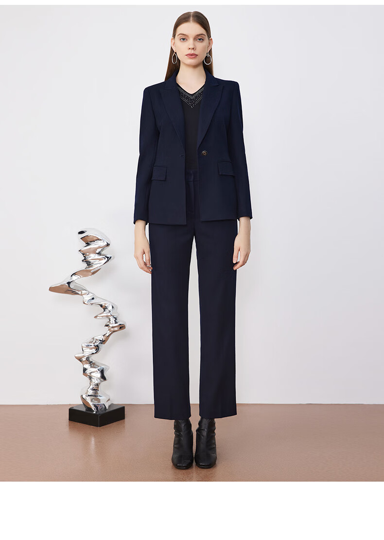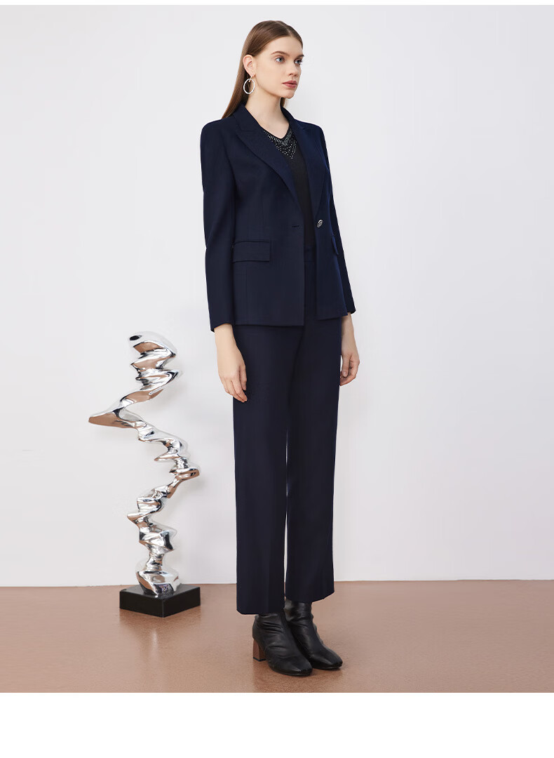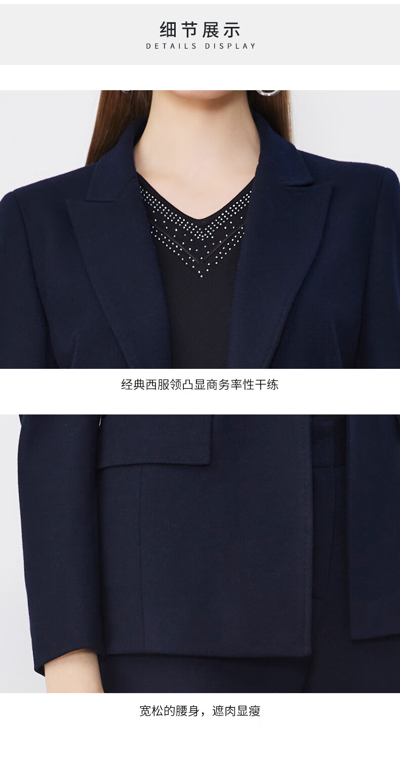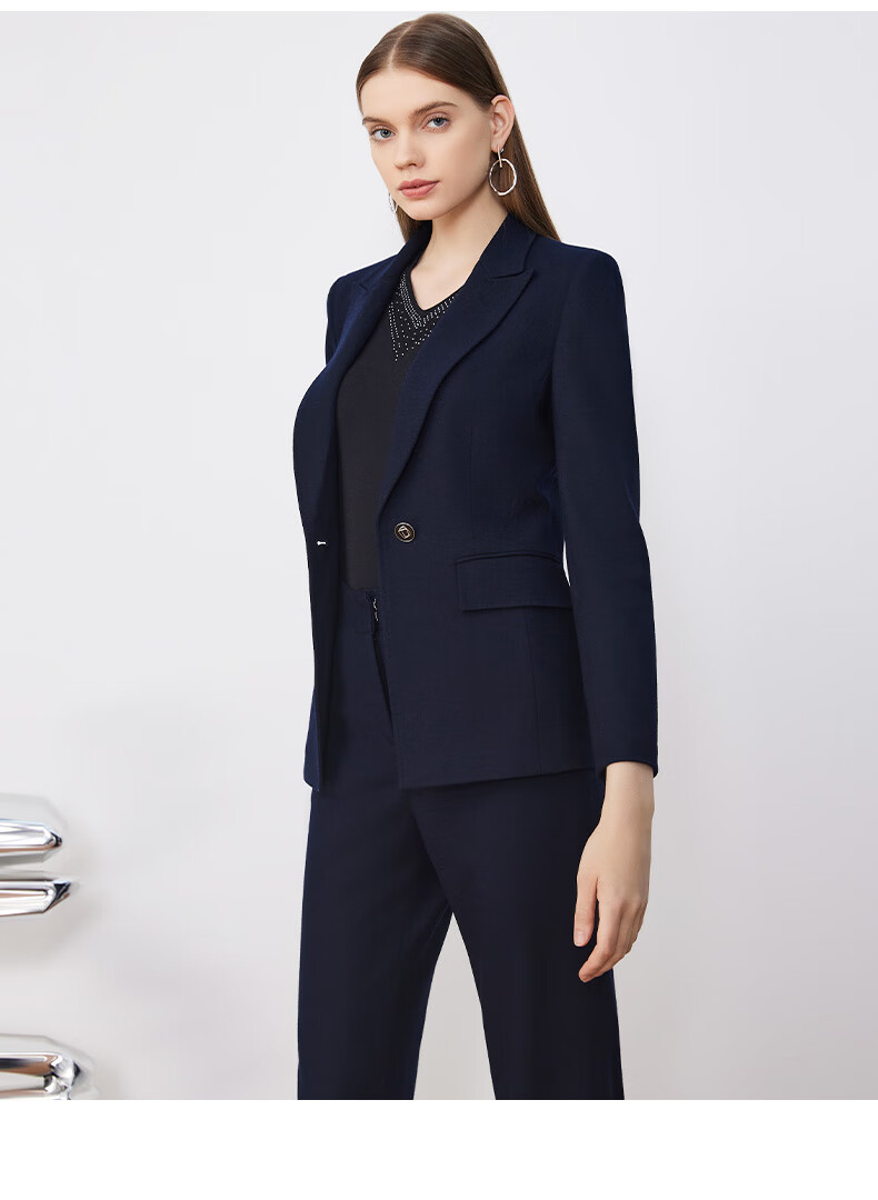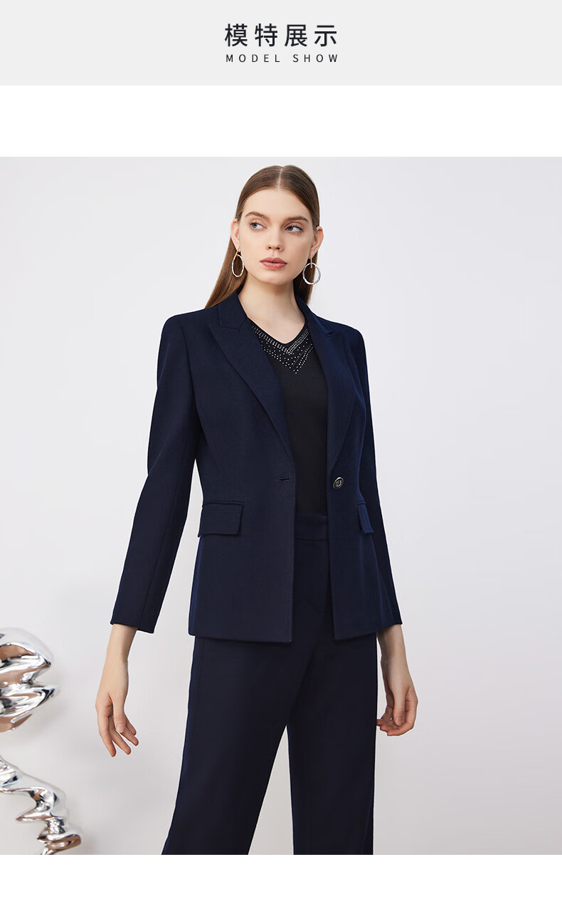 皮尔卡丹女装西装秋季新款宽松一粒扣羊毛西装外套P3358U3983N0
