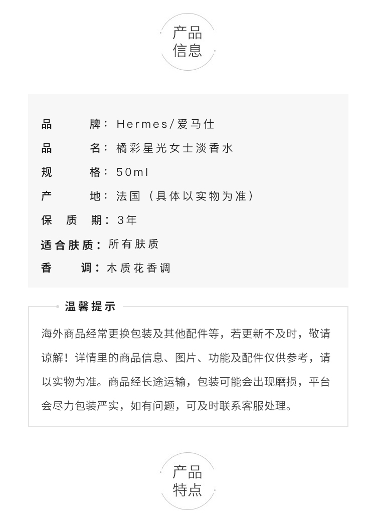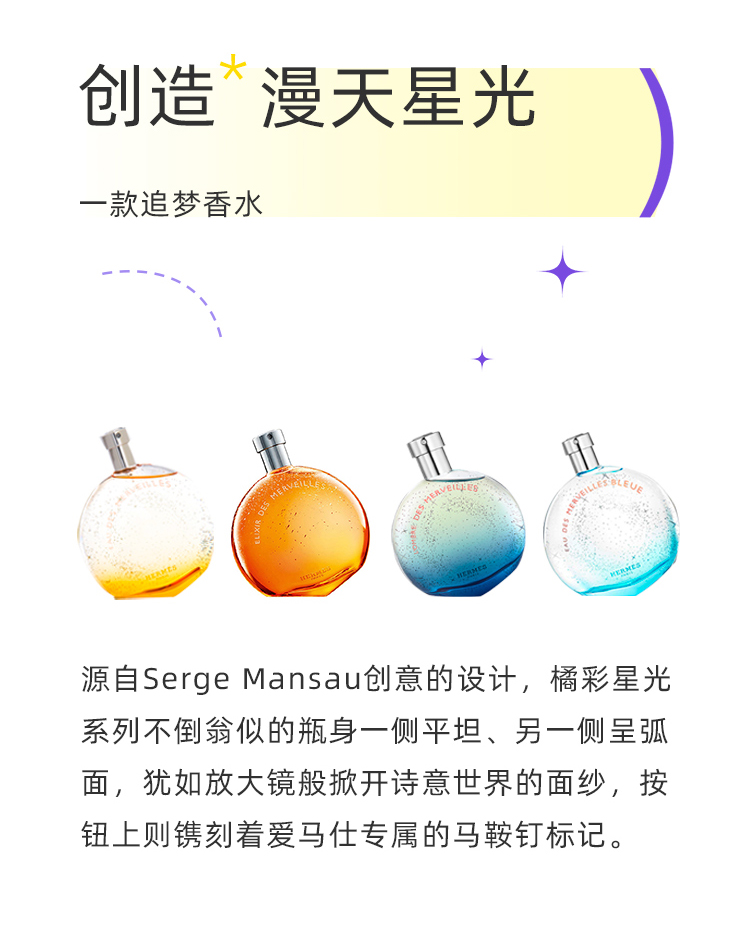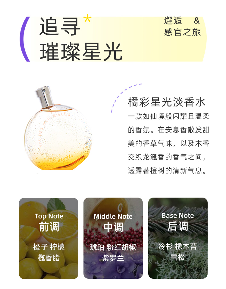 Hermes爱马仕蓝色橘彩星光香水持久木质调女士30ml/50ml /100ml 情人节礼物 送香水礼品袋
