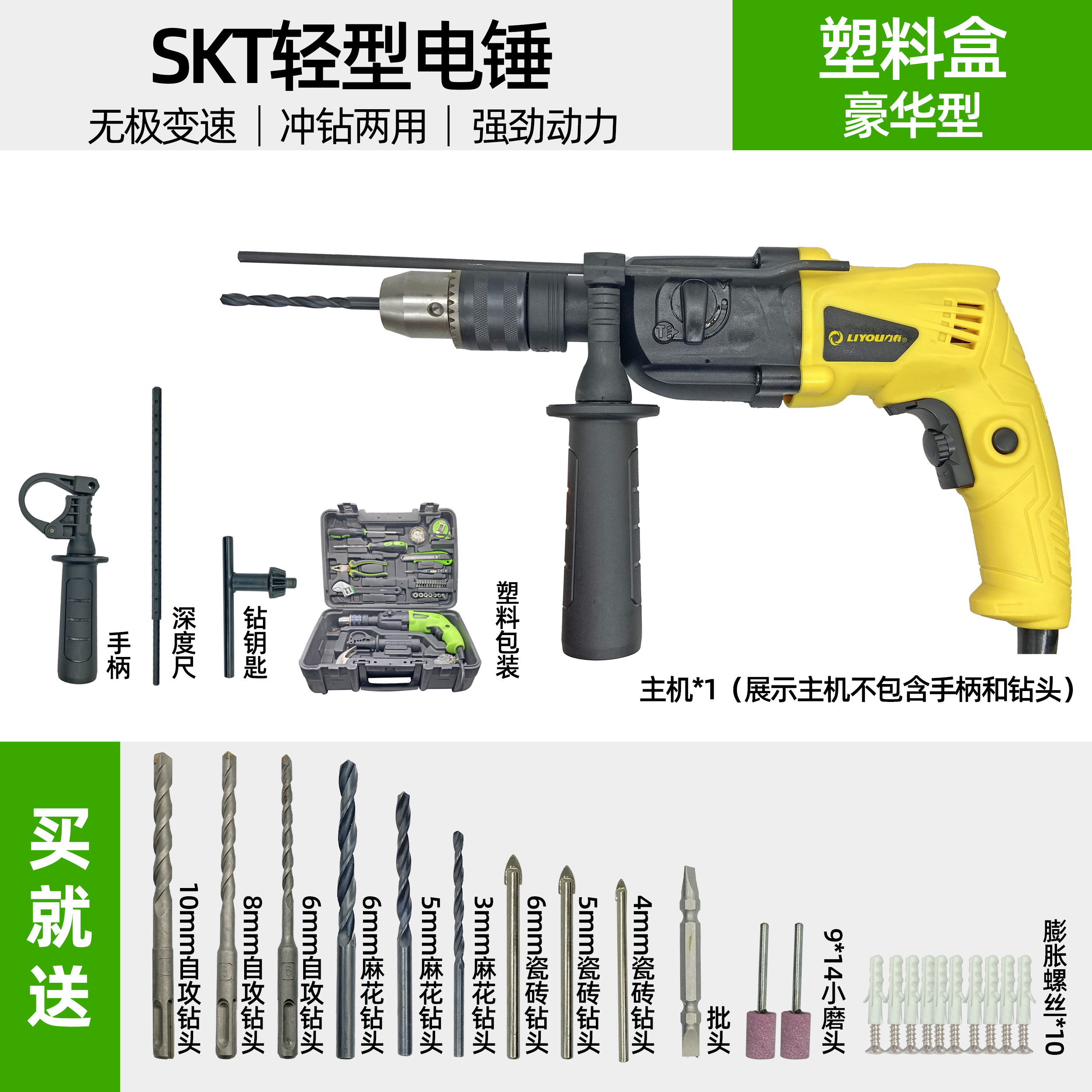 【货号07659】skT轻型420W电锤塑料盒豪华装 一把钳子生锈。特价处理。