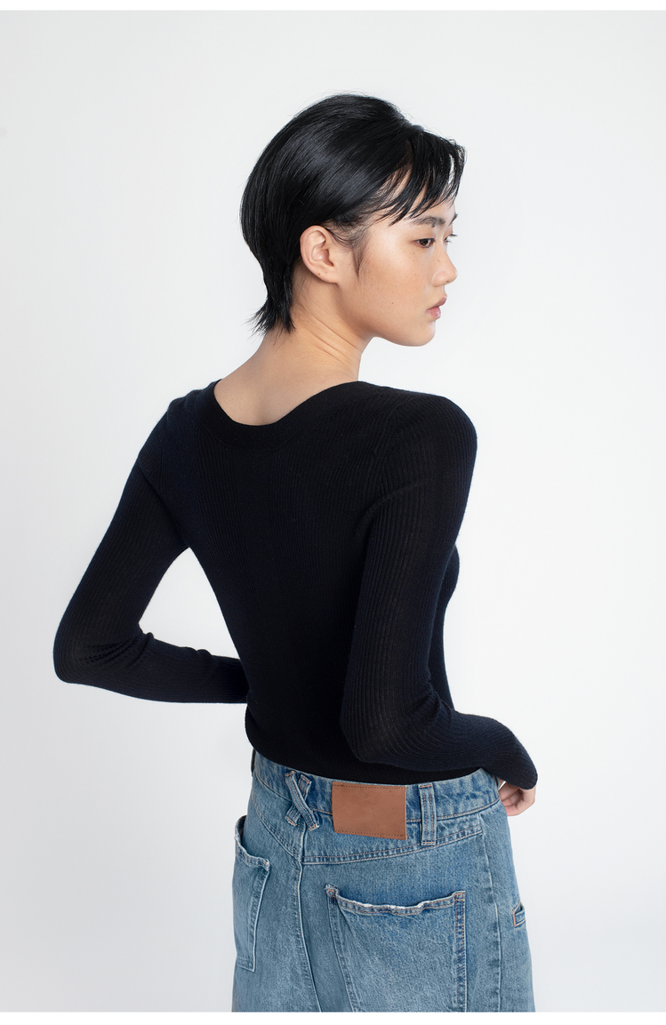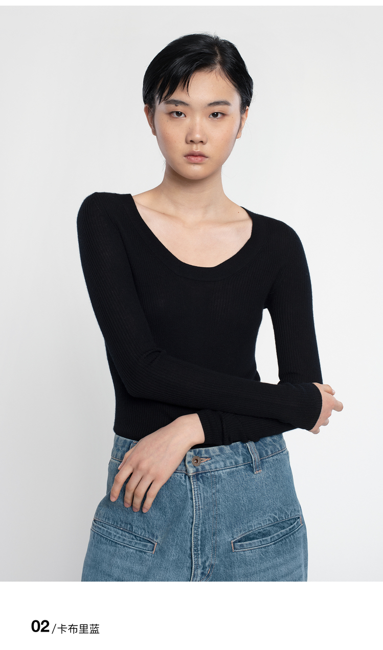 女士2021新款精纺阿拉善山羊绒圆领套头衫