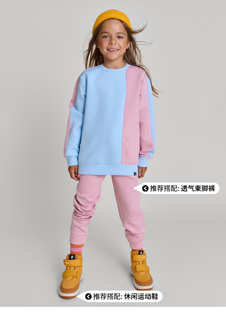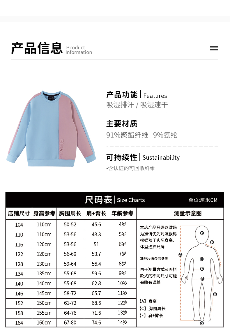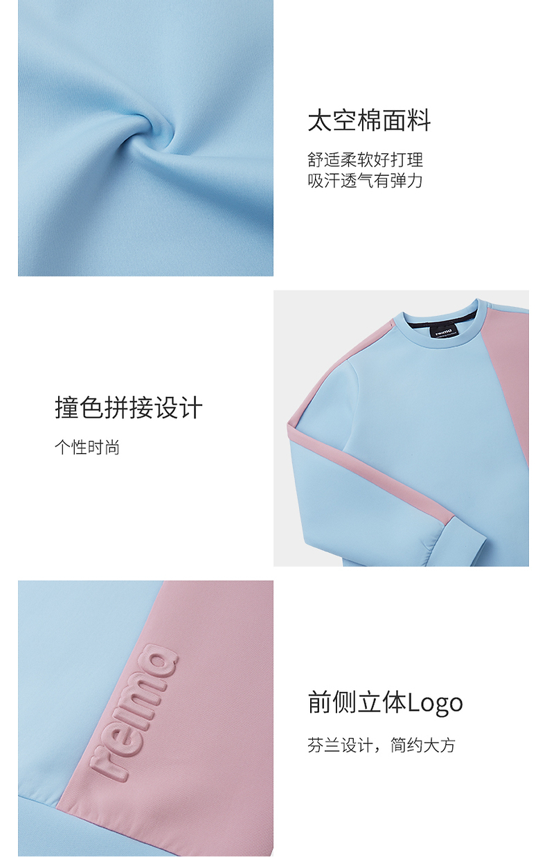 reima男女儿童长袖卫衣大童早秋新款太空棉运动速干圆领上衣