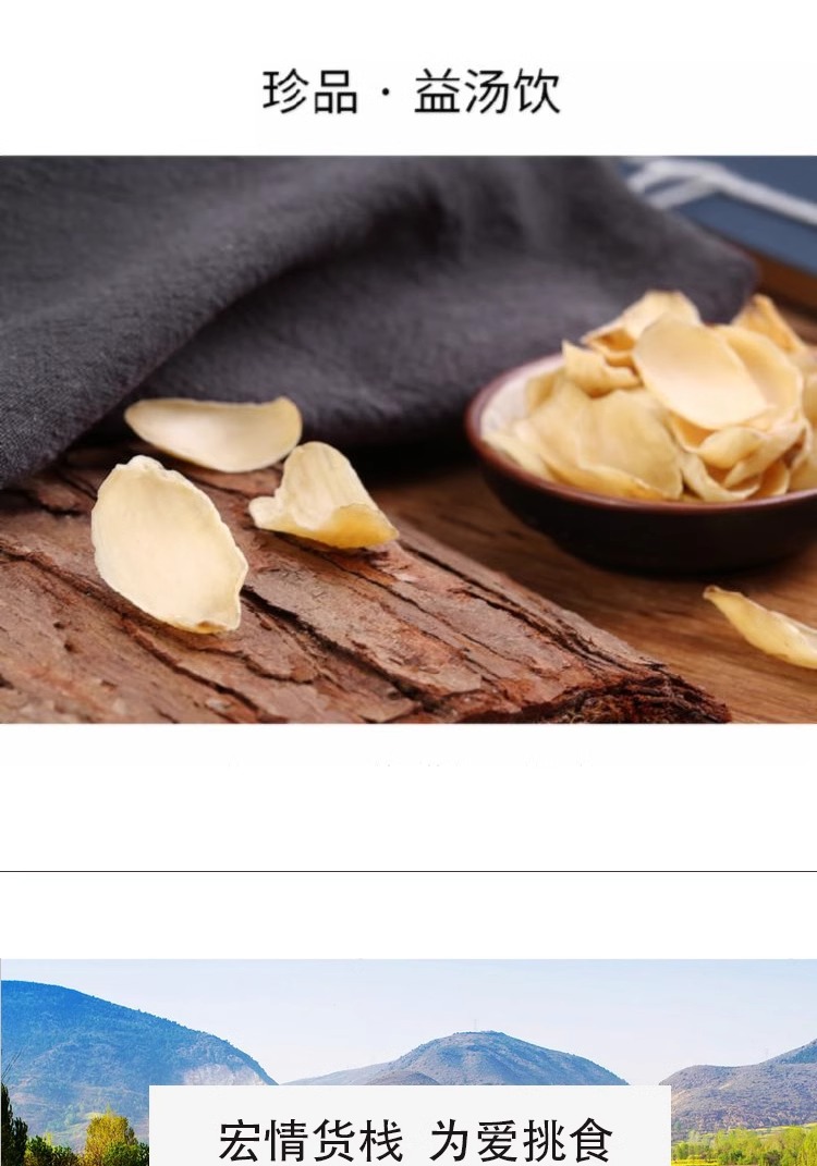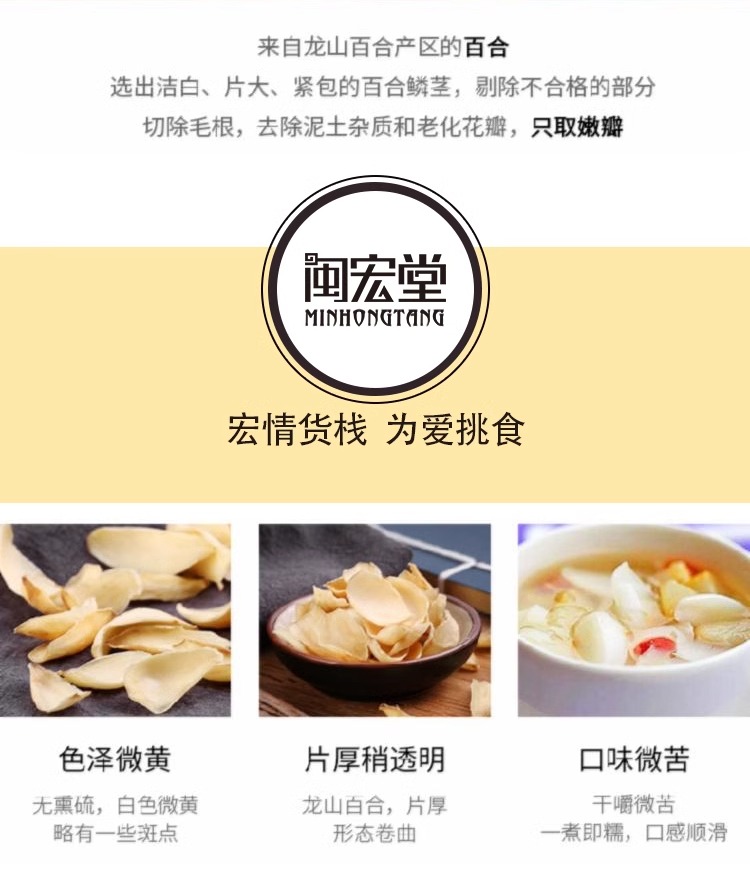 【百合干】 食味清正 粉糯易煮 口感细腻 颜色微黄 质硬而脆