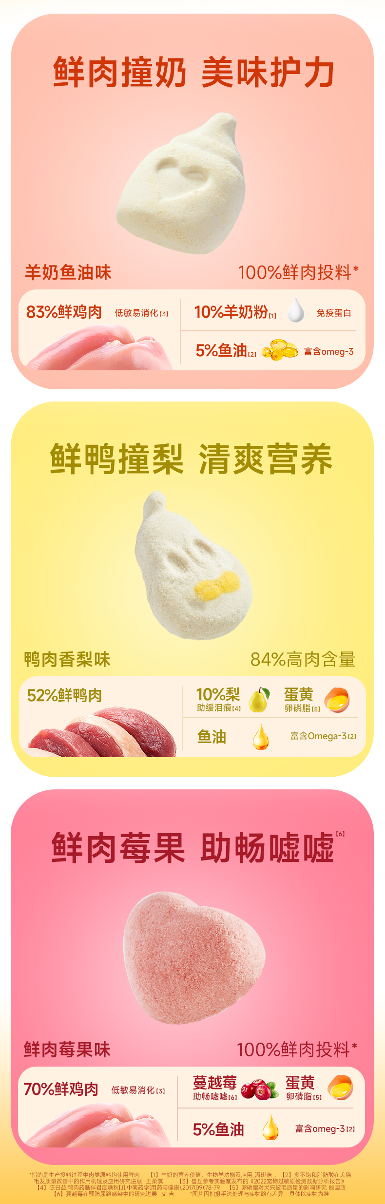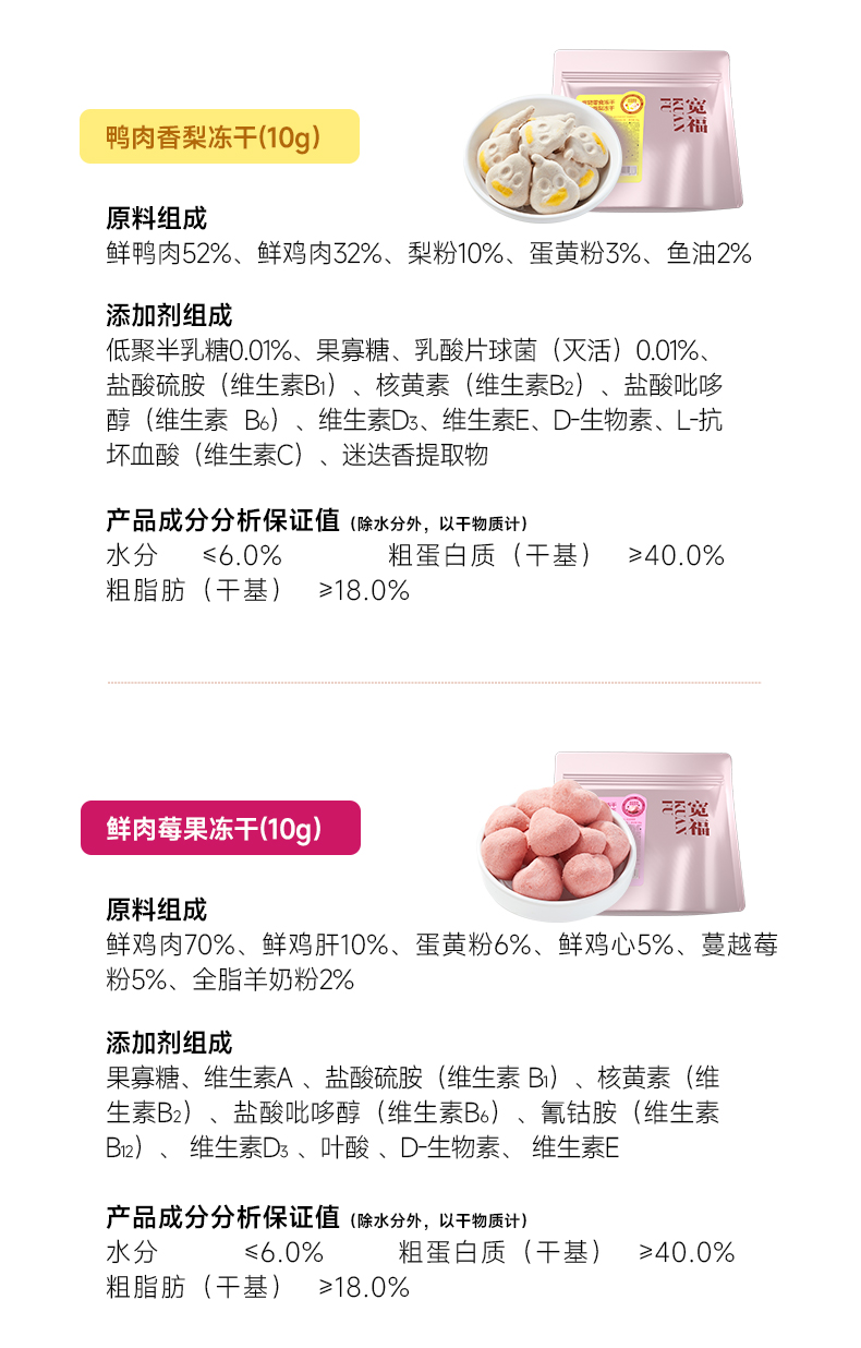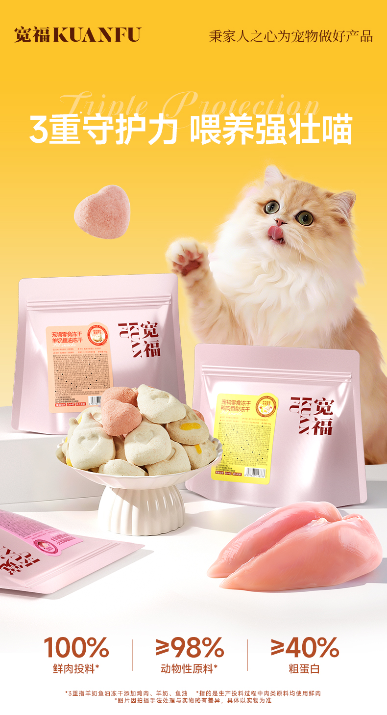 【新品】【鲜肉养护冻干】宽福 三种口味 100%鲜肉投料 鸭肉香梨 鲜肉莓果 羊奶鱼油 多重营养 高鲜肉高蛋白 98%动物性原料 5%天然鱼油 助力毛发油光水亮
