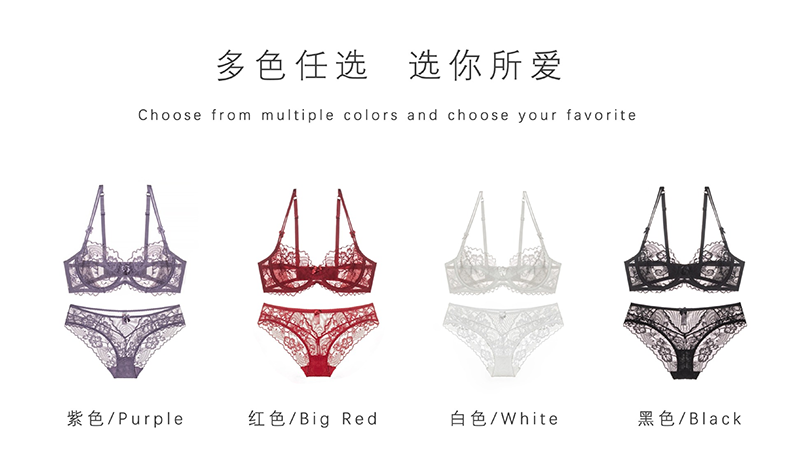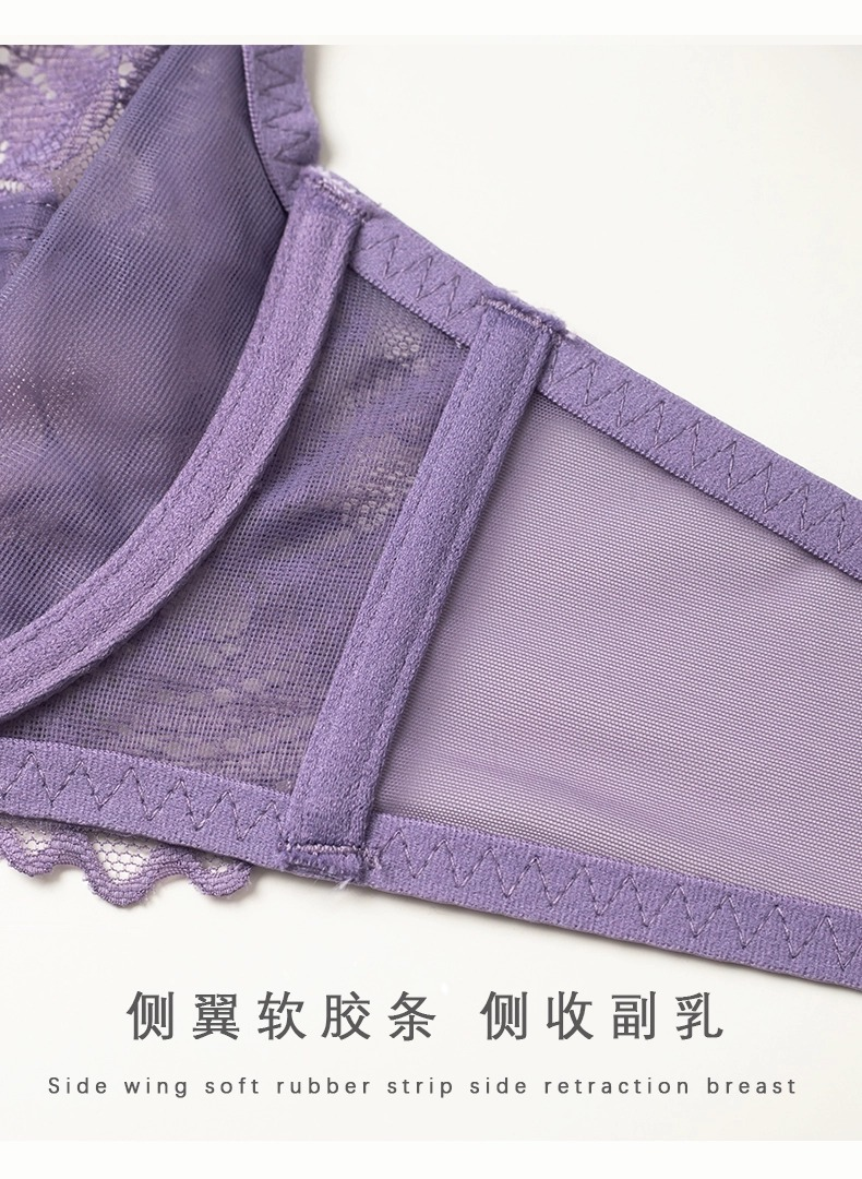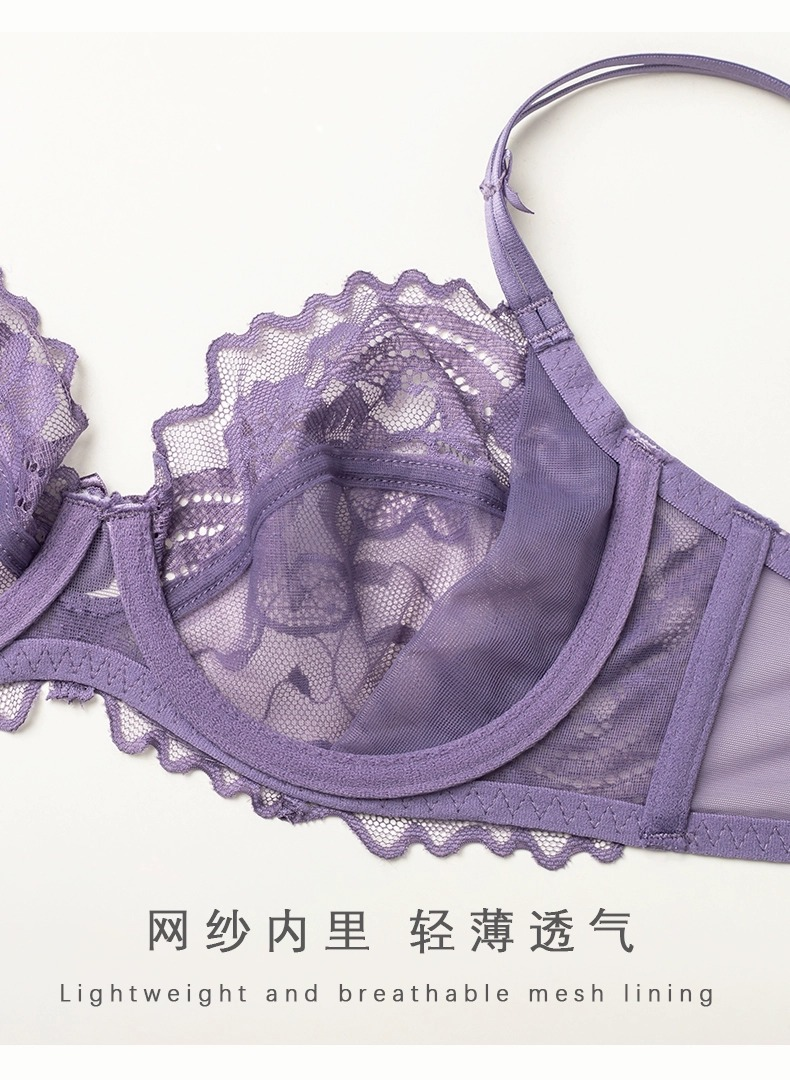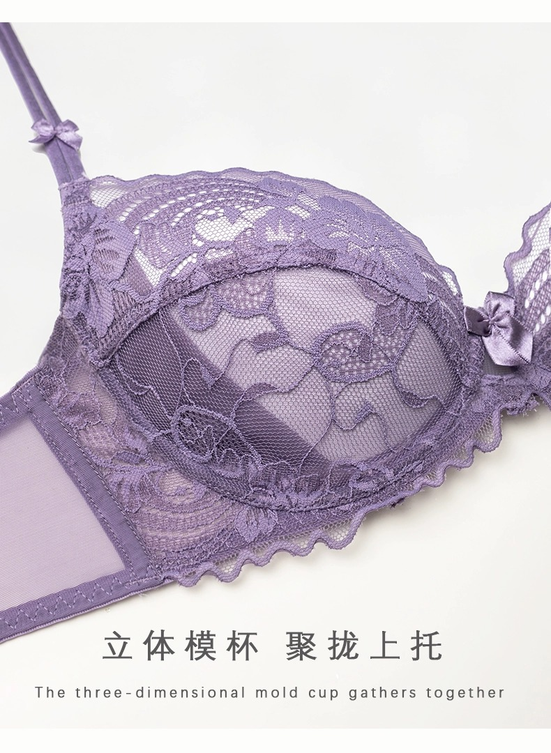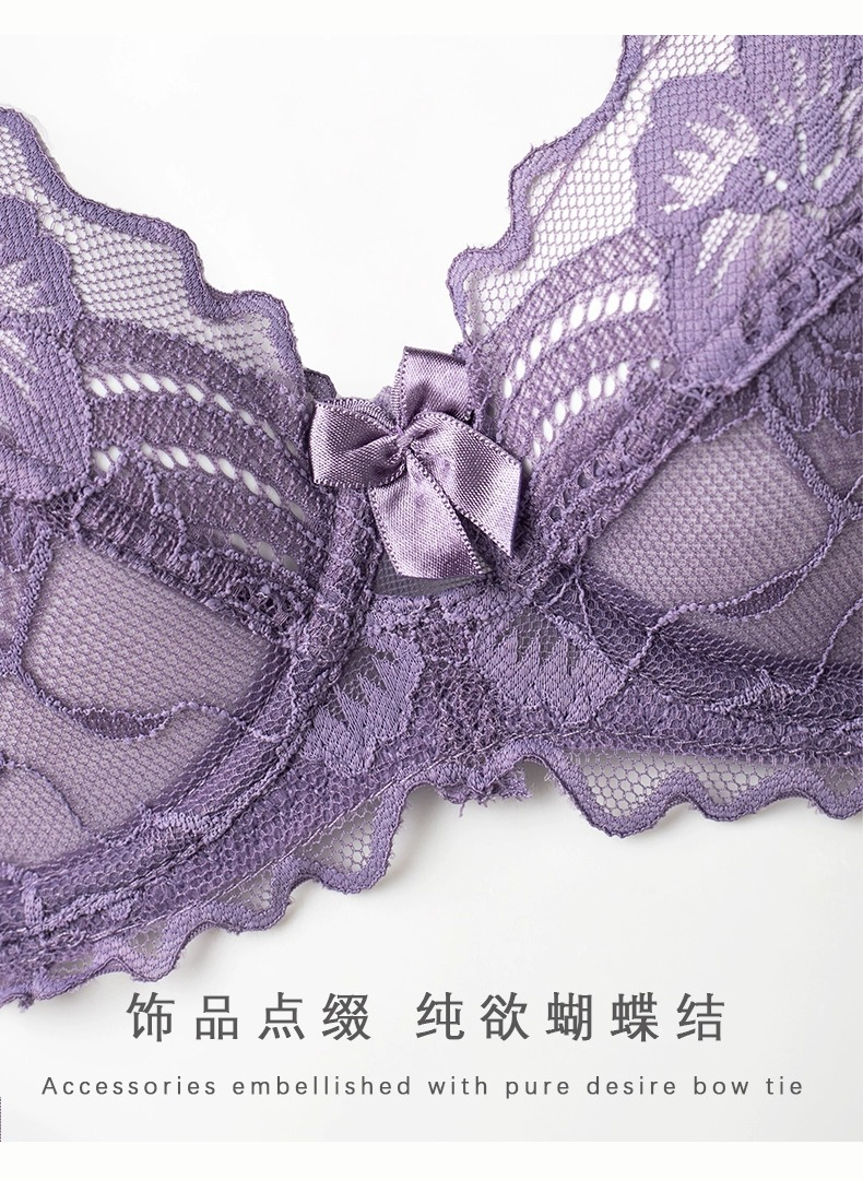 【文胸39元1件内衣,套装49元1套】法式内衣女性感纯欲风甜美蕾丝胸罩大码超薄款显小防下垂文胸套装-紫诱二代