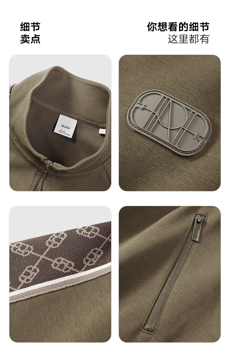 GXG男装 卫衣拉链开衫侧边织带长袖上衣 春季热卖G25X311002