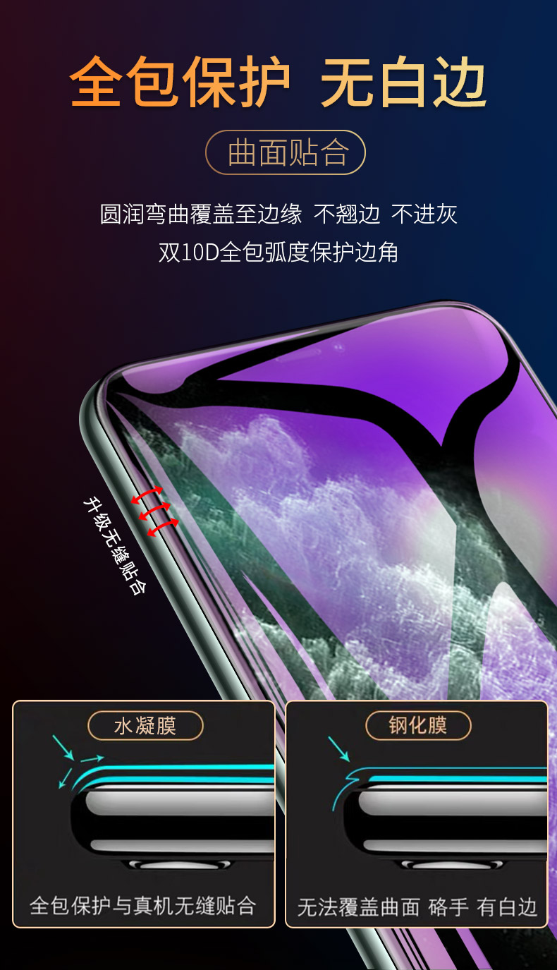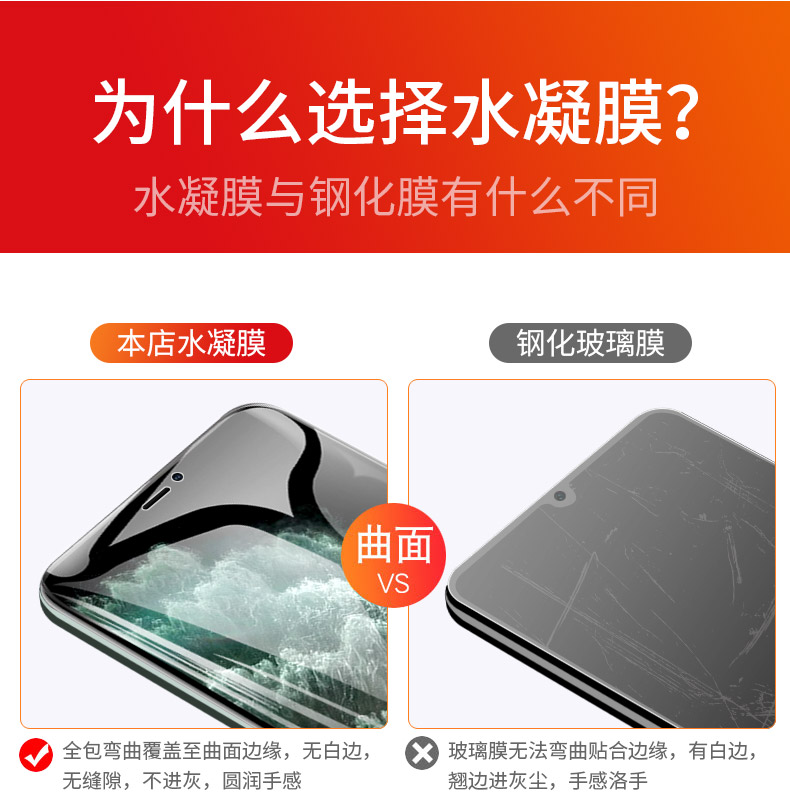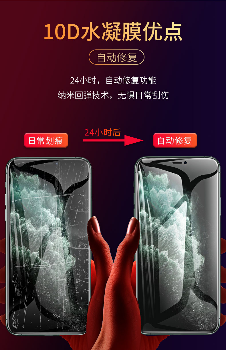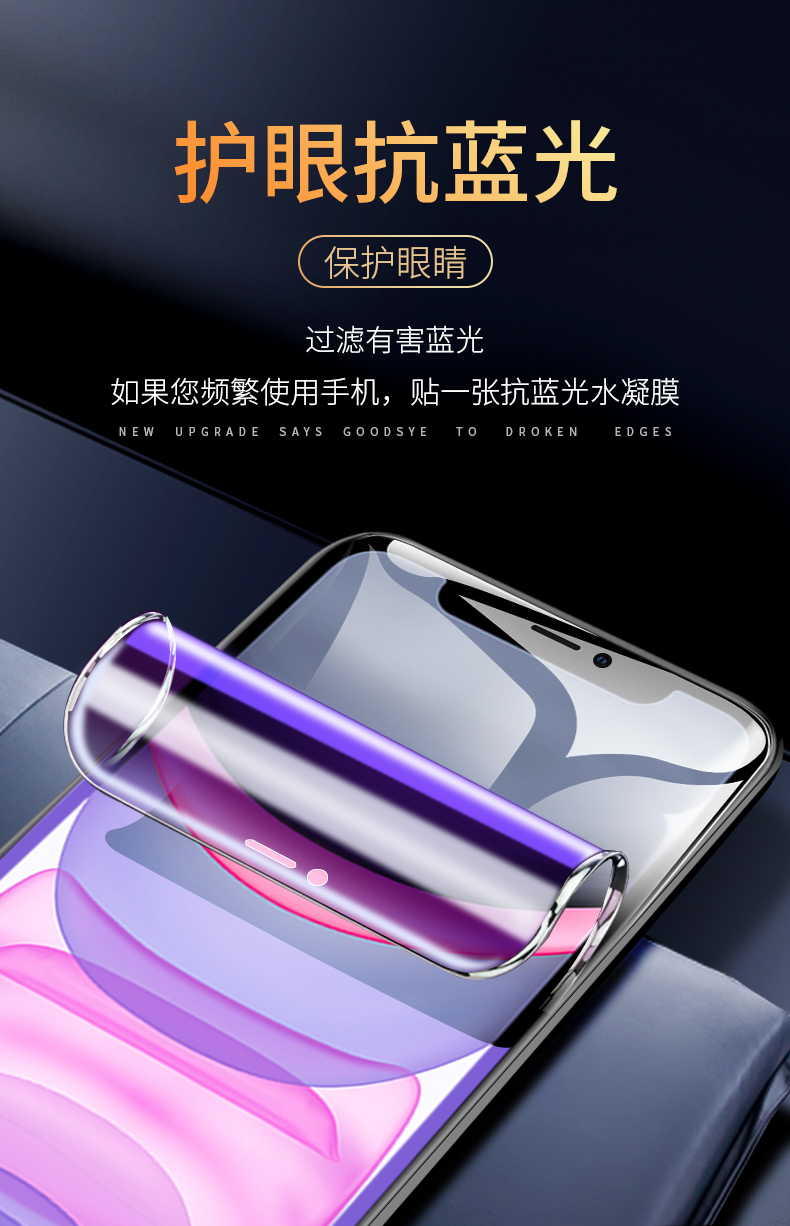 「9.9元包邮!蓝光款水凝膜」水凝膜苹果11钢化软膜xsmax高清透明xr无白边8plus适用iPhone12手机膜壳