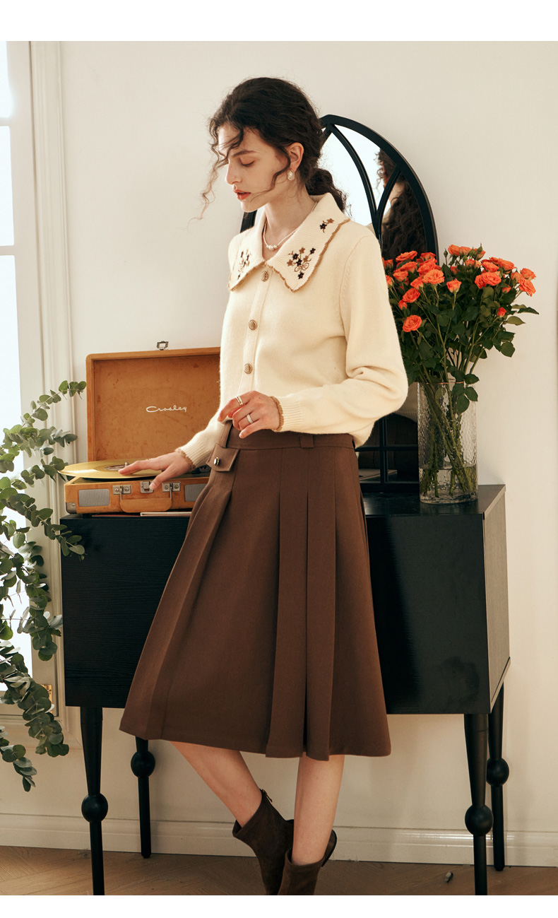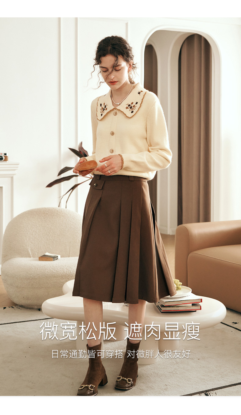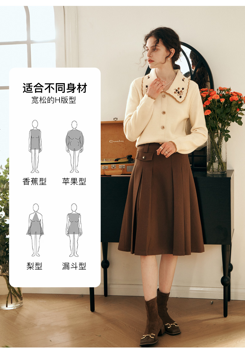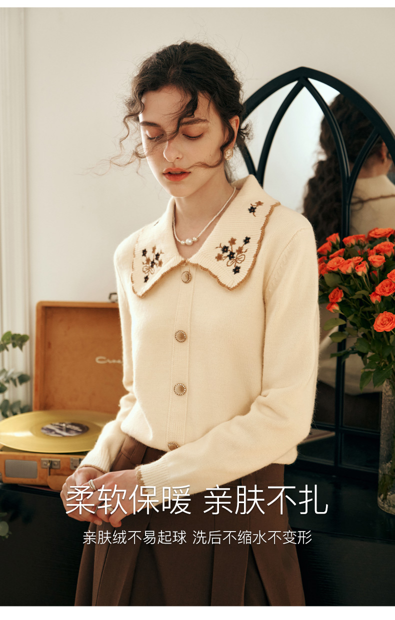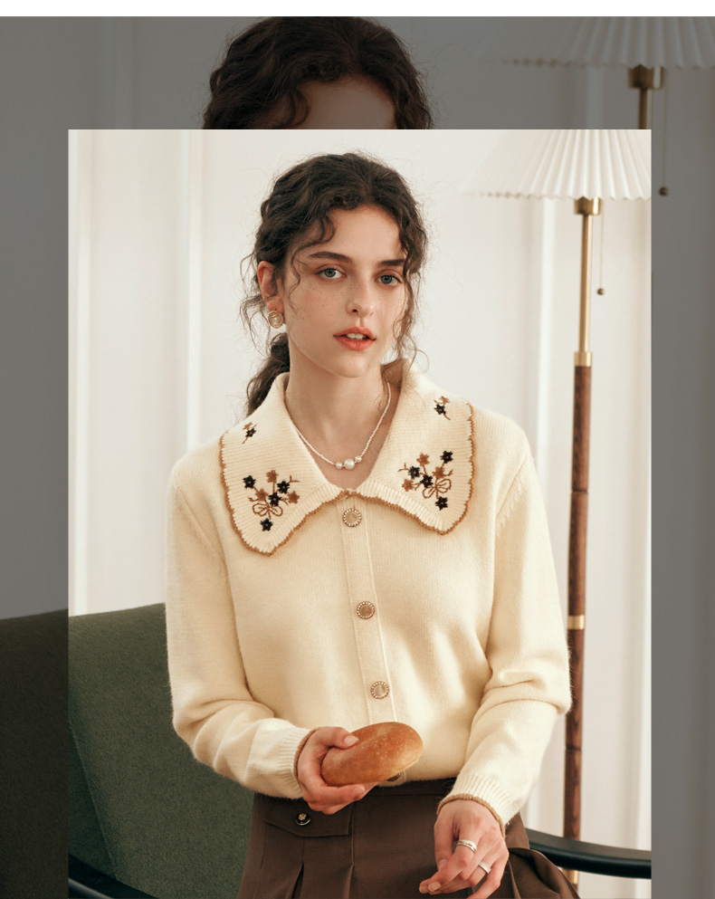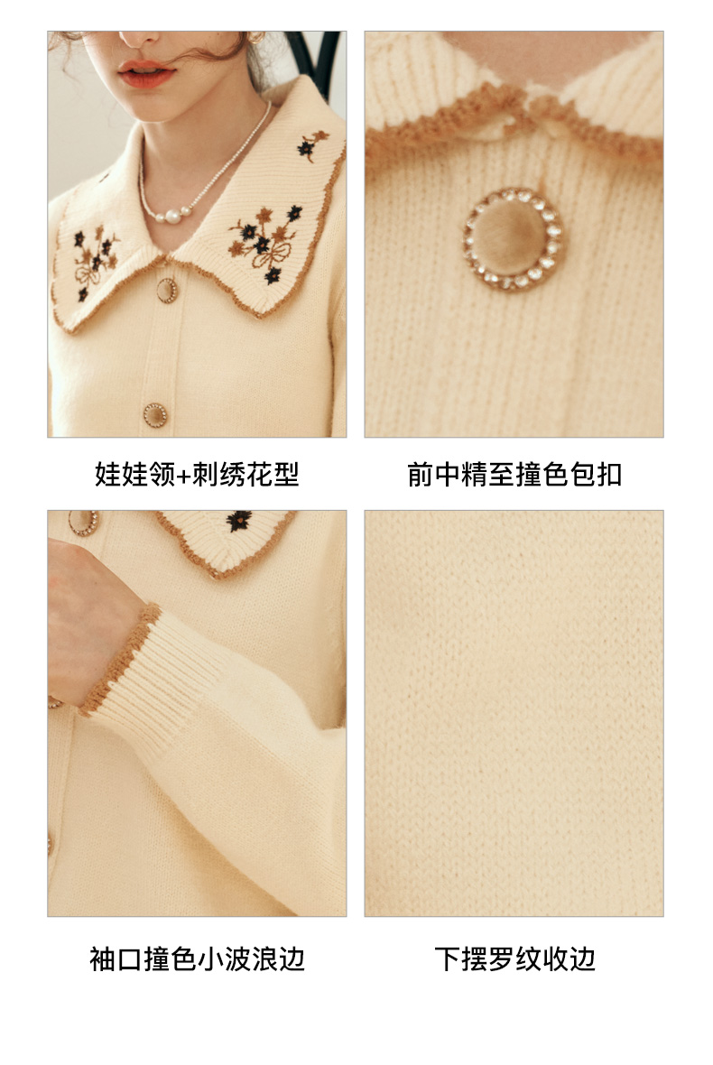 OLrain欧芮儿法式杏黄色毛衣女早春2025年新款复古宽松娃娃领上衣