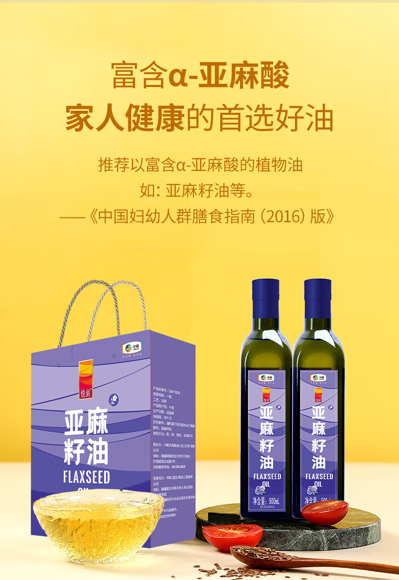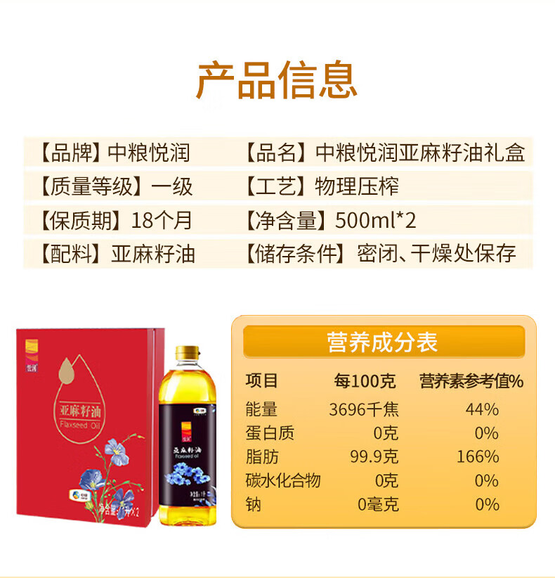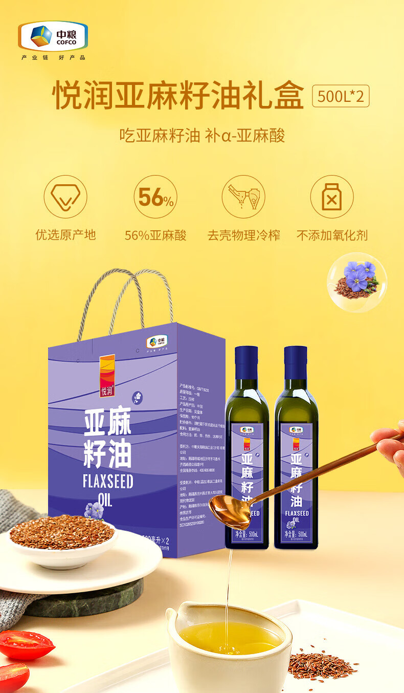 中粮悦润亚麻籽油礼盒500ml*2