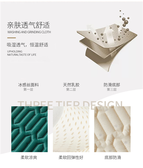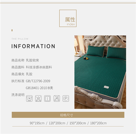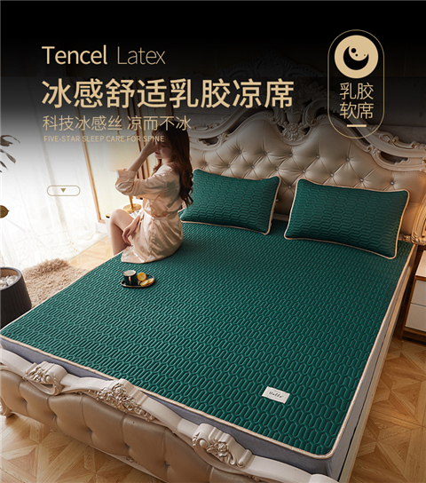 【乳胶凉席三件套】凉而不冰的秘密-天然乳胶凉席 冰丝席三件套 可折叠水洗空调软席子