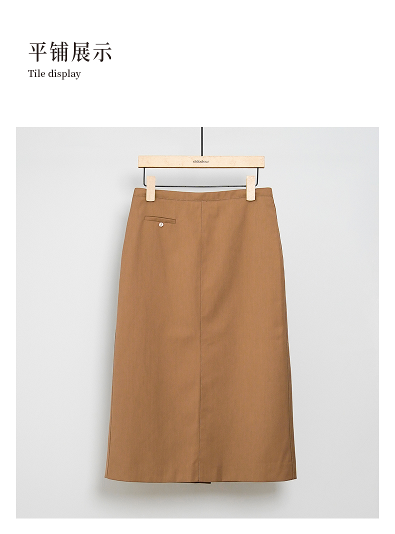 oldcolour高腰直筒显瘦包臀咖色长款半身裙GM41063907