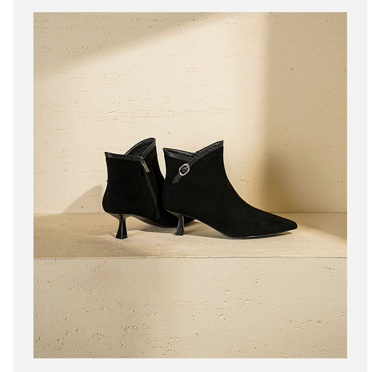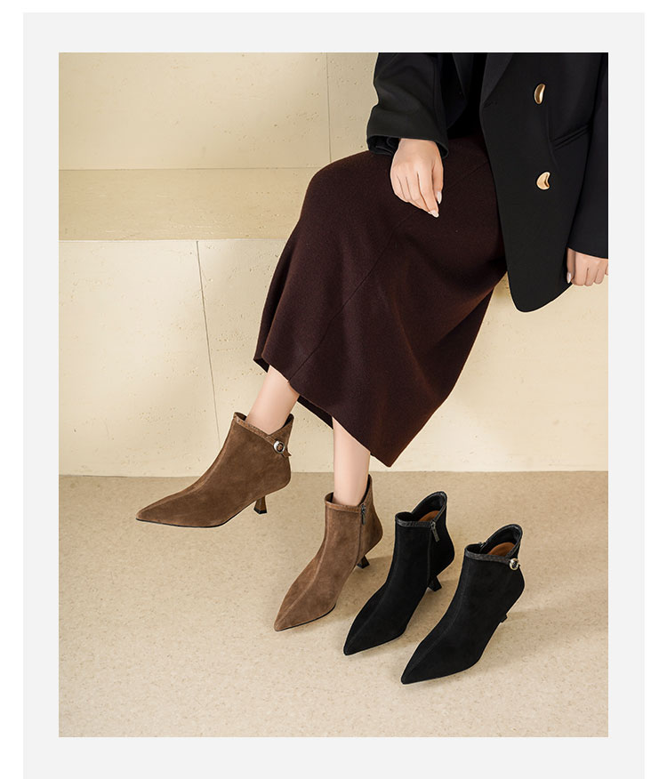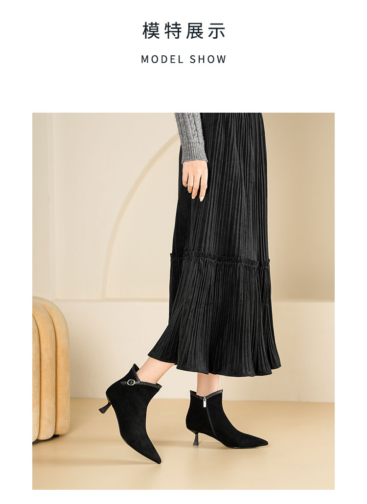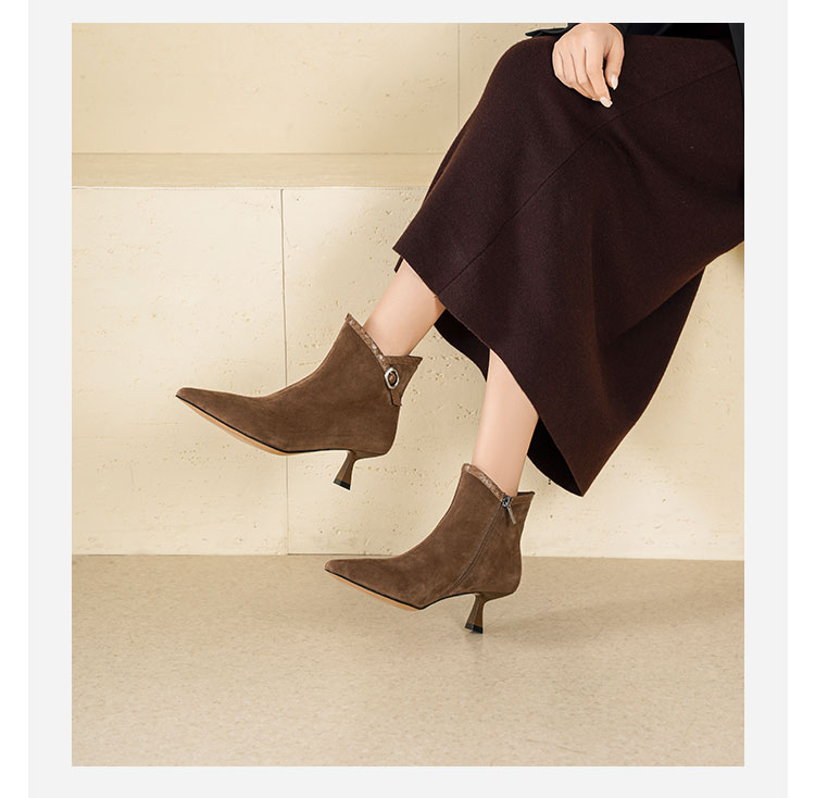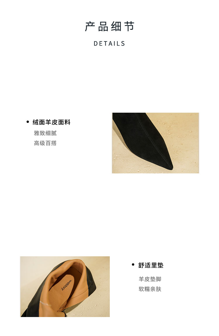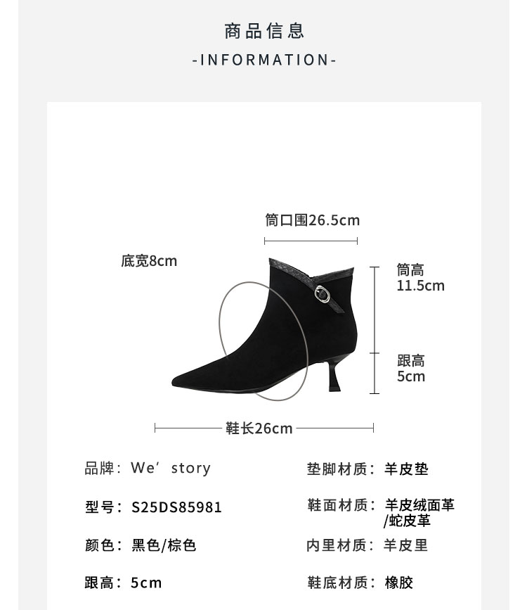 Westory2025年冬季尖头中跟羊京靴老钱风通勤百搭短靴S25DS85981