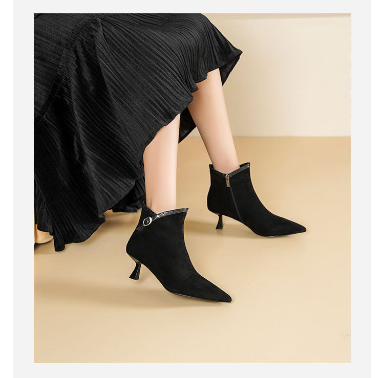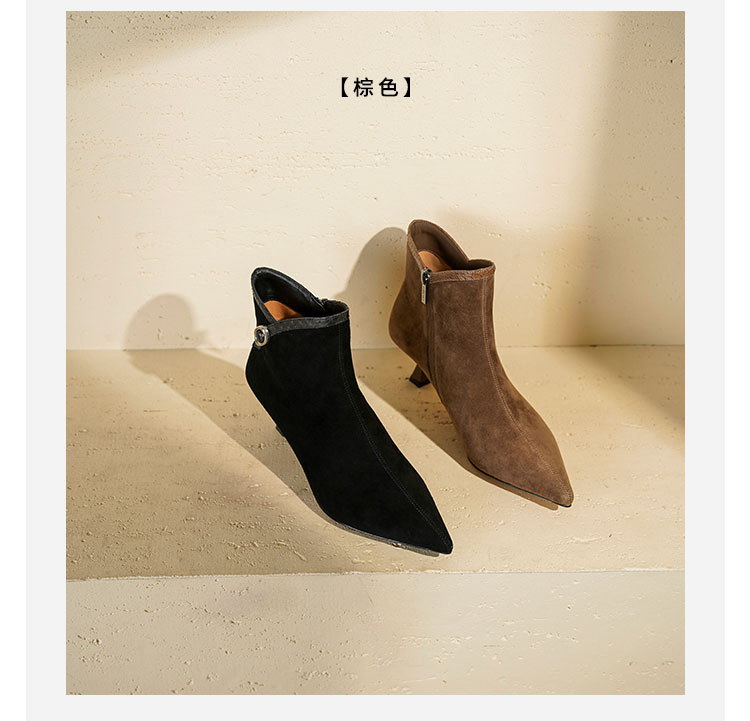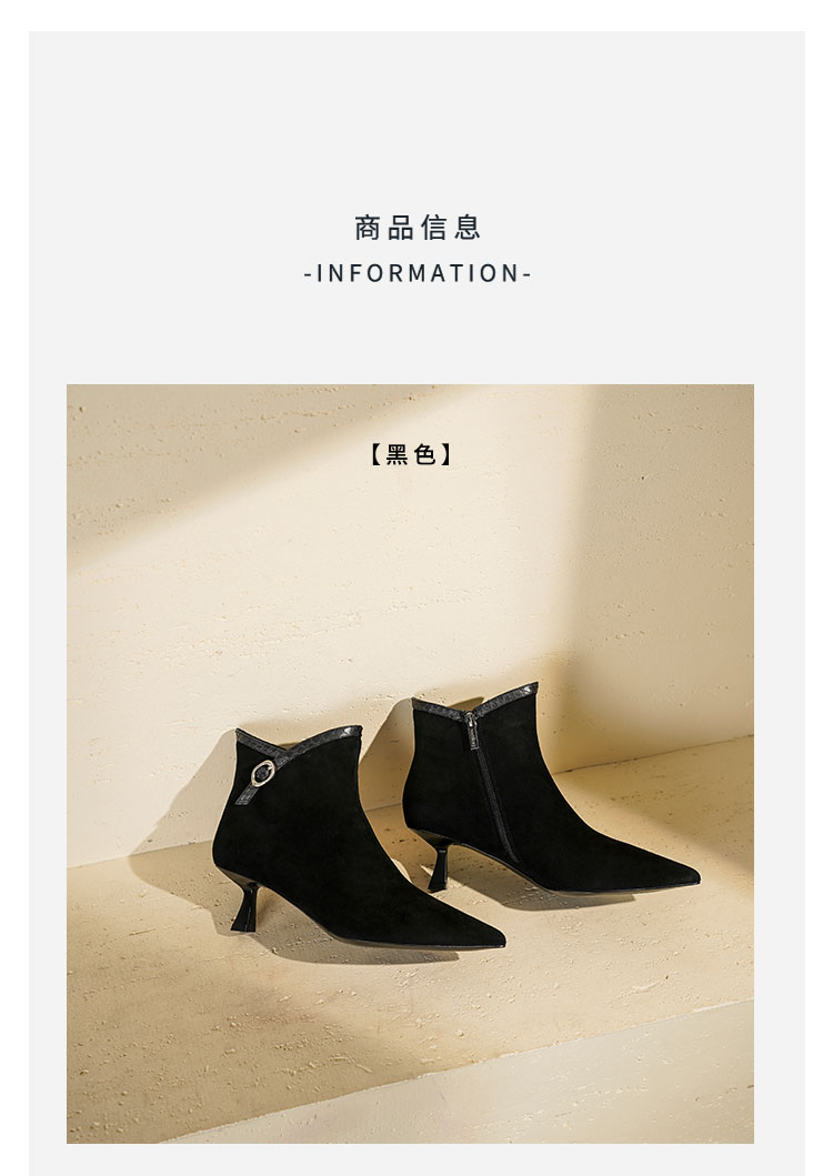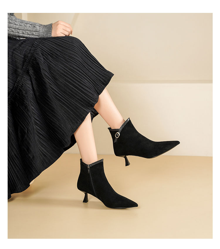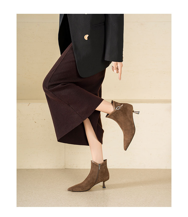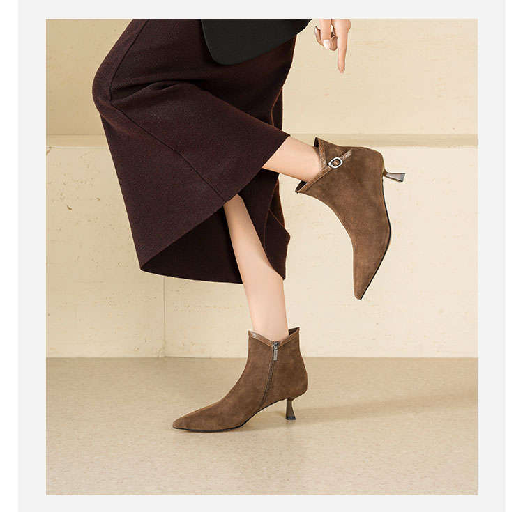 Westory2025年冬季尖头中跟羊京靴老钱风通勤百搭短靴S25DS85981