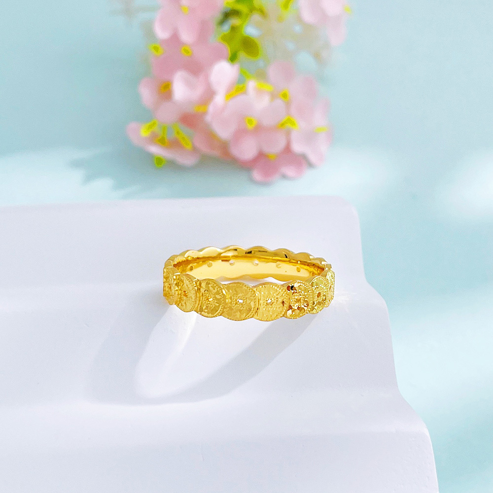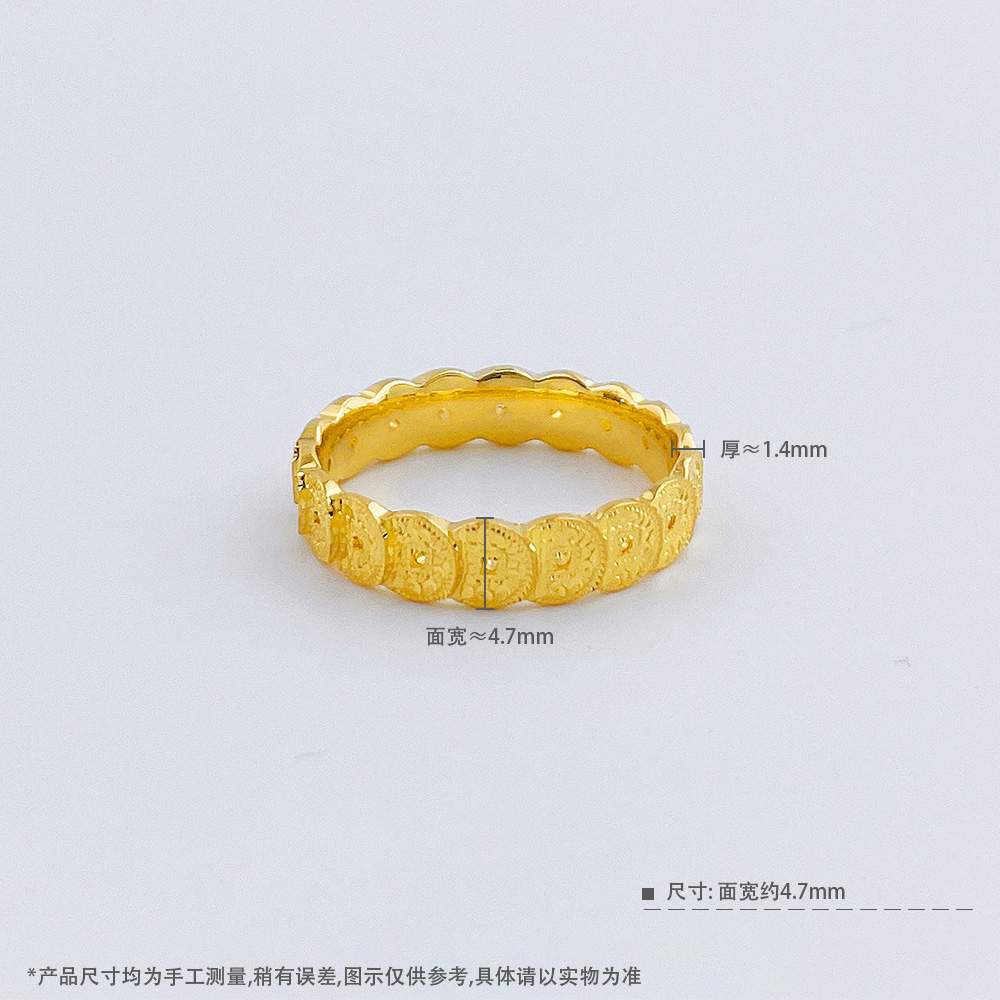 【限时克减150元】足金999.9 #招财进宝 #碎碎冰 黄金碎碎冰固口戒指招财铜钱造型腰缠万贯圈戒(JZ01067)(预售产品下单后不退款不退货不换货不补差价