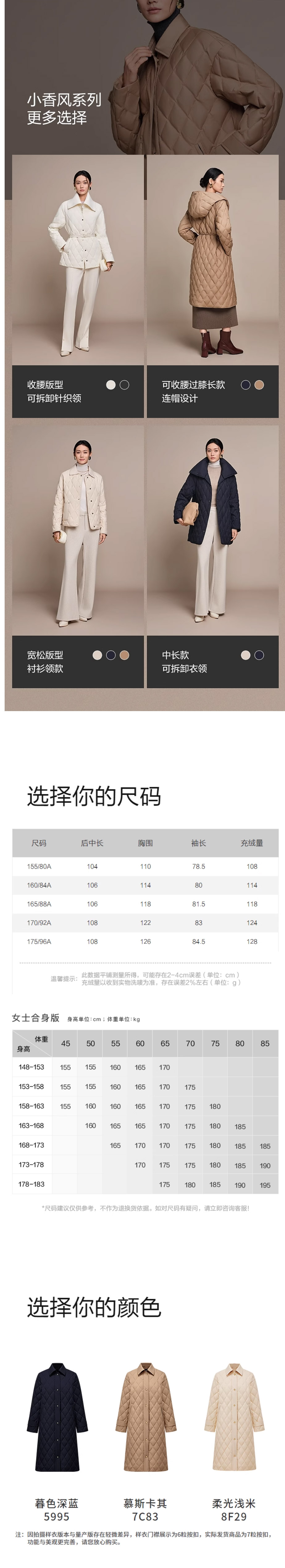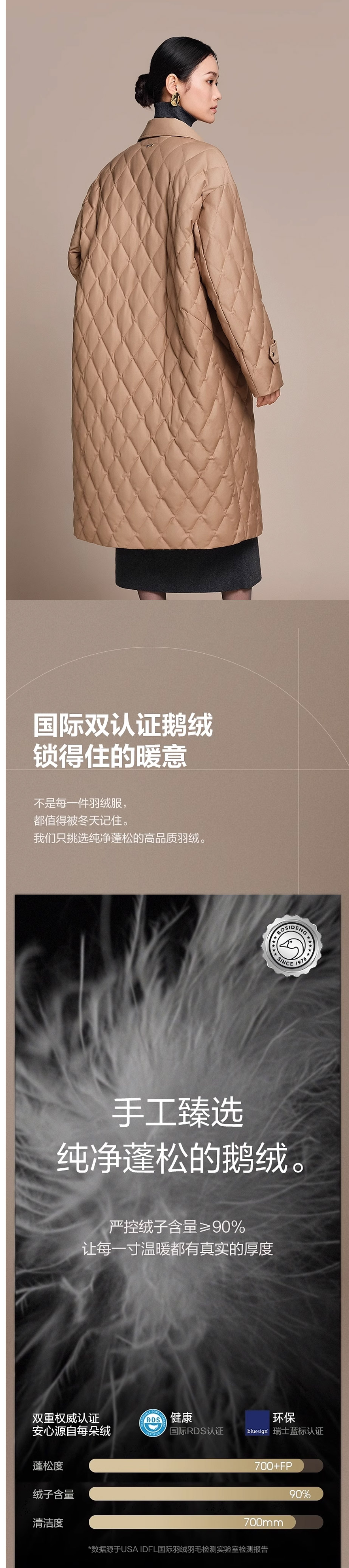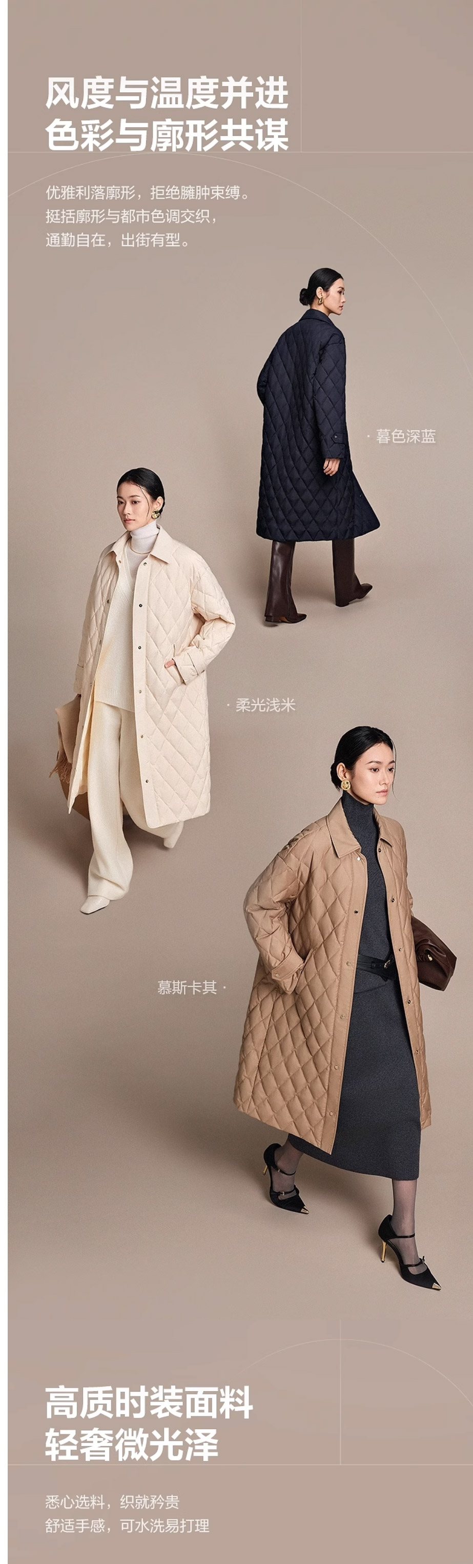 波司登羽绒服2025秋季新款女士长款轻薄菱格小香风外套B250134188