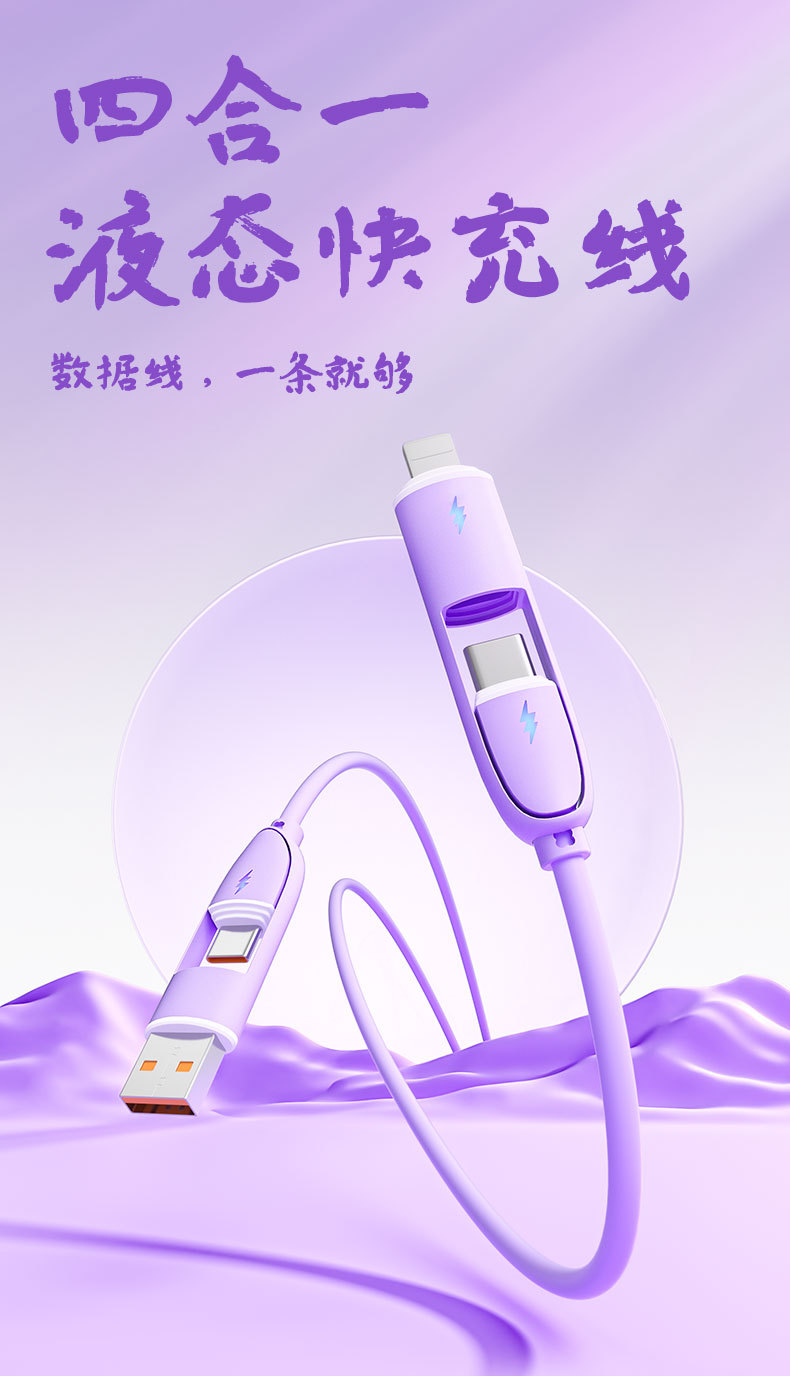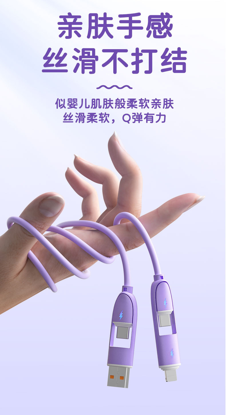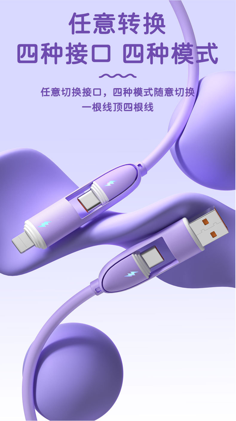 【四合一快充数据线】适用华为苹果15TypeC手机充电线100W