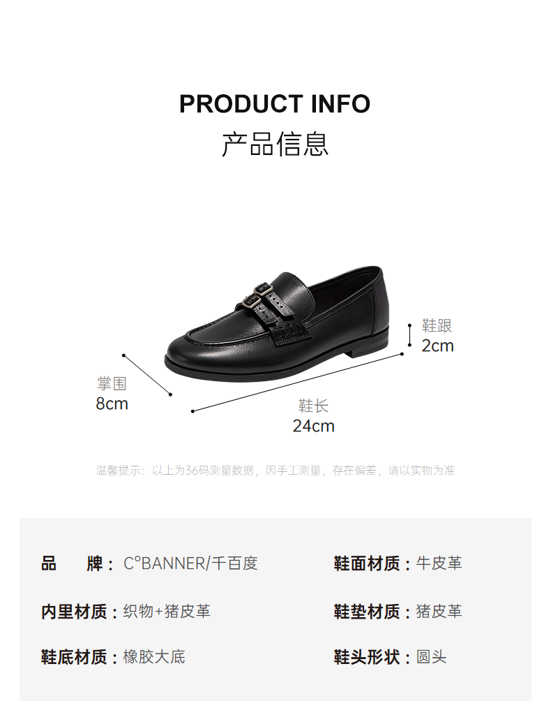 千百度低跟复古乐福鞋女款真皮经典豆豆鞋通勤单鞋A25199826