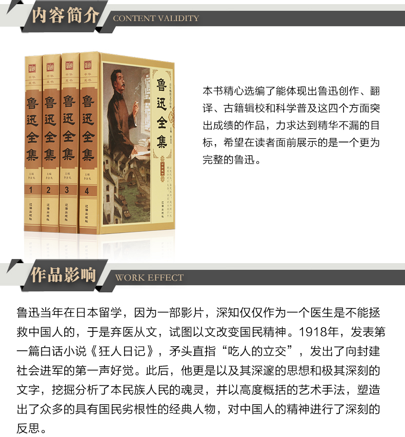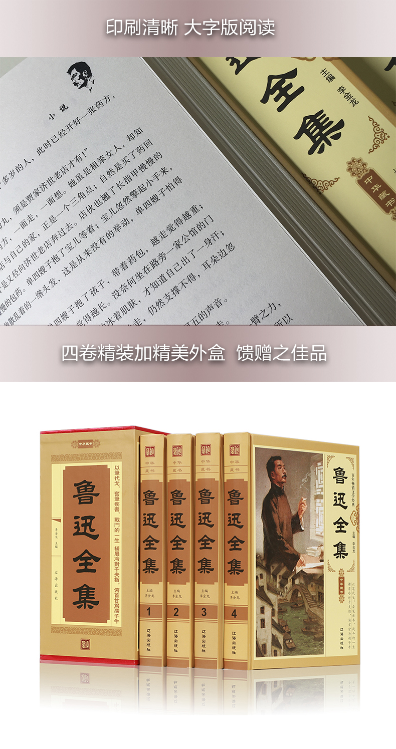 【优惠套装】鲁迅全集(全套四册)鲁迅的书全套 鲁迅小说全集 收录朝花夕拾狂人日记呐喊故乡阿Q正传等 书籍畅销书排行榜