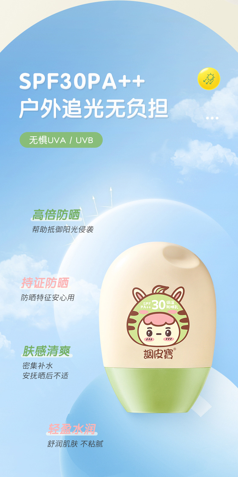 【儿童专研防晒,妈妈安心之选】儿童专用防晒霜 宝宝保湿滋润防晒乳 spf30 婴儿护肤夏季防护0岁以上-QQ