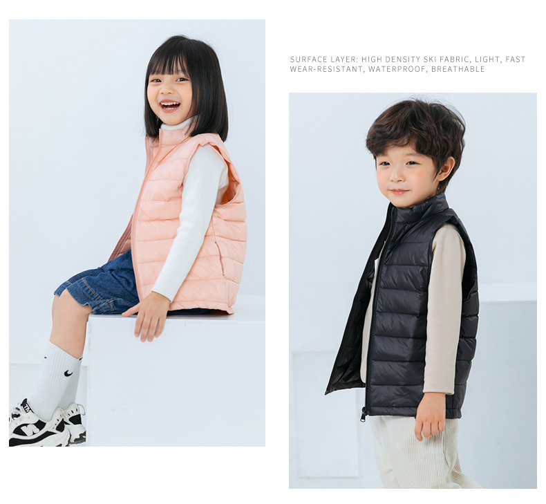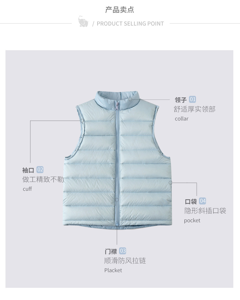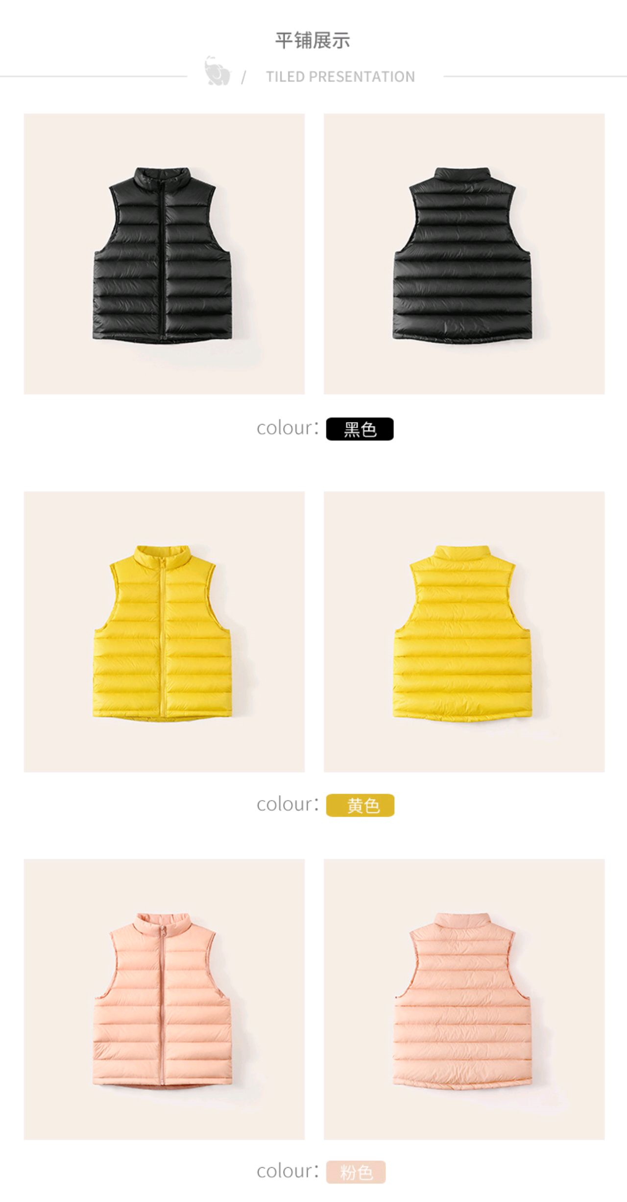 【胖胖象品牌童装】儿童羽绒马甲90%白鸭绒含绒量高支高密面料110-160码可选 男童款 女童款 多色可选聚