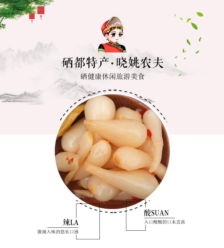 【湖北特产】晓姚恩施土家富硒藠头 180g*3袋
