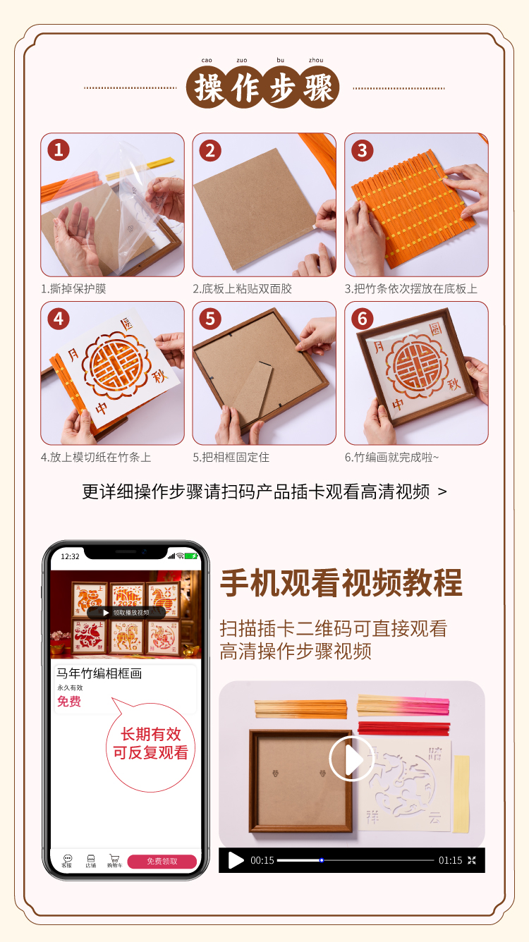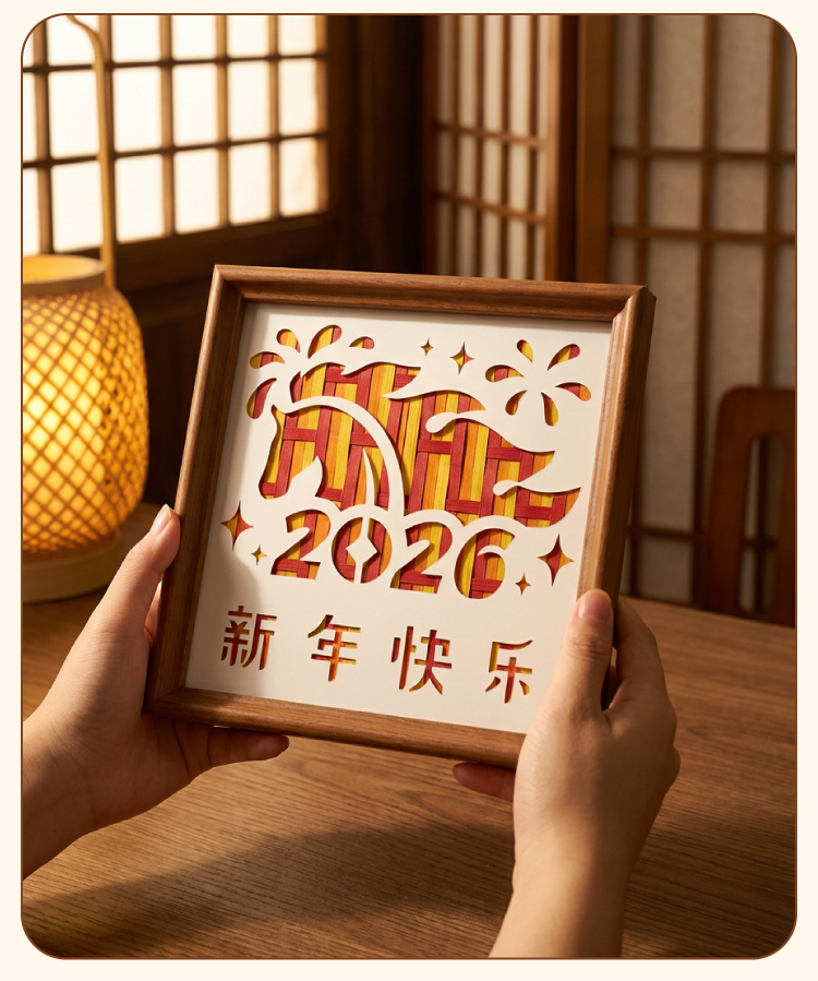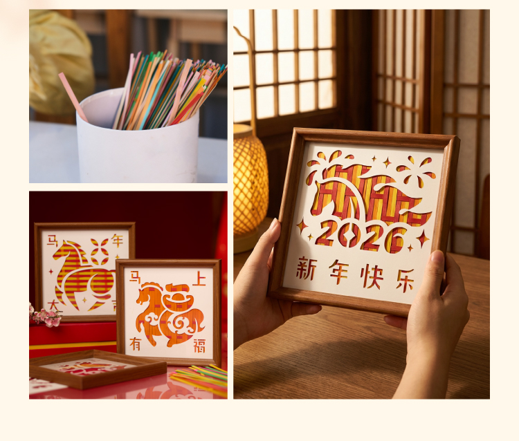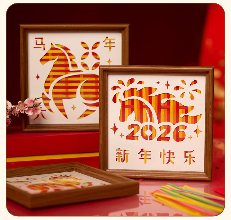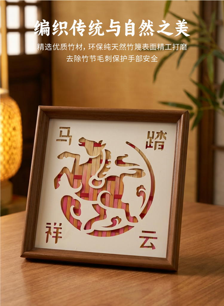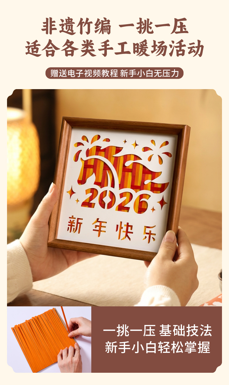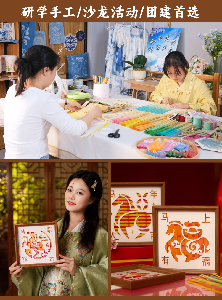 新年春节元旦马年竹编相框画手工diy儿童制作材料包团建活动2026