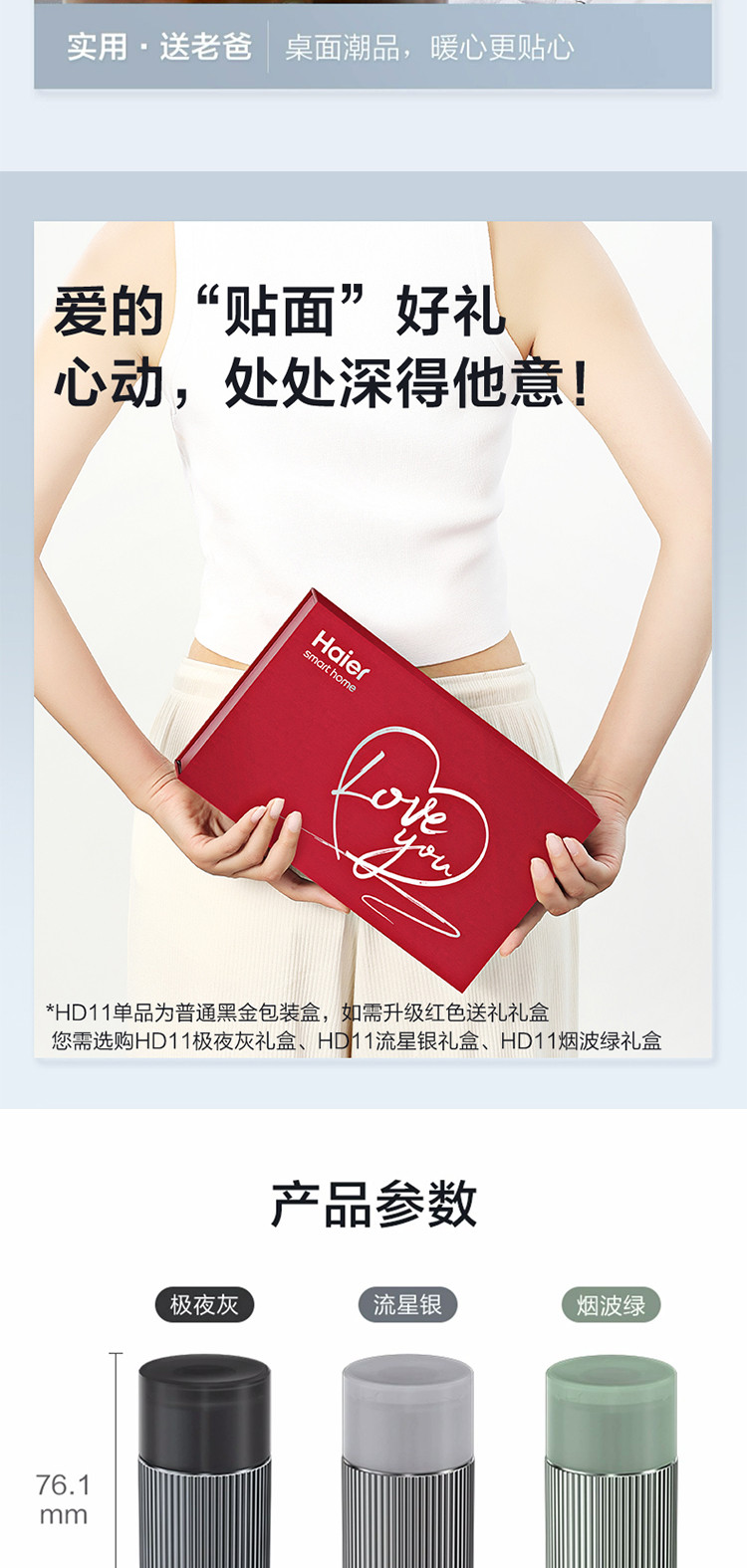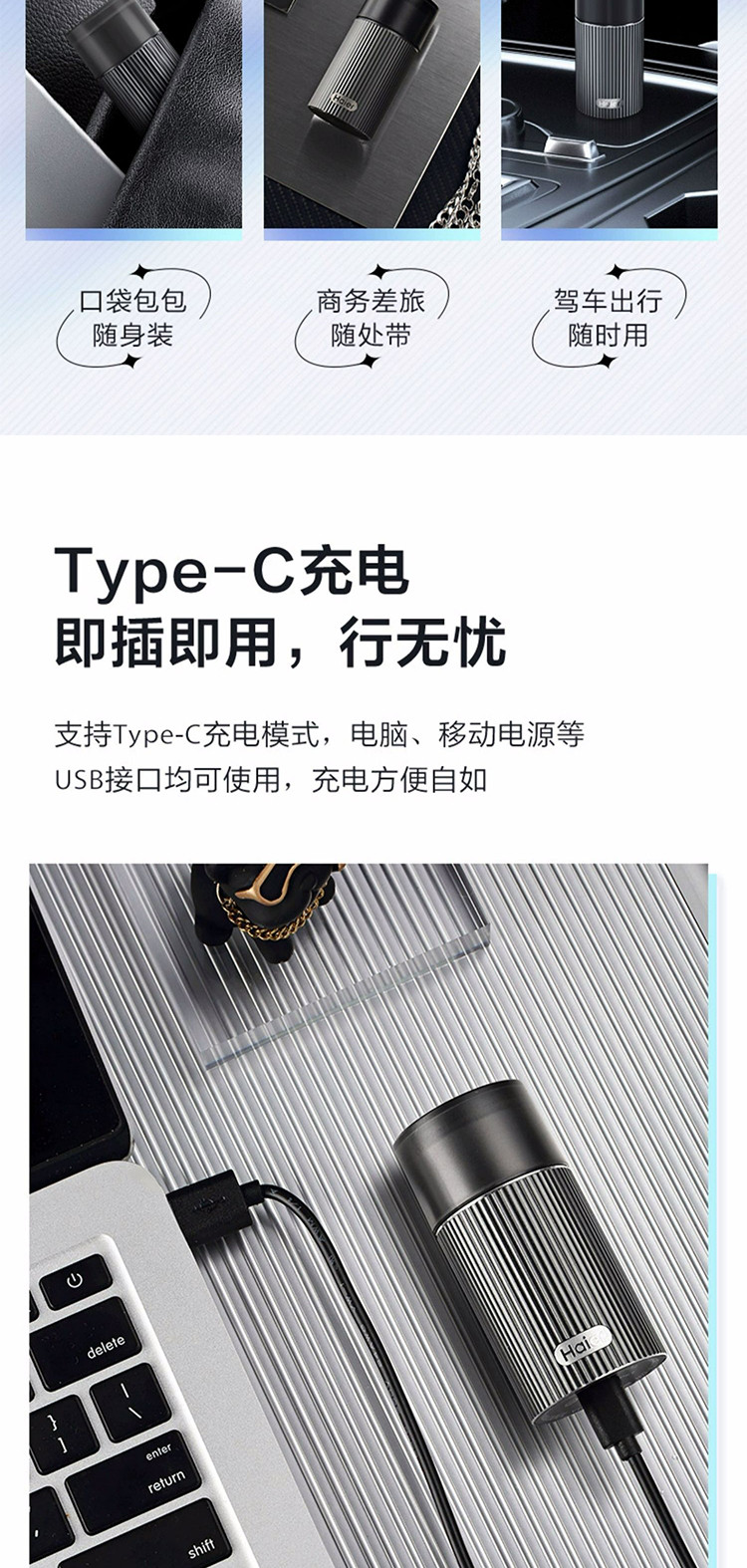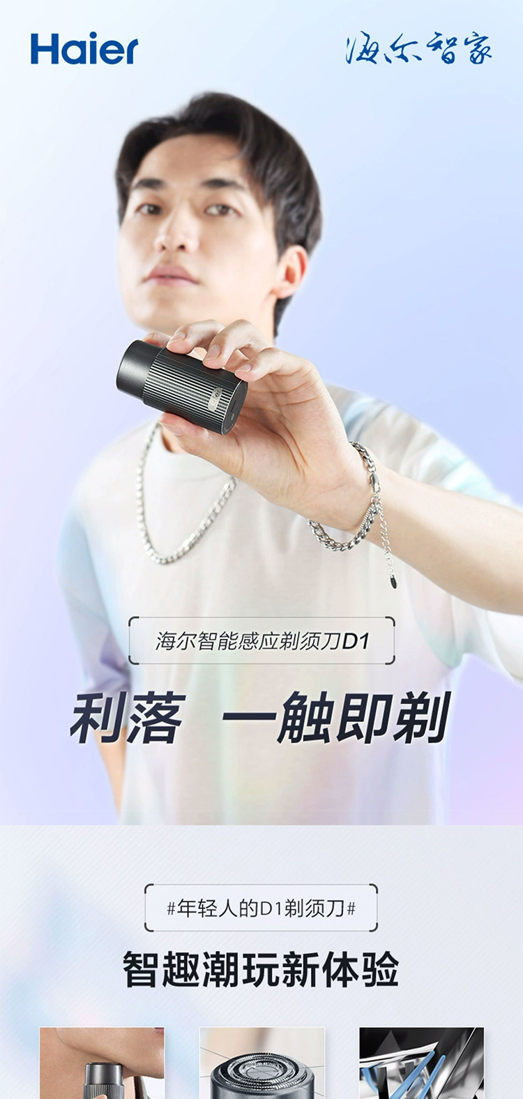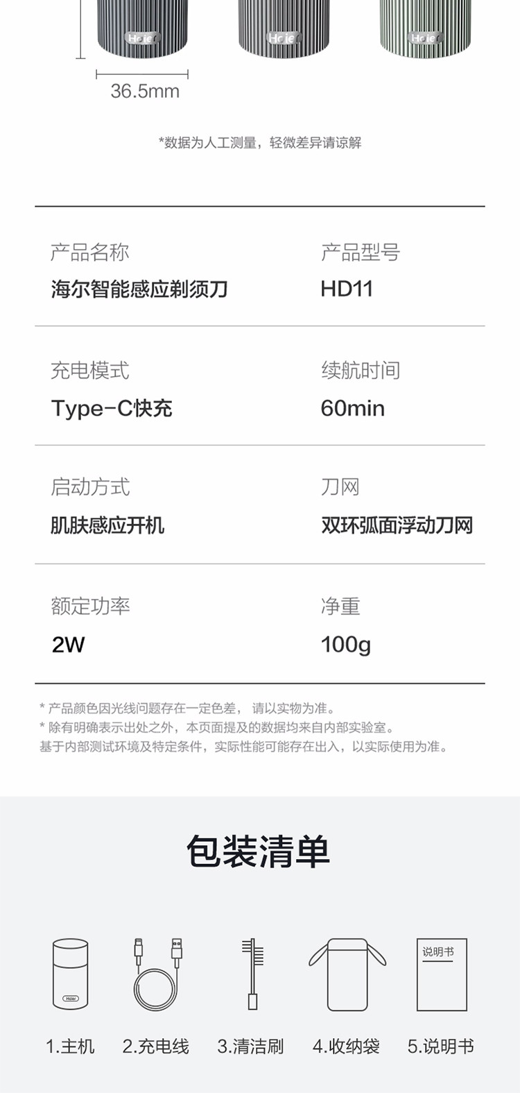 海尔(Haier)智能感应剃须刀便携式迷你刮胡刀男士刮胡须刀送男友老公爸爸HD11极夜灰