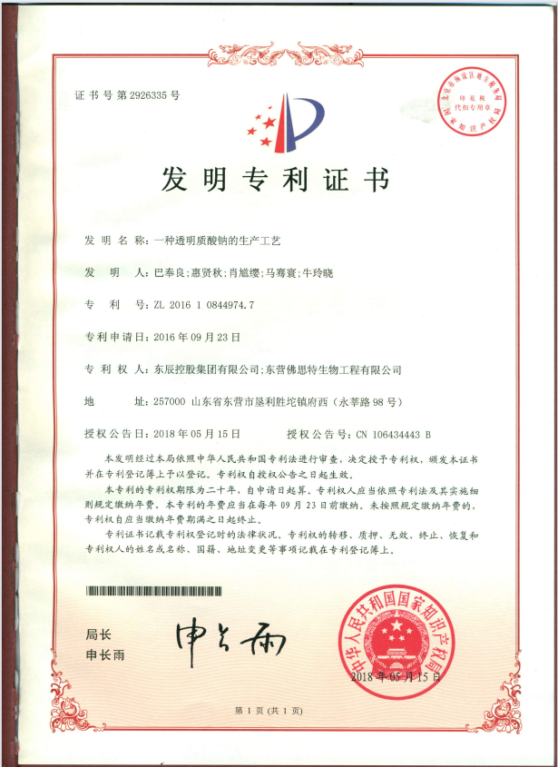 专利成分:透明质酸钠