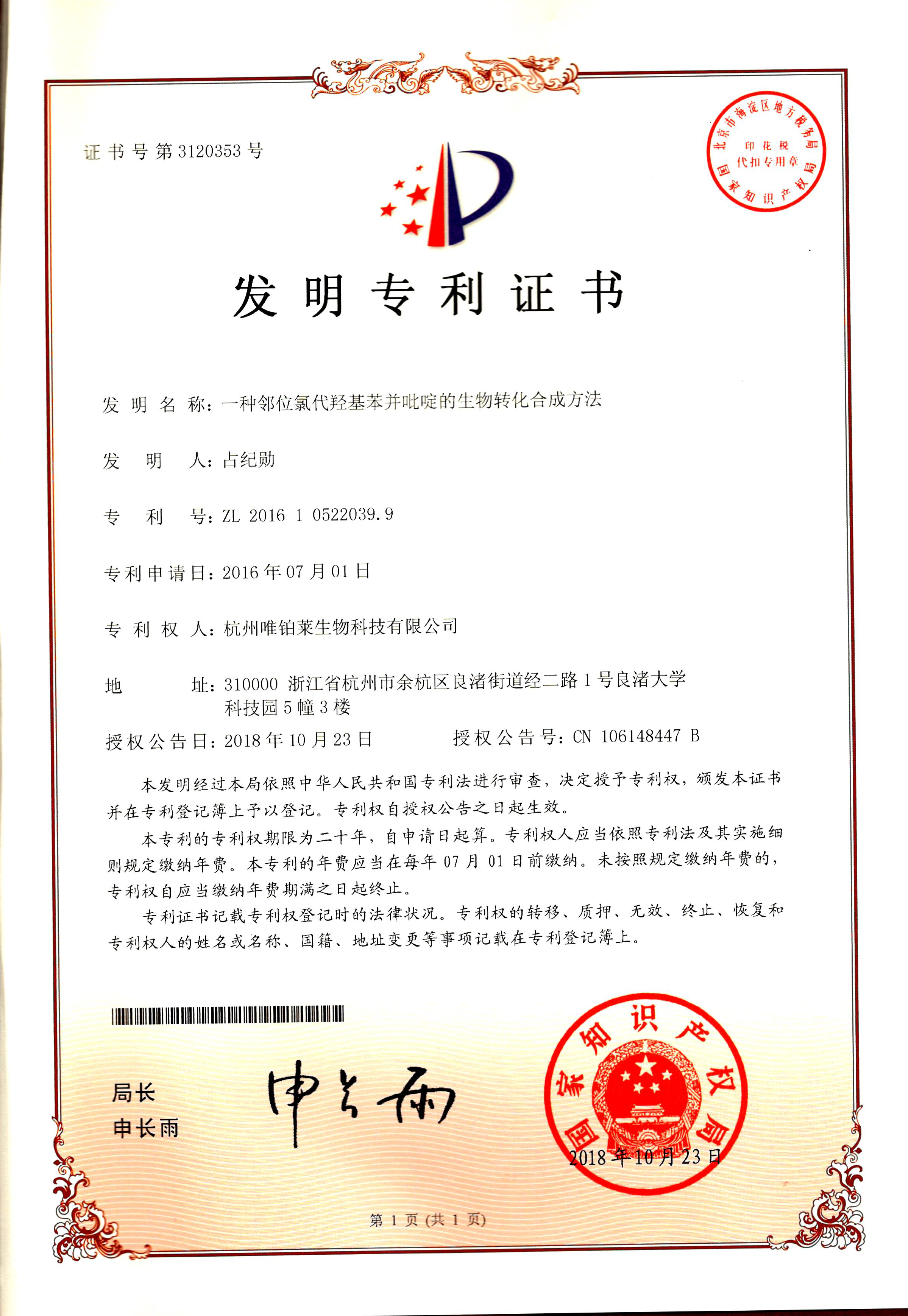 专利号:ZL 2016 1 0522039.9