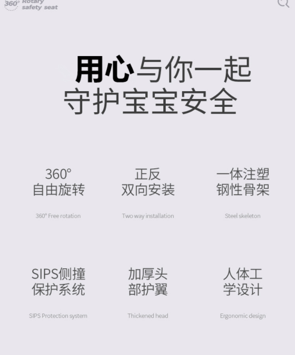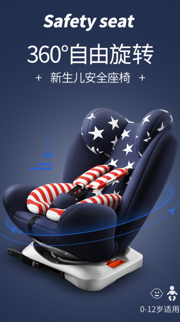【儿童安全座椅】360度旋转ISOFIX硬接口儿童安全座椅汽车用宝宝婴儿便携式