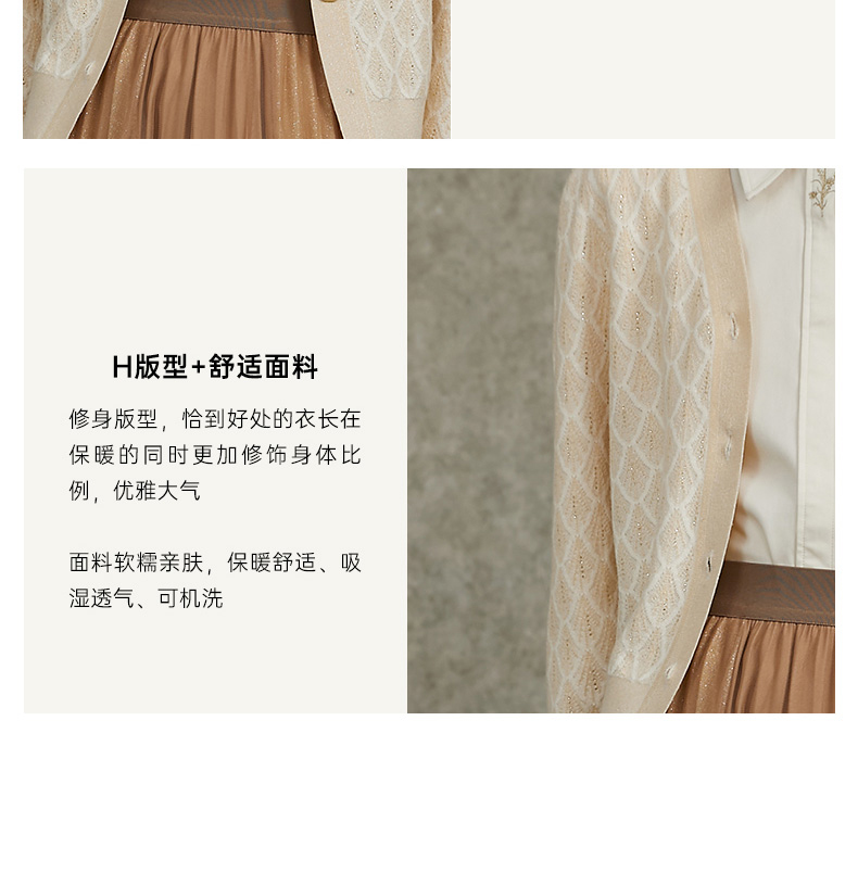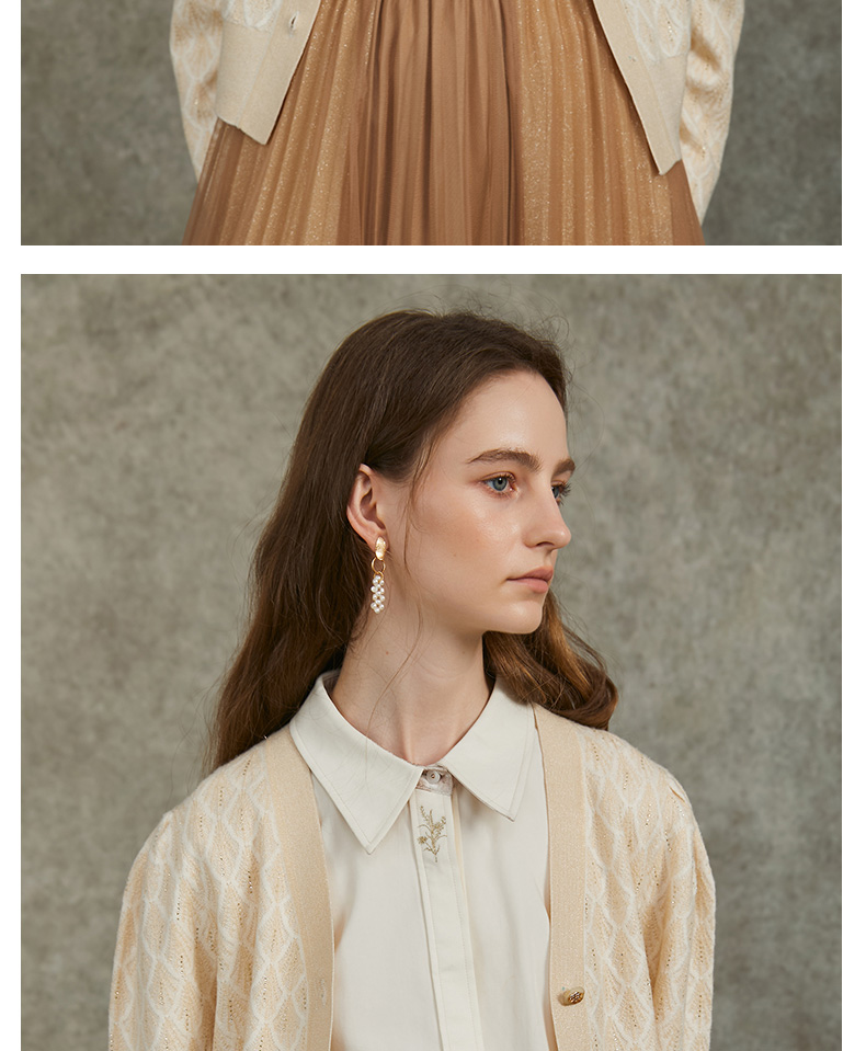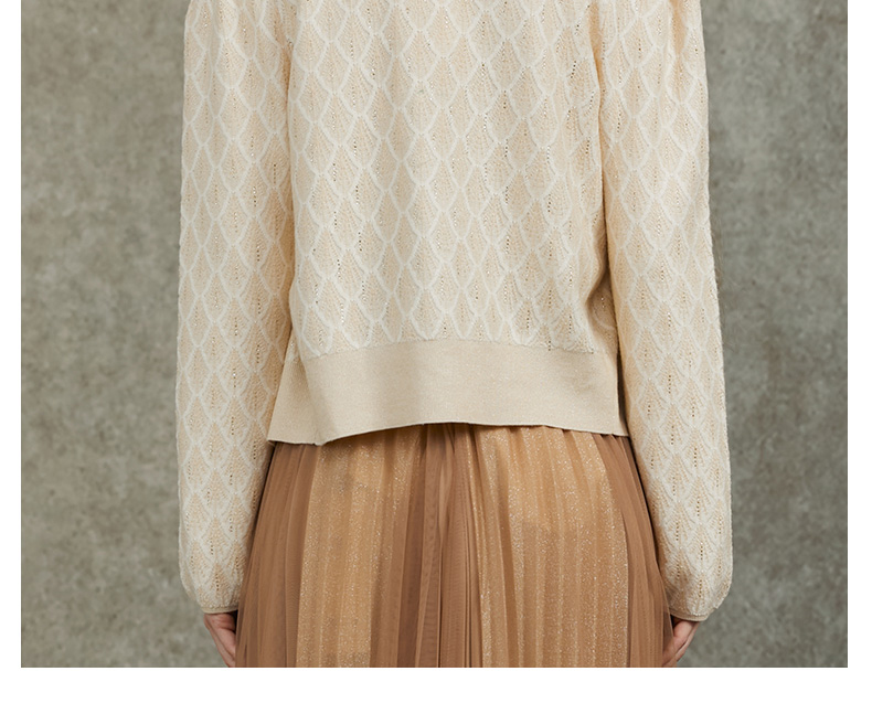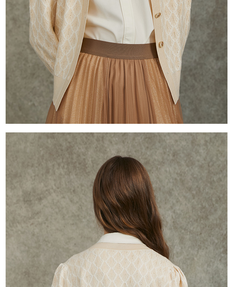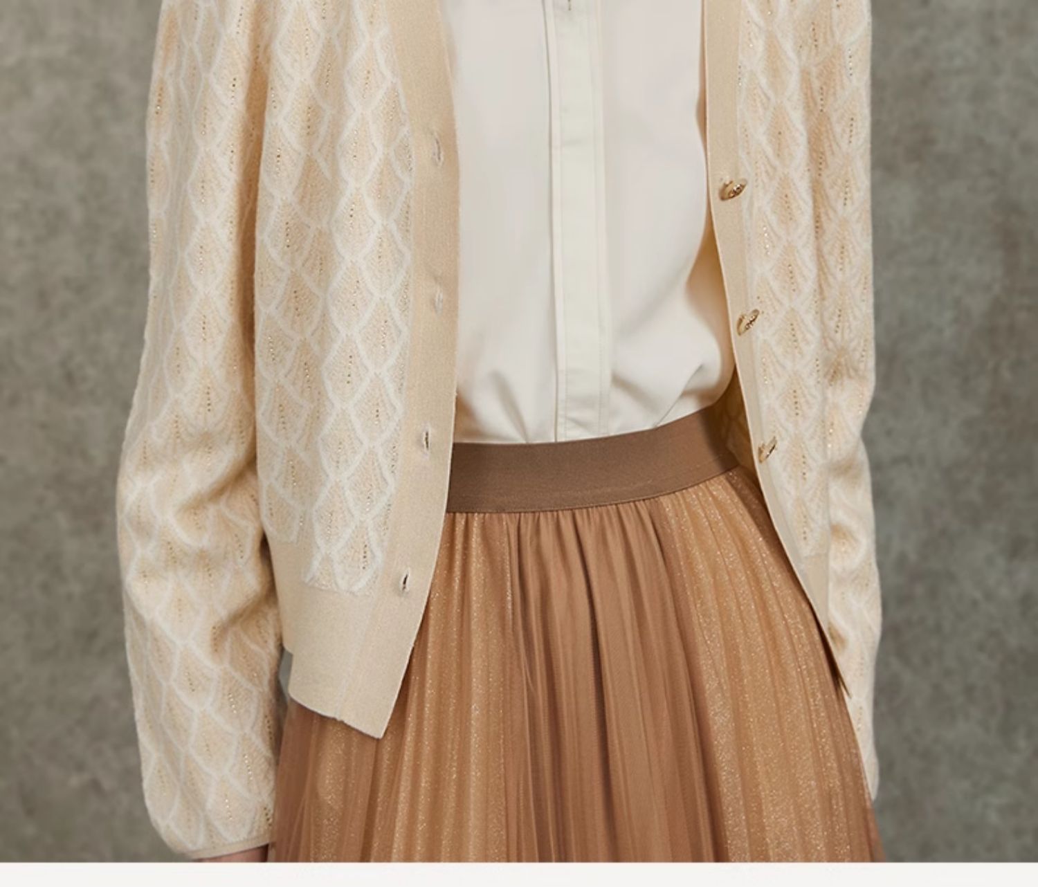 Famecoco范可儿V领毛衣开衫高级金线点缀菱格提花FAC6DE010