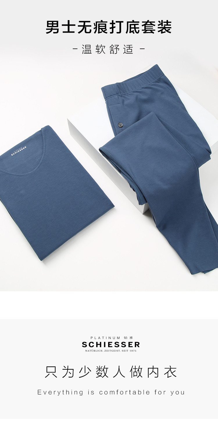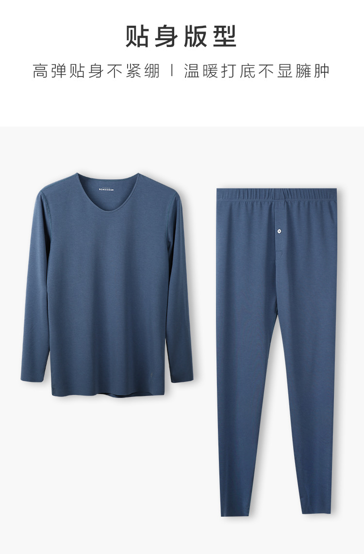 【超细莫代尔氨纶】SCHIESSER德国舒雅男士莫代尔棉保暖无痕内衣套装高端铂雅圆领保暖秋衣95/19217W