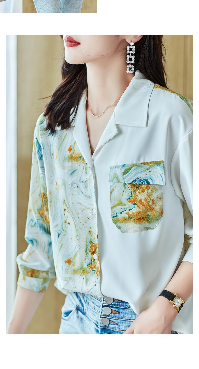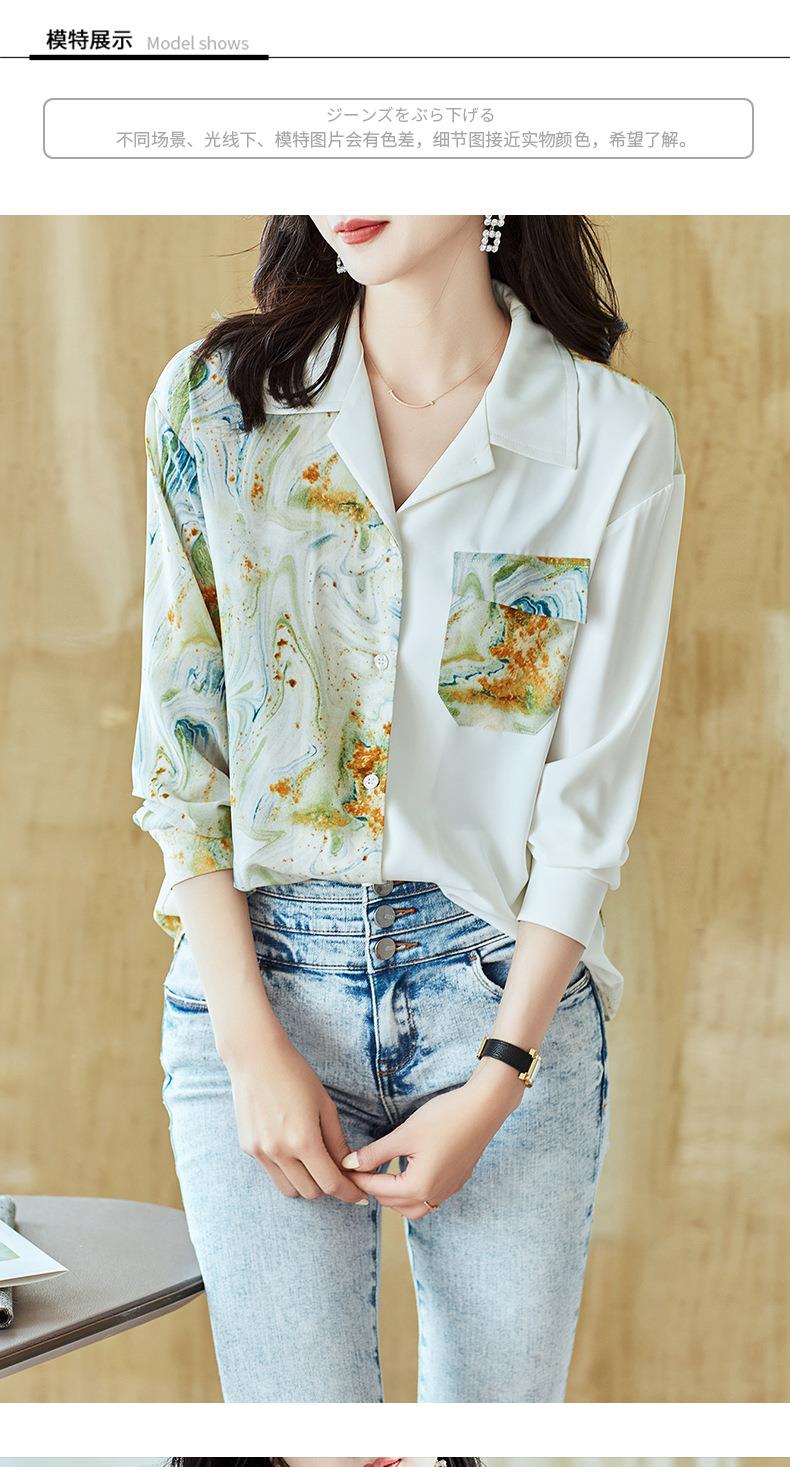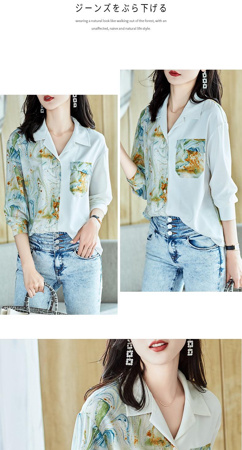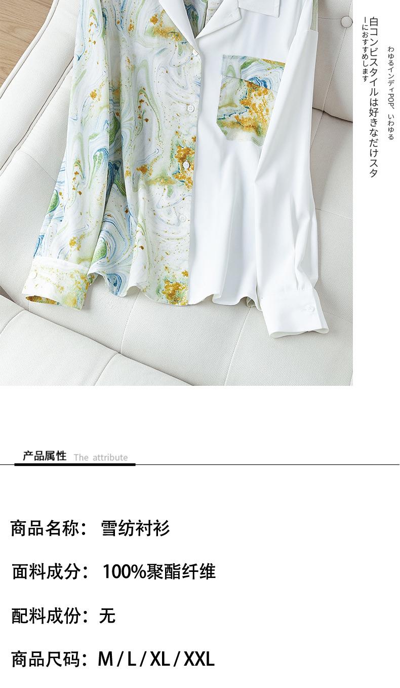 2023秋装新款衬衫女长袖宽松雪纺衫印花女士衬衣A2395