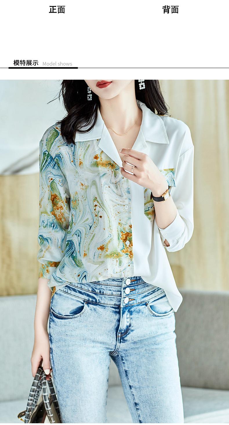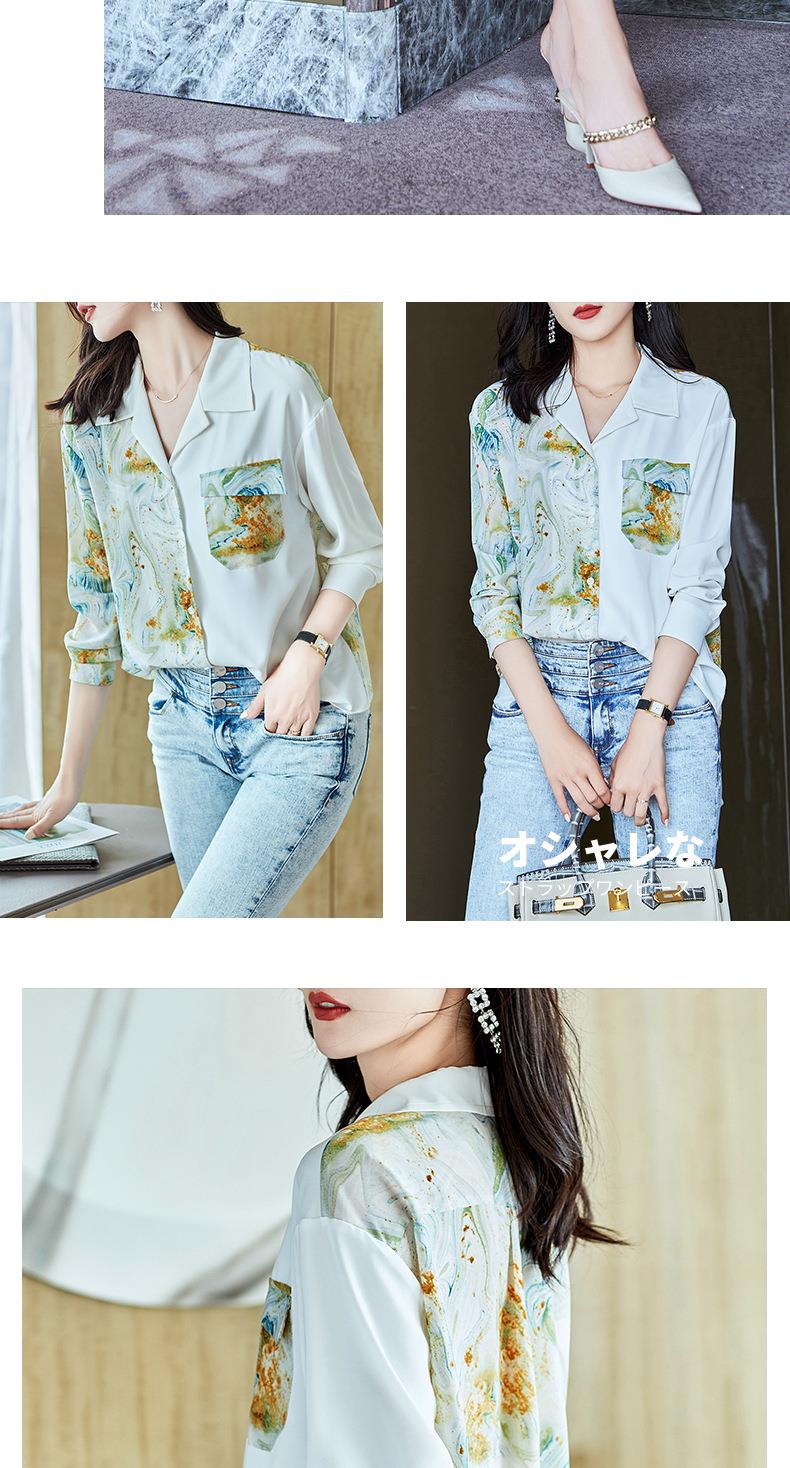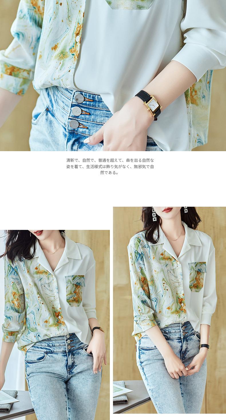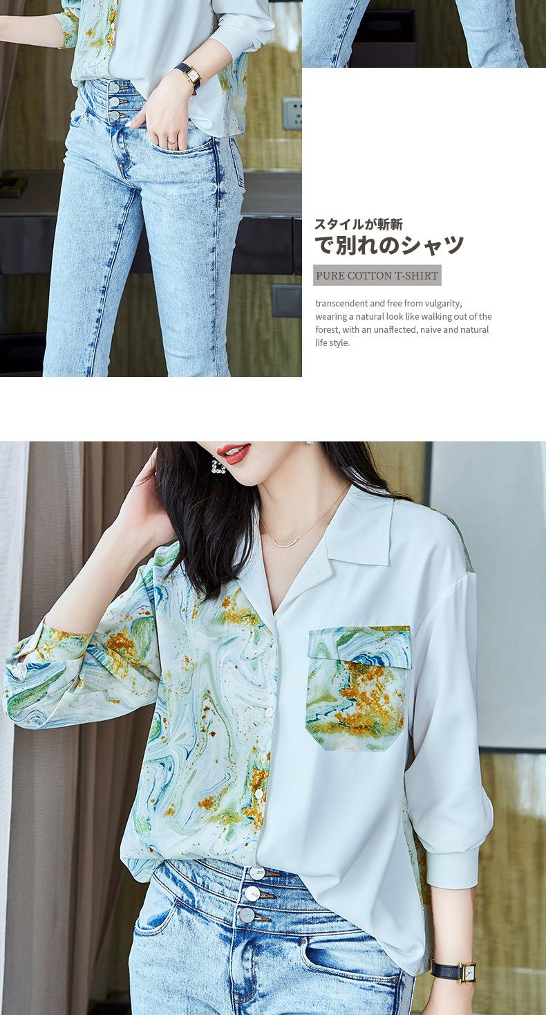 2023秋装新款衬衫女长袖宽松雪纺衫印花女士衬衣A2395