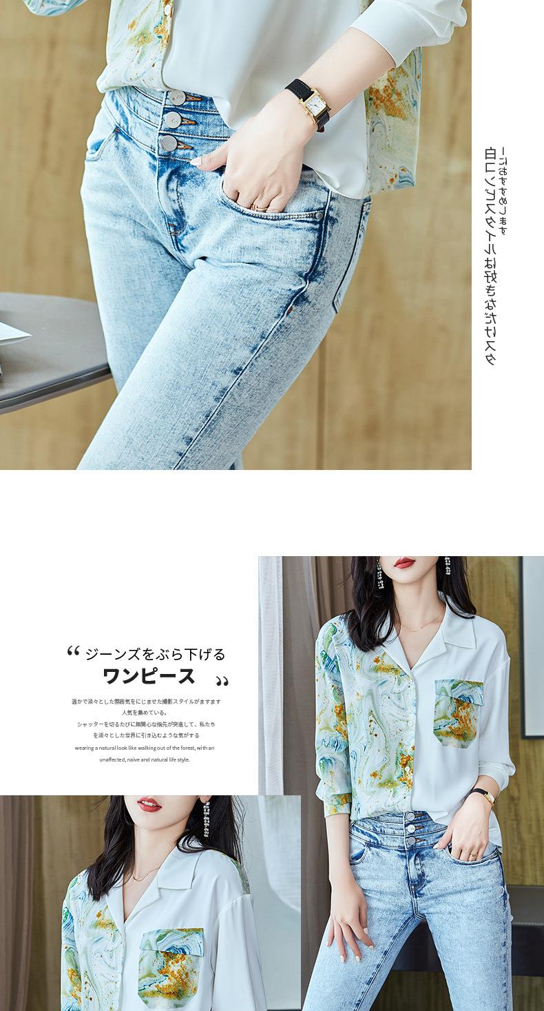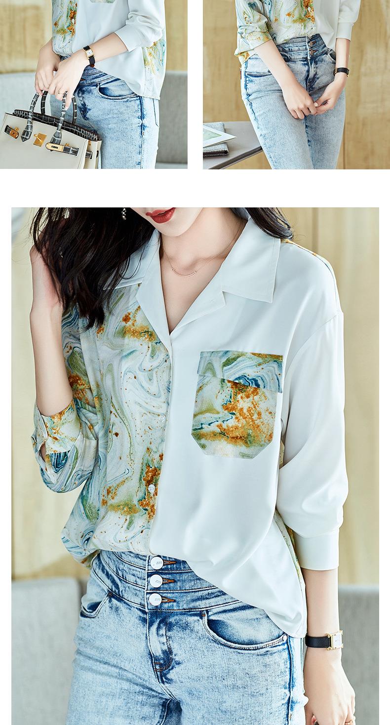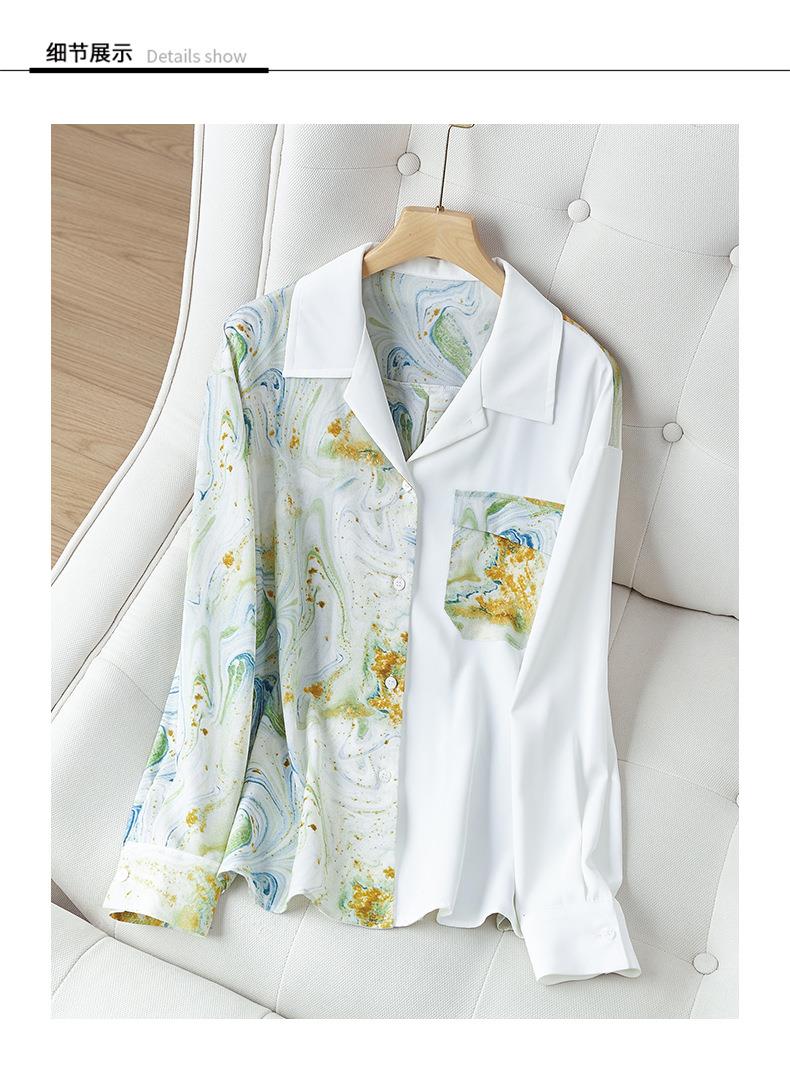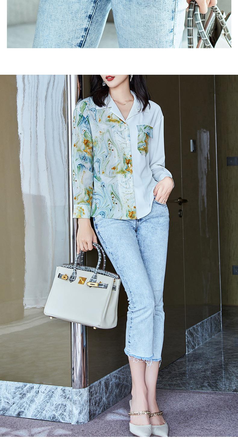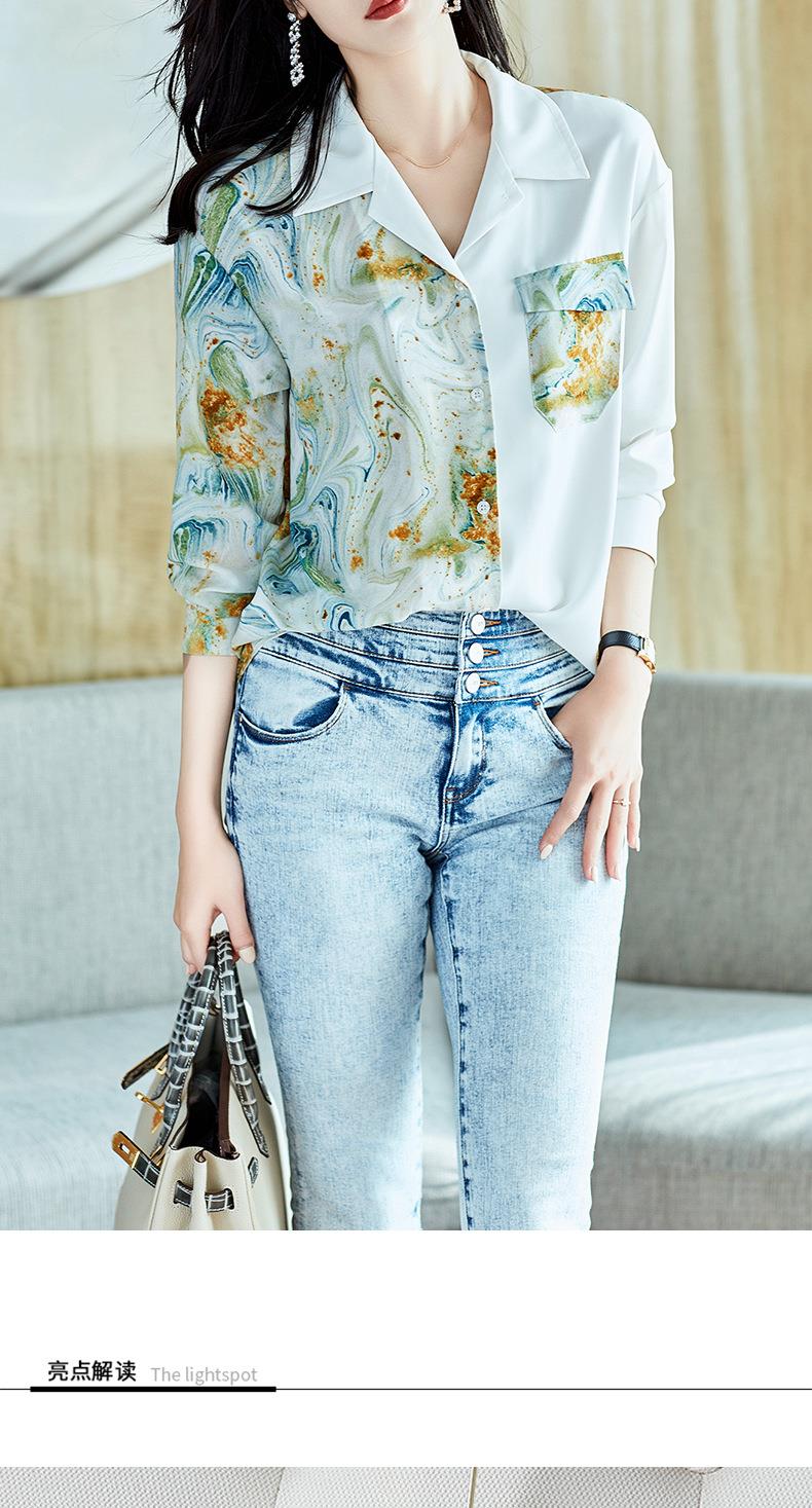 2023秋装新款衬衫女长袖宽松雪纺衫印花女士衬衣A2395