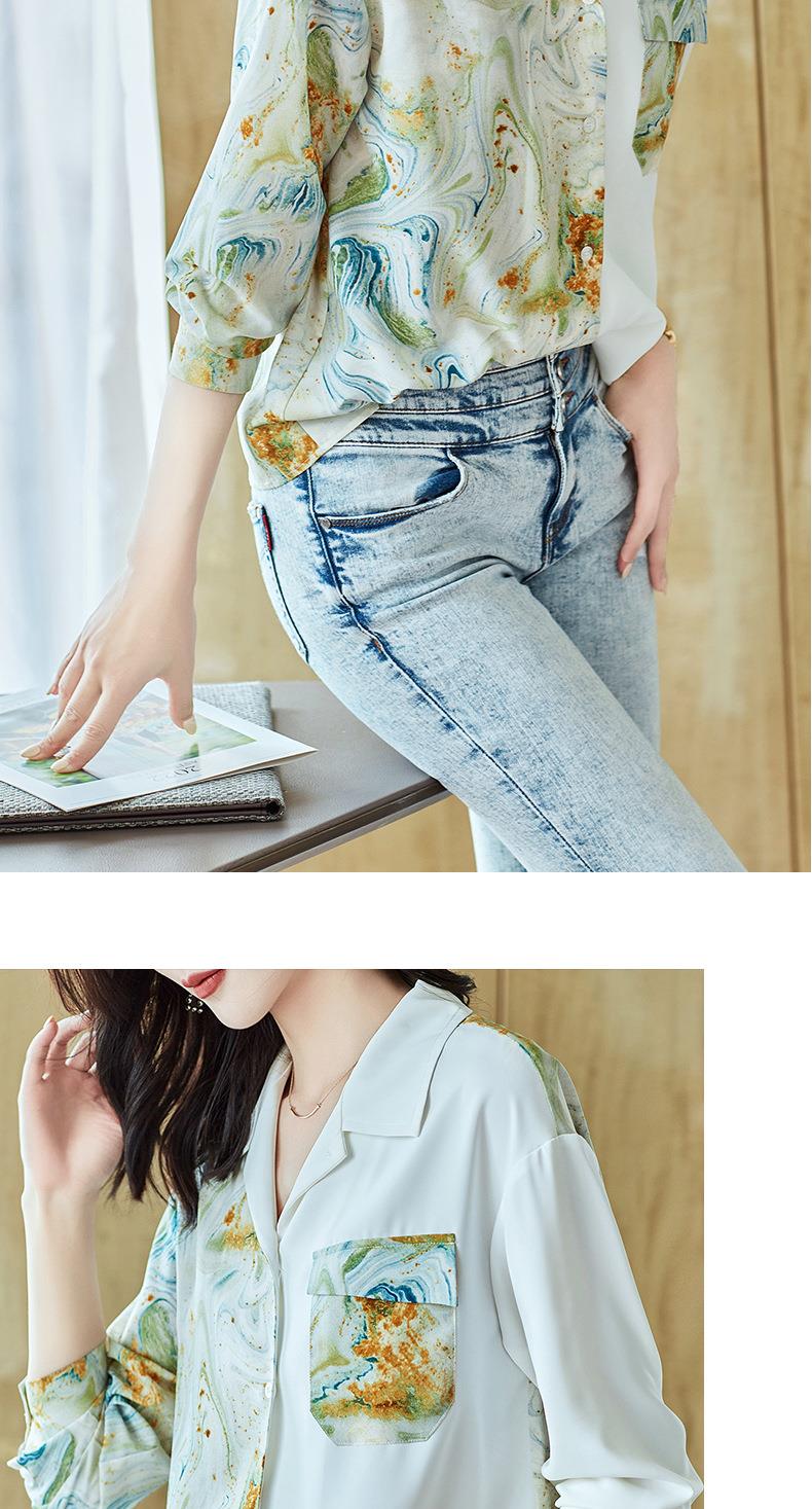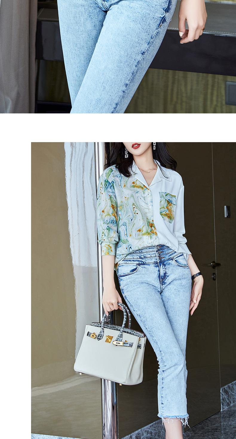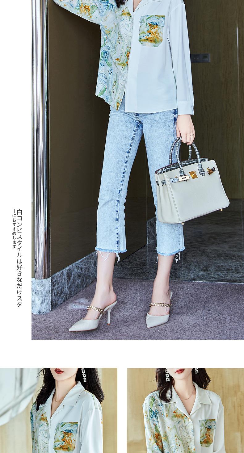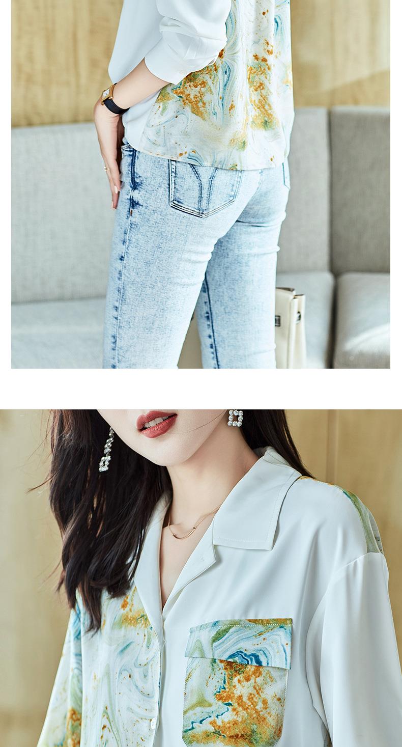 2023秋装新款衬衫女长袖宽松雪纺衫印花女士衬衣A2395