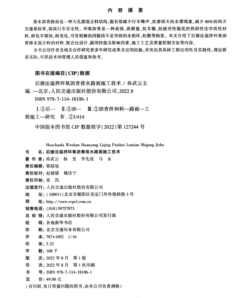 书名:后掺法温拌环氧沥青排水路面施工技术